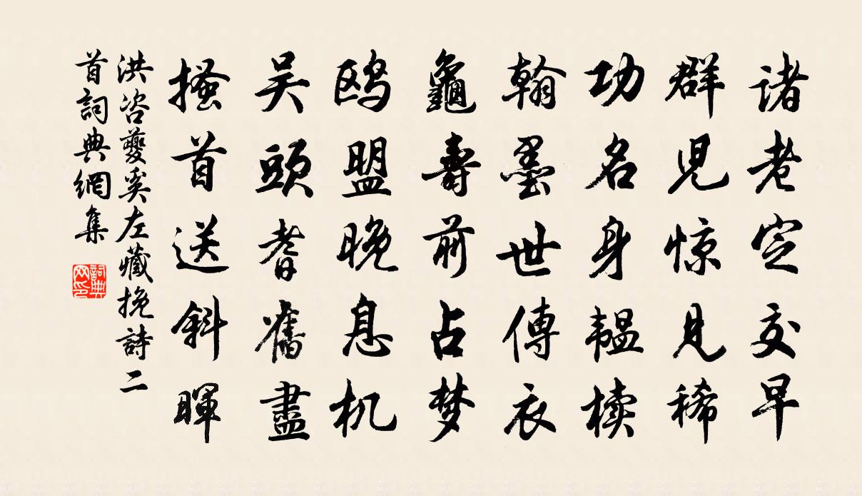 詩詞名句歷史字典書法欣賞書法字典國語詞典說文解字康熙字典古漢語字典標 題 作 者 詩 句 奚左藏輓詩二首作者:洪咨夔 朝代:宋代奚左藏輓詩二首原文諸老定交早,群兒驚見稀。功名身韞櫝,翰墨世傳衣。龜壽前占夢,鷗盟晚息機。吳頭耆舊盡,搔首送斜暉。詩詞問答問:奚左藏輓詩二首的作者是誰?答:洪咨夔問:奚左藏輓詩二首寫於哪個朝代?答:宋代洪咨夔奚左藏輓詩二首書法欣賞奚左藏輓詩二首書法作品詩詞推薦一雨徐璣〔宋代〕一雨郊原綠,高田水過低。荷鋤煩稚子,鎑畝伺良妻。老去知誰許,歸歟得自犁。緩行溪上石,吟詠到鴉棲。鳳棲梧尹志平〔元代〕一點靈明當內究。散盡群魔,趕退西山獸。萬樹瓊花如錦繡。長春永占無根朽。四海雲朋來往湊。上下沖和,漸覺雜詠十首酬汪鎮卿林景熙〔宋代〕鳳德嗟已衰,宣尼欲浮海。賴有載道經,神功補元宰。刪詩挽風變,系易憂世駭。春秋筆削嚴,西秦書乃采。微義和方漕孚若游瀑布陳宓〔宋代〕一派能令玉作山,千年那復更愁乾。初疑雲陣漏寒月,乍似鷗群趁急湍。領客適當晴正好,結亭偏愜暑來看。知君病中絕句陸游〔宋代〕造物今年憫我勞,微痾得遂閉門高。黃紬被暖青氈穩,不怕郊原雪意豪。挽董監鎮陳著〔宋代〕宿善有君□,幽銘豈溢言。何妨儒鶡弁,自可客龍門。瑞竹松根見,叢編手澤存壽終無一憾,更是好兒孫。和祝子壽作詩須索意韻徐元傑〔宋代〕翰墨絕畦私逕,言詞中律度。筆落風雨驚,詩是江山助。不食煙火語,說到精髓處。升堂必入室,由道誰不戶。達送兄佚名〔唐代〕別路雲初起,離亭葉正稀。所嗟人異雁,不作一行歸。謁迪上人李邴〔宋代〕數脊招提四面山,羨師終日掩禪關。憑闌人語風煙上,乞食僧來紫翠間。萬木深藏雲泱莽,一溪空鎖月彎環。十年贈醫士詹翠峰熊禾〔宋代〕我觀卦氣先天圖,更參岐伯答問書。雖然三墳不可得,此即造化陰陽樞。超然便可會大道,學不至此應非儒。醫亦曉雨錢時〔宋代〕一路慳慳五日晴,曉來煙雨又籠春。蓬窗只是添詩句,煙雨何曾惱得人。呈時宰二首曹勛〔宋代〕不毛山海盡梯航,德洽重熙聖祚昌。萬國鼎新周禮樂,千官星拱舜衣裳。惠沾圜土恩波闊,德及昆蟲化日長。天地二十四詩品司空圖〔唐代〕生者百歲,相去幾何,歡樂苦短,憂愁實多。何如尊酒,日往煙蘿,花復茆檐,疏雨相過。倒酒即盡,杖黎行歌,舞鶴賦鮑照〔南北朝〕散幽經以驗物,偉胎化之仙禽。鍾浮曠之藻質,抱清迥之明心。指蓬壺而翻翰,望昆閬而揚音。澘日域以回騖,窮讀素問十六首方回〔宋代〕三陰與三陽,應天之六氣。五行加相火,於地分六位。羲畫箕子疇,恐亦出此意。漢儒災異學,可擇但勿泥。獻所知張蠙〔唐代〕跡熟荀家見弟兄,九霄同與指前程。吹噓漸覺馨香出,夢寐長疑羽翼生。住僻驊騮皆識路,來頻鸚鵡亦知名。登龍靈照女贊釋師範〔宋代〕有髻垂肩,無鞋潭腳。一掬精神,十分銷鑠。最苦拈來潑罩籬,風前索價無人著。送楊彥極提刑二首劉克莊〔宋代〕繡斧翩翩向福唐,百城斂衽避風霜。夢回桑下初何戀,手植棠陰故未忘。判筆有神皆可錄,抄書無數即行裝。從今采練曲王昌齡〔唐代〕荷葉羅裙一色裁,芙蓉向臉兩邊開。亂入池中看不見,聞歌始覺有人來。和常州崔使君寒食夜沈佺期〔唐代〕聞道清明近,春闈向夕闌。行游晝不厭,風物夜宜看。斗柄更初轉,梅香暗裡殘。無勞秉華燭,晴月在南端。名句推薦別後不知君遠近。觸目淒涼多少悶。歐陽修《玉樓春·別後不知君遠近》 思來江山外,望盡煙雲生。張九齡《秋晚登樓望南江入始興郡路》 國無常強,無常弱。奉法者強,則國強;奉法者弱,則國弱。韓非及後人《韓非子·有度》 矮紙斜行閒作草,晴窗細乳戲分茶。陸游《臨安春雨初霽》 貧賤非辱,貧賤而諂求於人者為辱;富貴非榮,富貴而利濟於世者為榮。王永彬《圍爐夜話·第三一則》 鞭影落春堤,綠錦鄣泥卷。納蘭性德《生查子·鞭影落春堤》 黃花深巷,紅葉低窗,淒涼一片秋聲。蔣捷《聲聲慢·秋聲》 行人刁鬥風沙暗,公主琵琶幽怨多。李頎《古從軍行》 半壁見海日,空中聞天雞。李白《夢遊天姥吟留別 / 別東魯諸公》 郭門臨渡頭,村樹連谿口。王維《新晴野望》