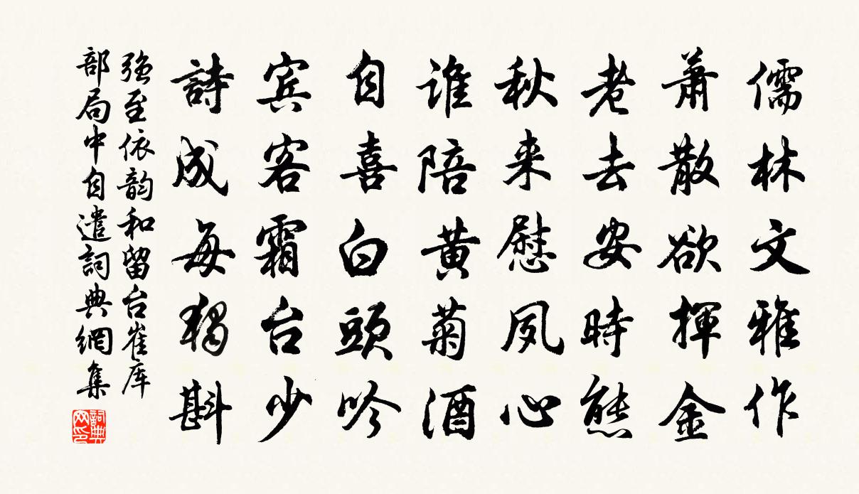 詩詞名句歷史字典書法欣賞書法字典國語詞典說文解字康熙字典古漢語字典標 題 作 者 詩 句 依韻和留台崔庫部局中自遣作者:強至 朝代:宋代依韻和留台崔庫部局中自遣原文儒林文雅作,蕭散欲揮金。老去安時態,秋來慰夙心。誰陪黃1/1菊酒,自喜白頭吟。賓客霜台少,詩成每獨斟。詩詞問答問:依韻和留台崔庫部局中自遣的作者是誰?答:強至問:依韻和留台崔庫部局中自遣寫於哪個朝代?答:宋代強至依韻和留台崔庫部局中自遣書法欣賞依韻和留台崔庫部局中自遣書法作品詩詞推薦挽陳孺人劉克莊〔宋代〕昨吊空閨涕未收,忍聞紼翣向斯丘。不為尚子了家事,似與龐公圓話頭。天下斷無膠可續,人間最有劍難求。潘郎王樂道太丞立春早朝梅堯臣〔宋代〕近臣頭上黃金勝,殿前拜賜東風應。蓼牙疏甲簇春盤,肉抹長絲何亘亘。寬衣武卒轝至庭,人歸下籌殊難稱。我家登大半山李穎〔明代〕方仞雲峰護一山,九天風露透衣寒。固知仙境多靈跡,莫向枰棋著意看。種瓜韋應物〔唐代〕率性方鹵莽,理生尤自疏。今年學種瓜,園圃多荒蕪。眾草同雨露,新苗獨翳如。直以春窘迫,過時不得鋤。田家文孝廟曾極〔宋代〕德隱前星民已和,山隈水曲廟何多。皇孫不得承天統,猶使而翁恨蠟鵝。戲作簡朱天球吳則禮〔宋代〕江頭雪花一尺圍,不妨屋角梅垂垂。江頭三日浪簸船,不妨老子被底眠。權奇突兀眾所嗔,大是箇中英特人。何曾宗族第一百四十文天祥〔宋代〕西江接錦城,山陰一茅宇。宗族忍相遺,乾坤此深阻。送曾彥思減罷赴闕劉子翬〔宋代〕馬首成南渡,西風木葉疏。去程煙雨外,孤館別離初。未試平戎策,空懷逐客書。漢皇方問賦,誰復薦相如。酒泉子顧夐〔唐代〕楊柳無風,輕惹春煙殘雨。杏花愁,鶯正語,畫樓東。錦屏寂寞思無窮,還是不知訊息。鏡塵生,珠淚滴,損儀容跋長公帖趙蕃〔宋代〕每見故家觀故物,輒思前事念前人。錦囊玉軸千年秘,儋耳珠崖萬里身。宮詞楊皇后〔宋代〕夭桃穉柳恣春妍,鎮日呼群嬉水邊。忽地上棚宣進入,祗承未慣怕爭前。卜運算元蔡伸〔宋代〕風雨送春歸,寂寞花空委。枝上紅稀地上多,萬點隨流水。翠黛斂春愁,照影臨清泚。應念韶華惜蕣顏,灑遍胭脂送桂州嚴大夫同用南字韓愈〔唐代〕蒼蒼森八桂,茲地在湘南。江作青羅帶,山如碧玉篸。戶多輸翠羽,家自種黃甘。遠勝登仙去,飛鸞不假驂。道過京師二首曹勛〔宋代〕離離禾黍滿東郊,秋入鴉聲處處嬌。敗壁斷垣成悵望,一鞭又過懊來橋。偶題(前首一作杜光庭詩)鄭遨〔唐代〕似鶴如雲一個身,不憂家國不憂貧。擬將枕上日高睡,賣與世間榮貴人。帆力劈開滄海浪,馬蹄踏破亂山青。浮名思故鄉第一百五十六文天祥〔宋代〕天地西江遠,無家問死生。涼風起天末,萬里故鄉情。伐柯佚名〔先秦〕伐柯如何?匪斧不克。取妻如何?匪媒不得。伐柯伐柯,其則不遠。我覯之子,籩豆有踐。雪中即事答微之白居易〔唐代〕連夜江雲黃慘澹,平明山雪白模糊。銀河沙漲三千里,梅嶺花排一萬株。北市風生飄散面,東樓日出照凝酥。誰家臨終召客(一作病中見落花)顏令賓〔唐代〕氣餘三五喘,花剩兩三枝。話別一尊酒,相邀無後期。贈桂林友人李頻〔唐代〕君家桂林住,日伐桂枝炊。何事東堂樹,年年待一枝。名句推薦書劍時將晚,丘園日已暮。孟浩然《田園作》 青春須早為,豈能長少年。孟郊《勸學》 居必擇鄉,游必就士。荀子《荀子·勸學》 虛靜無事,以暗見疵。韓非及後人《韓非子·主道》 戚姬髡髮入舂市,萬古共悲辛。李白《中山孺子妾歌》 一葉浮萍歸大海,為人何處不相逢!吳承恩《西遊記·第四十回》 三年遇寒食,盡在洛陽城。白居易《洛橋寒食日作十韻》 鴻雁不堪愁里聽,雲山況是客中過。李頎《送魏萬之京》 舞低楊柳樓心月,歌盡桃花扇底風。晏幾道《鷓鴣天·彩袖殷勤捧玉鍾》 一家二貴,事乃無功。韓非及後人《韓非子·揚權》
