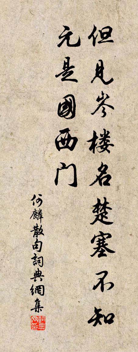 詩詞名句歷史字典書法欣賞書法字典國語詞典說文解字康熙字典古漢語字典標 題 作 者 詩 句 句作者:何麟 朝代:宋代句原文但見岑樓名楚塞,不知元是國西門。詩詞問答問:句的作者是誰?答:何麟問:句寫於哪個朝代?答:宋代何麟句書法欣賞句書法作品詩詞推薦麗人行楊維楨〔元代〕楊白花飛愁 * ,美人如華不勝春。錦韉馱起雙鳳縷,黃門挾飛五花雲。白日雷霆夾城道,樂遊園里春正好。就中金陵有美堂梅堯臣〔宋代〕李白愛山如洛陽,三杯為歌愁日長。廢基台殿不可識,玉燕舊棲王謝堂。公來碧瓦起棟宇,羅列圖畫牙作床。池頭偈頌一百零四首釋紹曇〔宋代〕虛空包不包,大地壞不壞。行腳不遇人,出語無賴聊。謾言密室不風,顯紙如何裹大蟲。枯梅馬知節〔宋代〕斧斤牋不死,半蘚半枯槎。寂寞幽岩下,一枝三四花。蒲蓆歌艾性夫〔宋代〕君不床見象床金縷床黃龍鬚,床翠幃茸床紅氍毹。凝香燕寢環瓊姝,美物作惡常須臾。能令王孫泣路隅,富貴不到送南京簽判寇中舍梅堯臣〔宋代〕東風莫迎船,船下黃流急。送車猶未動,顧棹已不及。離宮佳氣盤,賓幙平時入。因君報親舊,將去江南邑。和因老游水寨府治東軒二首王之道〔宋代〕買山荷疊錢,照天水開府。幽花有餘香,誰復為賈午。勝名須斯人,清游更何所。臨深未能還,我俗作危語。踏莎行·小徑紅稀晏殊〔宋代〕小徑紅稀,芳郊綠遍,高台樹色陰陰見。春風不解禁楊花,蒙蒙亂撲行人面。翠葉藏鶯,朱簾隔燕,爐香靜逐遊絲西江月佚名〔宋代〕夜半河痕依約,雨余天氣冥濛。起行微月偏池東。水影浮花、花影動簾櫳。量減難追醉白,恨長莫盡題紅。雁聲能村居初夏陸游〔宋代〕天遣為農老故鄉,山園三畝鏡湖傍。嫩莎經雨如秧綠,小蝶穿花似繭黃。斗酒只雞人笑樂,十風五雨歲豐穰。相逢真歡樂王哲〔元代〕便把戶門安鎖*。內更蘊、最奇略。安爐灶、鍛鍊金精,養元神、修完丹藥。二粒圓成光灼灼。虛空外,往來盤礴滿庭芳 覺前非馬鈺〔元代〕不待人詢,須當自問,如何用意圖財。若非奸狡,無有自然來。心起慳貪嫉妒,寧思想、橫禍非災。欺天地,暗懷讀仲退和胡秀才詩有感斯文用韻徐瑞〔宋代〕文章聖外無誰語,獨立蒼茫只屢愛。從渠高眼空四海,自古名家能幾人。愛鳥怒蟹言何淺,畫虎雕龍技漫新。吾道句孫何〔宋代〕飛泉落翠巘,爽籟生寒空。怨詩效徐淑體姚月華〔唐代〕妾生兮不辰,盛年兮逢屯。寒暑兮心結,夙夜兮眉顰。循環兮不息,如彼兮車輪。車輪兮可歇,妾心兮焉伸。雜沓飽良父弟橫舟曹彥約〔宋代〕簿書日月費消磨,華鄂歸來樂事多。已涉一川舟自在,相安眾口麴平和。人生正好乘流止,塵世相逢對酒歌。欲泛臨江仙王炎〔宋代〕思憶故園花又發,等閒過了流年。休論升擢與平遷。拂衣歸去好,無事即神仙。況是老人頭雪白,羞看紅粉嬋娟。嘲禿筆周獻甫〔宋代〕中書君己不中書,椎鈍無心費指呼。別有管城堪任使,從教罵作筆頭奴。陪中書李紓舍人夜泛東池盧綸〔唐代〕看月復聽琴,移舟出樹陰。夜村機杼急,秋水芰荷深。石靜龜潛上,萍開果暗沈。何言奉杯酒,得見五湖心。調笑令王建〔唐代〕團扇,團扇,美人並來遮面。玉顏憔悴三年,誰復商量管弦。弦管,弦管,春草昭陽路斷。名句推薦料因循誤了,殘氈擁雪,故人心眼。張炎《解連環·孤雁》 學而不思則罔,思而不學則殆。孔子弟子《論語·為政篇》 雖慚老圃秋容淡,且看黃花晚節香。韓琦《九日水閣》 塞上秋風鼓角,城頭落日旌旗。元好問《江月晃重山·初到嵩山時作》 野店垂楊步,荒祠苦竹叢。范成大《寒食郊行書事》 雨蓑煙笠嚴陵近,慚愧清流照客顏查慎行《雨過桐廬》 不挾長,不挾貴,不挾兄弟而友。孟子《孟子·萬章章句下·第三節》 安危在出令,存亡在所任。司馬遷《史記·楚元王世家》 又是重陽近也,幾處處,砧杵聲催。秦觀《滿庭芳·碧水驚秋》 楊柳乍如絲,故園春盡時。納蘭性德《菩薩蠻·問君何事輕離別》