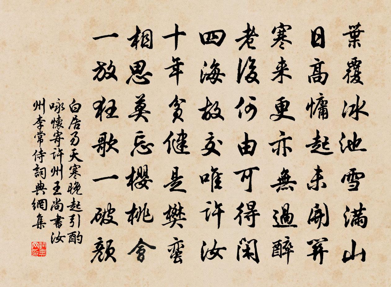 問:《天寒晚起引酌詠懷寄許州王尚書汝州李常侍》的作者是誰?答:白居易