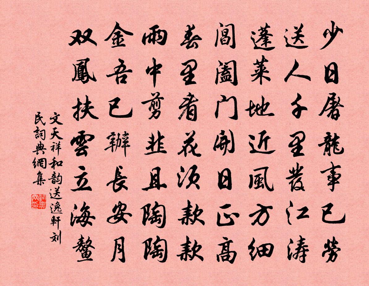 文天祥和韻送逸軒劉民書法欣賞
