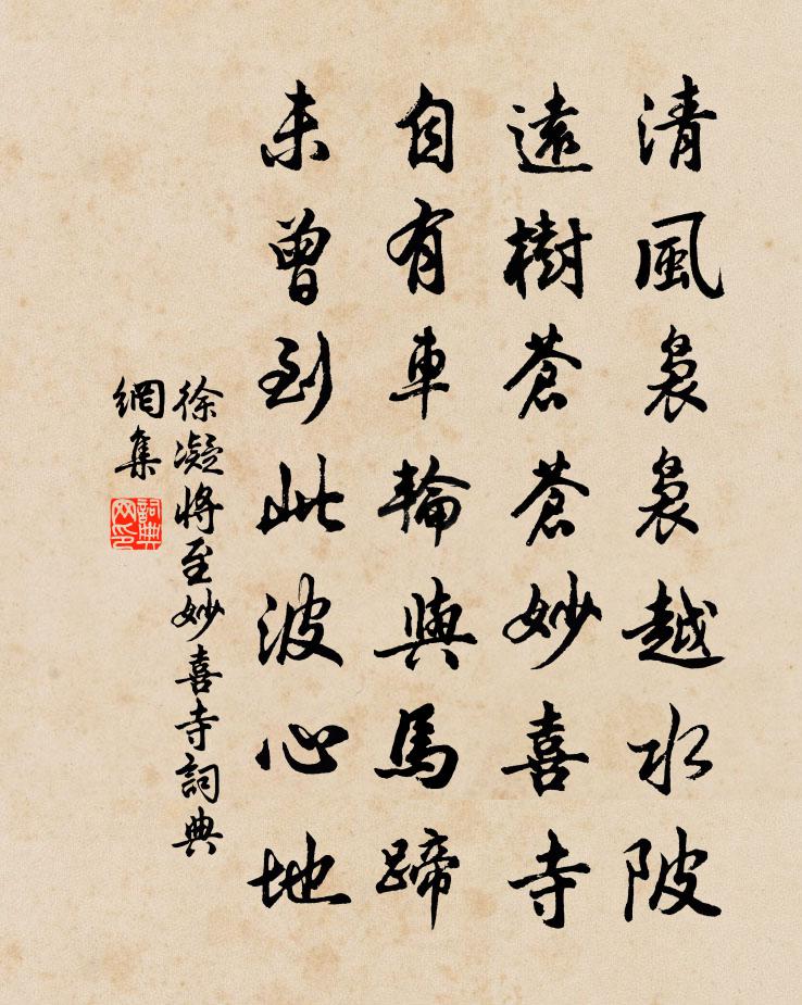 清風裊裊越水陂,遠樹蒼蒼妙喜寺。自有車輪與馬蹄,未曾到此波心地。