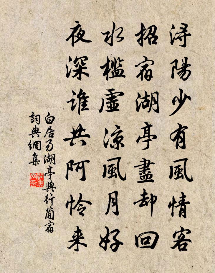 潯陽少有風情客,招宿湖亭盡卻回。水檻虛涼風月好,夜深誰共阿憐來?