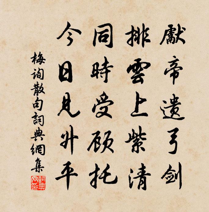 詩詞名句歷史字典書法欣賞書法字典國語詞典說文解字康熙字典古漢語字典標 題 作 者 詩 句 句作者:梅詢 朝代:宋代句原文先帝遺弓劍,排雲上紫清。同時受顧托,今日見昇平。詩詞問答問:句的作者是誰?答:梅詢問:句寫於哪個朝代?答:宋代梅詢句書法欣賞句書法作品詩詞推薦梅花張問陶〔清代〕花中資格本遲遲,鐵石心腸淡可知。此世何人能領略,為君終夜費相思。看來風雪無多日,香到園林第幾枝。自是哭補闕亡友綦毋學士王灣〔唐代〕明代資多士,儒林得異才。書從金殿出,人向玉墀來。詞學張平子,風儀褚彥回。崇儀希上德,近侍接元台。曩契次韻楊光父見贈晁公溯〔宋代〕為善惟不足,務德莫如滋。古人行此道,名與星斗垂。是邦禿鬢翁,實乃古醜夷。區區豈雲難,長者能折枝。上尋榮華樂(一作東洛梁家謠)李賀〔唐代〕鳶肩公子二十餘,齒編貝,唇激朱。氣如虹霓,飲如建瓴,走馬夜歸叫嚴更。徑穿復道游椒房,龍裘金玦雜花光。六代祖師贊釋心月〔宋代〕能與麽去,能與麽回。青松郁密,白髮摧頹。嶺南訊息幾時來。病起二首齊己〔唐代〕一臥四十日,起來秋氣深。已甘長逝魄,還見舊交心。撐拄筇猶重,枝梧力未任。終將此形陋,歸死故丘林。秋風古纏頭曲蘇軾〔宋代〕鵾弦鐵撥世無有,樂府舊工惟尚叟。一生喙硬眼無人,坐此困窮今白首。翠鬟女子年十七,指法已似呼韓婦。輕帆酬陳叔裕四首王炎〔宋代〕花枝破蕾作輕紅,漸有春愁入眼中。儻可登樓銷暇日,幸無舉扇障西風。朱弦自奏難諧俗,白璧深藏莫醜窮。樽酒頌十玄談回機釋印肅〔宋代〕卻裝珍御復名誰,更展琅函耀木輝。了道不除□權立,一切元體是無餘。句薛舜俞〔宋代〕丘壑胸中事。和茅山高拾遺憶山中雜題五首小樓儲嗣宗〔唐代〕松杉風外亂山青,曲幾焚香對石屏。空憶去年春雨後,燕泥時污太玄經。謁金門(次韻鄭婺源)韓淲〔宋代〕行又住。水遠山遙村路。把酒問春春幾許。老年花似霧。坐上風流張緒。留我我還難去。卻憶章台飛柳絮。只愁縈洪州曾鞏〔宋代〕洪州城中荒且遠,每到弱馬常驅馳。交朋顧我亦已厚,謝詞有禮寧當違。人生有累乃汲汲,萬事敦迫如銜羈。山中送林元質侍郎赴宣城二首劉克莊〔宋代〕江鄉民力已凋疲,妙選名臣往拊綏。此去天家增保障,向來帝子擁旌麾。蕭生補郡寧忘諫,謝守看山定有詩。相國登塔陸游〔宋代〕冷官無一事,日日得閒遊。壯哉千尺塔,攝衣上上頭,眼力老未減,足疾新有瘳,幸茲濟勝具,俯仰隘九州。雪山雜題二首孔武仲〔宋代〕曲澗低泉左右鳴,步虛宮殿音琚珩。清風杳不知來處,散人松間作鳳笙。己已秋七月不雨人心焦然乃戊午齋宿致城隍清牟巘五〔宋代〕龍輈欲駕已多時,父老遮留一日遲。秋菊寒拉何心報,精勤更寫送神詩。頌古三十一首釋玿〔宋代〕我腳何似驢腳,擬議知君大錯。進前欲飲醍醐,已似遭他毒藥。澄清閣祖無擇〔宋代〕范滂雅志在澄清,今日廉車命閣名。華榜高標雖具美,奈何長是困蒼生。水龍吟丘處機〔元代〕洞天春色盈盈,亂山秀出千堆錦。雲收雨斂,曉晴煙淡,碧空橫枕。高臥怡怡,頓開懷抱,釋迷忘寢。看仙花瑞草名句推薦春恨秋悲皆自惹,花容月貌為誰妍。曹雪芹《紅樓夢·第五回》 箴者,針也,所以攻疾防患,喻針石也。劉勰《文心雕龍·銘箴》 鬧里掙錢,靜處安身。佚名《增廣賢文·上集》 知章騎馬似乘船,眼花落井水底眠杜甫《飲中八仙歌》 意少一字則義闕,句長一言則辭妨劉勰《文心雕龍·書記》 華表月明歸夜鶴,嘆當時、花竹今如此吳文英《金縷歌·陪履齋先生滄浪看梅》 笑綠鬟鄰女,倚窗猶唱,夕陽西下。蔣捷《女冠子·元夕》 坐看黑雲銜猛雨,噴灑前山此獨晴。崔道融《溪上遇雨二首》 無言暗將紅淚彈。闌珊,香銷輕夢還。納蘭性德《河傳·春淺》 將軍玉帳貂鼠衣,手持酒杯看雪飛。劉基《北風行》