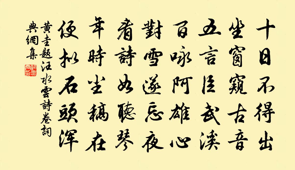 詩詞名句歷史字典書法欣賞書法字典國語詞典說文解字康熙字典古漢語字典標 題 作 者 詩 句 題汪水雲詩卷作者:黃圭 朝代:宋代題汪水雲詩卷原文十日不得出,坐窗窺古音。五言臣武溪,百詠阿雄心。對雪遂忘夜,看詩如聽琴。年時塵稿在,便擬石頭渾。詩詞問答問:題汪水雲詩卷的作者是誰?答:黃圭問:題汪水雲詩卷寫於哪個朝代?答:宋代黃圭題汪水雲詩卷書法欣賞題汪水雲詩卷書法作品詩詞推薦小舟泝馬湖江度正〔宋代〕橫斜驟雨巾折角,屈曲小舟屋打頭。石壁愈高天愈遠,亂雲深處羈縻州。行旅圖唐寅〔明代〕鞋襪東城路,清和四月時。游姬香滿袖,明月水平地。畫燭留錫市,酸風颭酒旗。少年行樂地,不許眾人知。山居雜詩九十首曹勛〔宋代〕晨粥山中行,落葉響步武。委曲訪隱逸,清談銷百慮。老湯瀹苦茗,宿火煨山芋。卻照夕陽歸,家人不知處。和丹岩入屋韻衛宗武〔宋代〕得廬莫恨太婆娑,繚以芳蘅葺以荷。徙舍借車家具少,架書充棟手編多。且甘窮巷飲瓢樂,須有文朋載酒過。他日木蘭花慢鄭禧〔元代〕恃平生豪氣,沖星斗,渺雲煙。記楚水湘山,吳雲越月,頻入詩篇。皎潔劍光零亂,算幾番、沉醉樂花前。□種仙贈星命嚴叔遇卓田〔宋代〕聰明要是讀書人,占藝名家事事精。試問五星嚴叔遇,更無三個蜀君平。的言盡中尤其中,真術如生不是生。有伎歸朝歡辛棄疾〔宋代〕書不借出萬里康成西走蜀。藥市船歸書滿屋。有時光彩射星躔,何人汗簡讎天祿。好之寧有足。請看良買藏金玉。始到無極作晁說之〔宋代〕徂歲若飛羽,去矣不可招。諒積寒暑多,我發覺翛翛。是身一枯木,引憂 * 燒。河山再遊宦,鄉國夢魂勞。友朋臨江仙向滈〔宋代〕瘦損東陽緣底事,離愁別恨難禁。夜長誰共擁孤衾。來時青鬢在,今已二毛侵。流水青山依舊是,蘭橈往事空尋。送廬州賈使君拜命劉商〔唐代〕考績鐵朝稱貴,鐵時清武用鐵文。二天鐵移外府,三命佐元勛。佩玉兼高位,摐金閱上軍。威容冠是鐵,圖畫閣名寄陳伯予主簿陸游〔宋代〕今年閏余時今早,十月霜風吹客倒。老夫畏寒不出門,數步鄰家跡如掃。此時陳子獨何勇,飢僮瘦馬長安道。絕知徐大著輓詩二首劉子翬〔宋代〕韋經傳素業,漢策射巍科。史擅三長譽,書仇九寫訛。甑塵終寂寞,雲路久蹉跎。迅景崦嵫迫,知君恨獨多。收襄陽城二首戎昱〔唐代〕悲風慘慘雨修修,峴北山低草木愁。暗發前軍連夜戰,平明旌旆入襄州。五營飛將擁霜戈,百里殭屍滿濜河。日暮題舫齋孫元卿〔宋代〕滿船載月華亭子,泛宅浮家張志和。何似舫齋趺坐穩,莫教平地起風波。滎陽唐高祖太宗石刻像蘇轍〔宋代〕誰言膚寸像,勝力妙人天。欲療眾生病,陰扶濟世賢。身微須覆護,眼淨照幾先。豈為成功報,猶應歷劫緣。題湖南清絕圖韓駒〔宋代〕故人來從天柱峰,手提石廩與祝融。兩山坡陀幾百里,安得置之行李中?下有瀟湘水清瀉,平沙赤岸搖丹楓。漁舟偈頌二百零五首釋正覺〔宋代〕不起一念,向道須彌。舌頭一臠肉,口唇兩邊皮。雲門得用妙如許,不落是非知不知。題陳西老畫蜀山圖徐璣〔宋代〕壁立青山帶峽溪,閒雲盡日自高低。知他春樹深多少,應有清猿在裹啼。趙忠定濠梁帖贊岳珂〔宋代〕真宰之出,維天降才。既玉於成,勛名九垓。山川出雲,時雨必至。道之將行,公揭魁瑞。問學已正,淵源已充。用前韻酬高仲貽見贈林季仲〔宋代〕杖藜谷口佇歸雲,生理蕭條一葛巾。未敢軒眉焚芰制,更期晚節伴霜筠。江山約我盟猶在,風月於人意自新。木落名句推薦非知之難也,處知則難也。韓非及後人《韓非子·說難》 王母歡闌瓊宴罷,仙人淚滿金盤側。文天祥《滿江紅·代王夫人作》 嫩寒鎖夢因春冷,芳氣籠人是酒香。曹雪芹《紅樓夢·第五回》 勸君莫惜金縷衣,勸君惜取少年時。杜秋娘《金縷衣》 蟬鳴空桑林,八月蕭關道。王昌齡《塞下曲四首》 嘆人間,美中不足今方信。縱然是齊眉舉案,到底意難平。曹雪芹《紅樓夢·第五回》 渡頭餘落日,墟里上孤煙。王維《輞川閒居贈裴秀才迪》 夜如何其夜漫漫,鄰雞未鳴寒雁度。劉禹錫《更衣曲》 強中更有強中手,莫向人前滿自誇。馮夢龍《警世通言·卷三》 這次第,怎一個愁字了得!李清照《聲聲慢·尋尋覓覓》