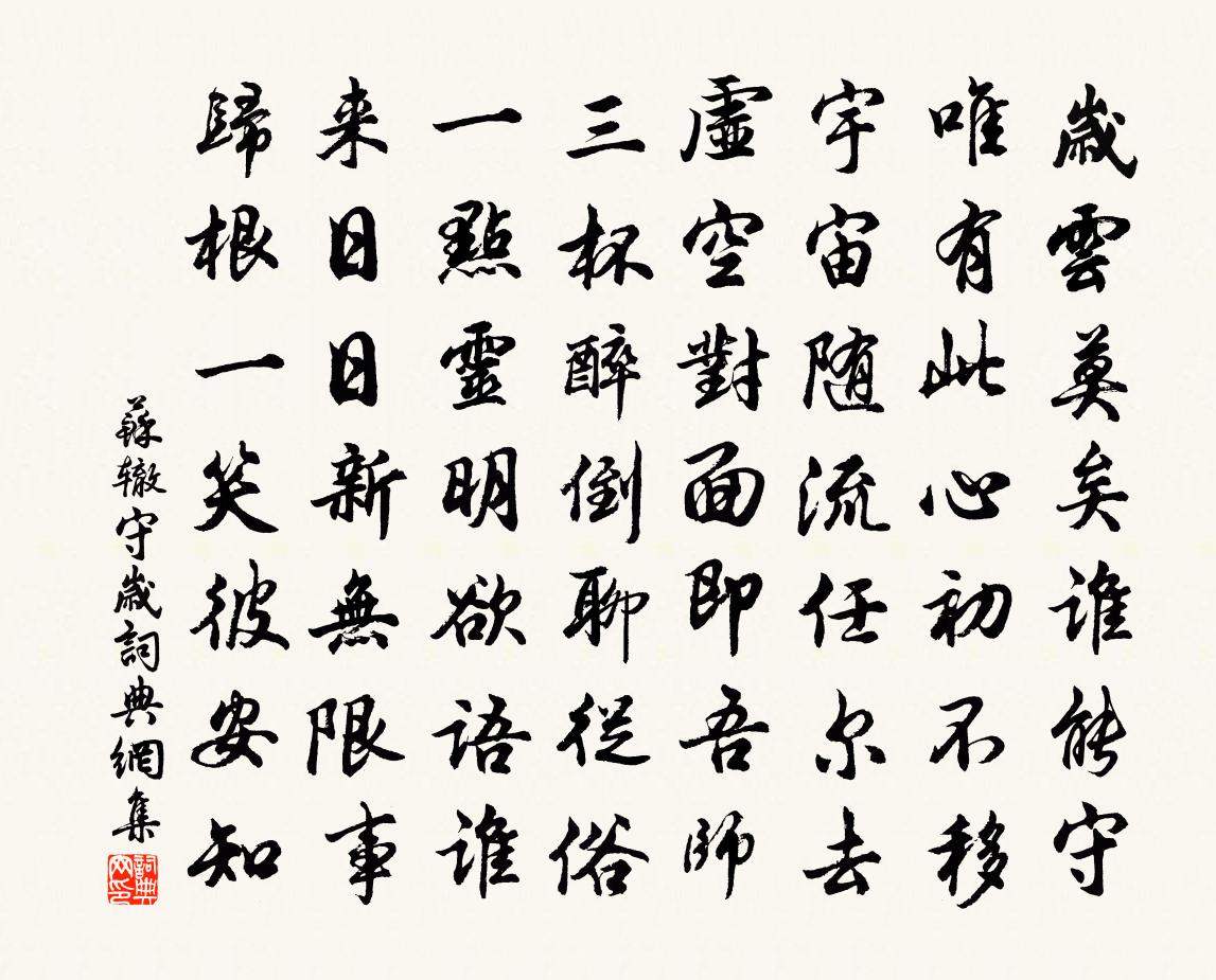 詩詞名句歷史字典書法欣賞書法字典國語詞典說文解字康熙字典古漢語字典標 題 作 者 詩 句 守歲作者:蘇轍 朝代:宋代守歲原文歲雲莫矣誰能守,唯有此心初不移。宇宙隨流任爾去,虛空對面即吾師。三杯醉倒聊從俗,一點靈明欲語誰。來日日新無限事,歸根一笑彼安知。詩詞問答問:守歲的作者是誰?答:蘇轍問:守歲寫於哪個朝代?答:宋代問:蘇轍的名句有哪些?答:蘇轍名句大全蘇轍守歲書法欣賞守歲書法作品詩詞推薦鷓鴣(一作韋應物詩)李嶠〔唐代〕可憐鷓鴣飛,飛向樹南枝。南枝日照暖,北枝霜露滋。露滋不堪棲,使我常夜啼。願逢雲中鶴,銜我向寥廓。願作虞美人(東山海棠)李彌遜〔宋代〕海棠開後春誰主。日日催花雨。可憐新綠遍殘枝。不見香腮和粉、暈燕脂。去年攜手聽金縷。正是花飛處。老來先石橋接待施樞〔宋代〕當年立雪直齊腰,宗旨流傳到石橋。風急窗寒燈影遠,疏梅無語夜薌銷。和山間壁上陳子忠顏發〔宋代〕風蒲水荇度清香,兩兩飛鳧墮渺茫。目送征帆掠波去,碧天無際暮去長。我有綠綺琴黎廷瑞〔宋代〕我有綠綺琴,寶匣生蛛絲。拂拭聊一鼓,意淡音愈微。隱几忽自笑,持茲將付誰。所以絕弦者,痛惜無鍾期。吾人題彌勒院章孝參〔宋代〕橋通流水綠溶溶,殿閣穹然鎮象龍。半壁石橋通雪竇,一龕麗室占雷峰。掛岩屋似六和塔,入路門如九里松。遙想水調歌頭(壽太守黃少卿。)葉路鈐〔宋代〕天啟黃旗運,復見漢黃香。名高黃榜,飛黃騰踏入鴛行。文彩蘇黃而上,政事龔黃而右,黃紙選循良。黃見眉間色讀段太尉碑崔塗〔唐代〕憤激計潛成,臨危豈顧生。只空持一笏,便欲碎長鯨。國已酬徽烈,家猶聳義聲。不知青史上,誰可計功名。送何端卿帥瀘黃彥平〔宋代〕人物當年盛學宮,笑談嘗許小人同。分襟短艇江湖去,回首觚稜涕淚中。卻敘桅花聽夜雨,又還菰菜動秋風。祗應贈孫花翁翁甫〔宋代〕我生頭髮未燥時,花間已歌花翁詩。我發既長今漸白,猶見花翁好顏色。舉酒祝翁壽百年,我為詩孫戲翁邊。題石橋賀允中〔宋代〕敢祈方廣現危梁,千古燈燃共此光。聊試茶花便歸去,杖頭挑得晚風涼。涵空閣葉茵〔宋代〕浪說涵空未是空,一闌羅列幾巃嵷。世人若問空中景,此景從來是夢中。清心鏡 贈長安李先生馬鈺〔元代〕李先生,忒執拗。全真堂下,最難訓教。學修行、不尚扶犁,道我咱偏好。再三勸,再四告。認取五色祥雲,自然夜分趙希邁〔宋代〕夜分天籟寂,誰與共襟期。童子醉眠處,老夫吟苦時。雲黏蒼蘚石,月掛老松枝。一鶴來何處,相從立水湄。和李璧凌丹亭曾極〔宋代〕思陵宸翰麗昭回,閣上金□長紫苔。試向凌丹尋妙墨,何時真見白雲來。蟬潘牥〔宋代〕秋事遽如許,空山夜已蟬。多吟清露底,偏傍竹籬邊。翼似霜余葉,聲如雨後泉。兒曹讀書罷,貪聽不成眠。謝趙周錫制乾和篇袁說友〔宋代〕甫擲拋磚句,俄驚翻水成。源泉夸敏思,擊缽噤無聲。白玉雕鐫巧,黃金煅煉精。我慚非腹稿,不復敢披呈。頌古九首釋了演〔宋代〕忽聞幕下哭哀哀,頓使天台對五台。風月一天今古在,通身是口也難開。再賦一章用伸贈別王禹偁〔宋代〕七榜御前搜俊造,商州終未識遷鶯。可憐白屋孤寒士,更住深山寂寞城。獨跨蹇驢雲外去,仍攜稚子雪中行。散官雲安監勸學詩王日翬〔宋代〕雲安古湯谿,□□□□濱。無室不鹽煙,無民不樵薪。士子獨希少,錐刀事艱辛。我因沿檄來,暇日聊諮詢。谿山名句推薦夕陽閒淡秋光老,離思滿蘅皋柳永《少年游·參差煙樹灞陵橋》 一條藤徑綠,萬點雪峰晴。李白《冬日歸舊山》 且樂生前一杯酒,何須身後千載名?李白《行路難三首》 竹深樹密蟲鳴處,時有微涼不是風。楊萬里《夏夜追涼》 政之所興,在順民心。管仲《管子·牧民》 天下三分明月夜,二分無賴是揚州。徐凝《憶揚州》 井放轆轤閒浸酒,籠開鸚鵡報煎茶。張蠙《夏日題老將林亭》 父在,觀其志;父沒,觀其行;三年無改於父之道,可謂孝矣。孔子弟子《論語·學而篇》 飲馬渡秋水,水寒風似刀。王昌齡《塞下曲四首》 白馬黃金塞,雲砂繞夢思。李白《塞下曲六首》