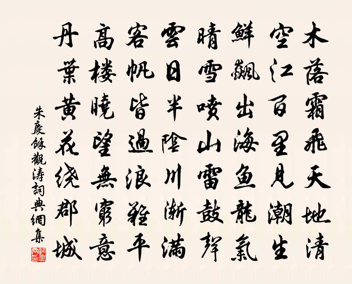 詩詞名句歷史字典書法欣賞書法字典國語詞典說文解字康熙字典古漢語字典標 題 作 者 詩 句 觀濤作者:朱慶餘 朝代:唐代觀濤原文木落霜飛天地清,空江百里見潮生。鮮飆出海魚龍氣,晴雪噴山雷鼓聲。雲日半陰川漸滿,客帆皆過浪難平。高樓曉望無窮意,丹葉黃花繞郡城。詩詞問答問:觀濤的作者是誰?答:朱慶餘問:觀濤寫於哪個朝代?答:唐代朱慶餘觀濤書法欣賞觀濤書法作品注釋全唐詩:卷515-86詩詞推薦早春病中張籍〔唐代〕羸病及年初,心情不自如。多申請假牒,只送賀官書。幽徑獨行步,白頭長懶梳。更憐晴日色,漸漸暖貧居。玉山謠奉送王隱者鮑溶〔唐代〕鳳凰城南玉山高,石腳聳立爭雄豪。攢峰胎玉氣色潤,百泉透雲流不盡。萬古分明對眼開,五煙窈窕呈祥近。有客四用韻十首楊公遠〔宋代〕因循身漸老,性懶謁王侯。嘗到新藍尾,翻余舊曆頭。春來雖可喜,歲去抑何愁。桃板書聯句,三平二滿休。雜詠一百首樊通德劉克莊〔宋代〕妝束姑隨世,風流亦動人。等閒擁髻語,千載尚如新。沁園春 (原作沁春元,據丁藏精鈔本改)無謝應芳〔元代〕借問黃花,過了重陽,如何始開。為客中陶令,逢他初度,尊前杜舉,要我相陪。十日秋香,百年晚景,一笑今朝府尹王宣徽席上作邵雍〔宋代〕留都三判主人翁,大第名園冠洛中。又喜一年春入手,萬花香照酒巵紅。對梅張道洽〔宋代〕老年不著梅花眼,得見梅花子細看。我不似梅梅似我,風流心事一般般。送周架閣以浙東提乾歸平江魏了翁〔宋代〕共惟仁義心,無賢愚聖狂。紛紛萬弓箭,獨以寸鐵當。毫氂有不察,居然失其鄉。察則我固有,而失豈真亡。周君與陳大監乞米釋寶曇〔宋代〕灶間三日怒飢面,老去一豪無木腸。走乞毗耶半炊玉,歸來作舞繞繩床。更漏子晏殊〔宋代〕塞鴻高,仙露滿。秋入銀河清淺。逢好客,且開眉。盛年能幾時。寶箏調,羅袖軟。拍碎畫堂檀板。須盡醉,莫推木芙蓉姜特立〔宋代〕商氣正慘栗,商花忽紅芳。有如乍貧婦,猶飾盛時妝。眾自驚賞心,所見非所望。此後少朱榮,寂寞橘柚黃。谷隱寺李廌〔宋代〕挈巢江湖去,端為山水癖。朅來谷隱游,契我賞心適。寒江渺平楚,復嶺轉層壁。誰與龍象筵,一掃狐兔跡。彩雲再用前韻贈子勉四首黃庭堅〔宋代〕胸中有度澤人,事上無心活身。只麽情親魚鳥,儻然圖畫麒麟。永壽縣太君周氏輓辭二首王安石〔宋代〕永壽開新邑,長沙返舊塋。金葩冷鈿軸,粉字暗銘旌。薤久露難濕,蘭餘風尚清。慶鍾知有在,令子合升卿。偈頌七十一首釋了惠〔宋代〕兩手指天地,周行步更多。可憐黃面老,螃蟹落湯鍋。寄蔡彥規兼謝惠酥梨二首張耒〔宋代〕洛川北岸錦屏西,竹樹蕭蕭面翠微。風月有情常似舊,山川信美不如歸。文章送老甘無用,魚鳥從游久息機。寄語春日晚行王安石〔宋代〕門前楊柳二三月,枝條綠煙花白雪。呼僮羈我果下騮,欲尋南岡一散愁。綠岡初日溝港淨,與我門前綠相映。隔淮和王才臣再病二首楊萬里〔宋代〕燕外將心遠,鶯邊與耳謀。如何再臥病,對此兩添愁。赤壁還坡老,黃樓只子由。二蘇三賦在,一覽病應休。除夜雪陸游〔宋代〕只怪重衾不禦寒,起看急雪玉花乾。遲明欲謁虛皇殿,廄馬蒙氈立夜闌。冬華一夜霜陳普〔宋代〕天地生萬物,節度各有常。毫髮不可亂,奉時以行藏。不惟寡悔吝,尤可免折傷。倘不如所受,一一皆自伐。今年名句推薦不戚戚於貧賤,不汲汲於富貴。陶淵明《五柳先生傳》 知我者,謂我心憂;不知我者,謂我何求。佚名《黍離》 同心一人去,坐覺長安空。白居易《別元九後詠所懷》 愁煩中具瀟灑襟懷,滿抱皆春風和氣;暗昧處見光明世界,此心即白日青天。王永彬《圍爐夜話·第七八則》 酒後競風采,三杯弄寶刀。李白《白馬篇》 夢斷香消四十年,沈園柳老不吹綿。陸游《沈園二首》 年方少,勿飲酒。飲酒醉,最為醜。李毓秀《弟子規·謹》 寧戀本鄉一捻土,莫愛他鄉萬兩金。吳承恩《西遊記·第十二回》 雷雨窈冥而未半,皦日籠光於綺寮。左思《三都賦》 高樓目盡欲黃昏,梧桐葉上蕭蕭雨。晏殊《踏莎行·碧海無波》