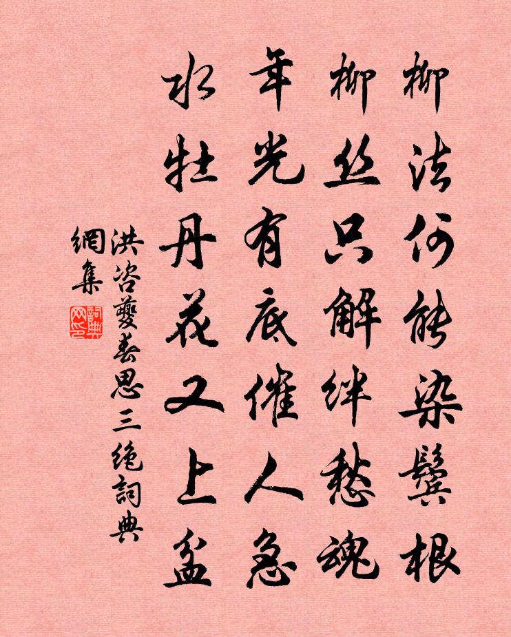 詩詞名句歷史字典書法欣賞書法字典國語詞典說文解字康熙字典古漢語字典標 題 作 者 詩 句 春思三絕作者:洪咨夔 朝代:宋代春思三絕原文柳法何能染鬢根,柳絲只解絆愁魂。年光有底催人急,水牡丹花又上盆。詩詞問答問:春思三絕的作者是誰?答:洪咨夔問:春思三絕寫於哪個朝代?答:宋代洪咨夔春思三絕書法欣賞春思三絕書法作品詩詞推薦賞花趙葵〔宋代〕人樂清明三月天,也隨人賞萬花園。偷閒把酒簪花去,不似兒童笑語喧。高兄徐倉高弟和劉公之兩絕見寄再韻謝之杜范〔宋代〕袖手閒居德日新,靜安增伴四時春。君方入室慰此老,肯作浮陽愧古人。題武夷趙宗吉〔宋代〕天風吹盡蔽空雲,疊嶂層巒勢吐吞。鐵笛聲沉人換世,幔亭宴罷竹生孫。崑閬境界煙霞窟,洙泗源流道義門。分治山行經樵翁鮑溶〔唐代〕我心勞我身,遠道誰與論。心如木中火,憂至常自燔。披訪結恩地,世人輕報恩。女無良媒識,知入何人門。寒日浣溪沙(題湖樓壁)高觀國〔宋代〕一色煙雲澹不消。兩峰眉黛為誰嬌。春寒猶占木蘭橈。燕子似甘愁寂寞,海棠未肯醉妖嬈。小園嫩約尚蕭條。古樂府白紵四時歌黃庭堅〔宋代〕北風降霜松柏雕,天形慘澹光景銷。山河夜半失故處,何地藏舟無動搖。少年志願不成就,故年主人且恩舊。及河和微之詩二十三首並序白居易〔唐代〕微之又以近作四十三首寄來,命仆繼和,其間瘀絮四百字、車斜二十篇者流,皆韻劇辭殫,瑰奇怪譎。又題云:奉晦庵先生遺墨汪炎昶〔宋代〕刊除浮習語丁寧,洙泗餘風颳地清。孔李通家爭幾許,當時獨未作門生。薄薄酒二章黃庭堅〔宋代〕薄酒可與忘憂,醜婦可與白頭。徐行不必駟馬,稱身不必狐裘。無禍不必受福,甘餐不必食肉。富貴於我如浮雲,洛陽牡丹梅堯臣〔宋代〕古來多貴色,歿去定何歸。清魄不應散,艷花還所依。紅棲金谷妓,黃值洛川妃。朱紫亦皆附,可言人世稀。臨江仙辛棄疾〔宋代〕小靨人憐都惡瘦,曲眉天與長顰。沈思歡事惜腰身。枕添離別淚,粉落卻深勻。翠袖盈盈渾力薄,玉笙裊裊愁新。次韻子瞻和淵明飲酒二十首蘇轍〔宋代〕南方有貧士,狂怪如病風。垢面發如葆,自污屠酒中,導我引河水,上與崑崙通。長箭挽不盡,不中無尤弓。再次仁季詠梅韻曹彥約〔宋代〕衙官桃李列芳台,豈有凡花敢並梅。雅健巧妨各動自,參差能作數番開。爭先照眼春無限,索笑關心日幾回,莫道暇日覽舊詩因以題詠錢起〔唐代〕逍遙心地得關關,偶被功名涴我閒。有壽亦將歸象外,無詩兼不戀人間。何窮默識輕洪範,未喪斯文勝大還。筐篋佳人杜甫〔唐代〕絕代有佳人,幽居在空谷。自雲良家子,零落依草木。關中昔喪敗,兄弟遭殺戮。官高何足論,不得收骨肉。世情蠶麥二首蘇轍〔宋代〕三界人家多鮮福,一時蠶麥得難兼。鋤耰已愧非吾力,湯火尤驚取不廉。貴客爭夸火浣布,貧家粗有水精鹽。薄衫和劉清叔襄陽草廬韻二首李曾伯〔宋代〕萬壑長松幾歲寒,老龍曾向此中蟠。而今肯為蒼生起,何止編方蜀雇寬。富春·富春縣前江厲鶚〔清代〕富春縣前江勢奔,危樓如畫俯山根。林林人影向沙市,葉葉風帆下海門。秋入遙空無寸翳,旱經焦土有千村。田家南鄉子 近聞事子有茂陵側室之舉,順命故也王惲〔元代〕行, 不無自傷之意。故首章托以自怨自責, 忌嫉傷善略不見也。然怨不已,則夫婦道乖,故釋以人子之孝,嗣湖上呈虞仲房張鎡〔宋代〕謁客沖泥路有聲,筍輿風裡轉高城。秋山正要一意看,曉日倍添雙目明。淺濼鴟盤思腐啄,孤汀鶴立念遐征。世間名句推薦弱齡寄事外,委懷在琴書。陶淵明《始作鎮軍參軍經曲阿作》 天涯靜處無征戰,兵氣銷為日月光。常建《塞下曲四首·其一》 價一不擇主馮夢龍《警世通言·卷二十二》 別有幽愁暗恨生,此時無聲勝有聲。白居易《琵琶行 / 琵琶引》 當年曾勝賞,生香熏袖,活火分茶。李清照《轉調滿庭芳·芳草池塘》 短綆不可以汲深井之泉,知不幾者不可與及聖人之言。荀子《荀子·榮辱》 竹馬踉蹡沖淖去,紙鳶跋扈挾風鳴。陸游《觀村童戲溪上》 人道山長山又斷。蕭蕭微雨聞孤館。李清照《蝶戀花·淚濕羅衣脂粉滿》 烽火城西百尺樓,黃昏獨上海風秋。王昌齡《從軍行七首》 憂勞可以興國,逸豫可以亡身歐陽修《伶官傳序》