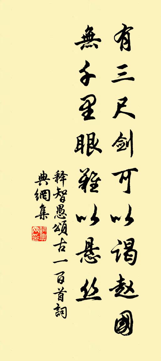 詩詞名句歷史字典書法欣賞書法字典國語詞典說文解字康熙字典古漢語字典標 題 作 者 詩 句 頌古一百首作者:釋智愚 朝代:宋代頌古一百首原文有三尺劍可以謁趙國,無千里眼難以懸絲。詩詞問答問:頌古一百首的作者是誰?答:釋智愚問:頌古一百首寫於哪個朝代?答:宋代釋智愚頌古一百首書法欣賞頌古一百首書法作品詩詞推薦山居詩釋延壽〔宋代〕負氣爭權事可悲,金貂繡轂盡何之,唯聞野棘盤荒冢,只見空陵疊壞碑。燈暗竹堂行道夜。煙昏石窟坐禪時。怡然古風其二李白〔唐代〕蟾蜍薄太清。蝕此瑤台月。圓光虧中天。金魄遂淪沒。螮蝀入紫微。大明夷朝暉。浮雲隔兩曜。萬象昏陰霏。蕭蕭讀書岩程遇孫〔宋代〕穿雲裂石下層巔,來作人間小洞天。雙乾翠濃幾欲滴,兩峰玉立巧當前。環觀邑崖鳥訛尾,倚挹江濤雪滿川。城市謁淮西帥劉過〔宋代〕家住徐城未卜還,歸心正在杳冥間。東遊吳魏三千里,西入成都一萬山。解使愁腸能寸寸,空令淚眼已斑斑。此情舟次示朱友龍董嗣杲〔宋代〕雪花侵鬢轉棲棲,身寄篷窗醉似泥。荻港水寒鷗聚遠,蕪湖山近雁飛低。客舟泊夜秋無奈,社鼓催春夢欲迷。津岸送蘇修游上饒崔峒〔唐代〕愛爾無羈束,雲山恣意過。一身隨遠岫,孤棹任輕波。世事關情少,漁家寄宿多。蘆花淺淡處,江月奈人何。醜石宋庠〔宋代〕磊落離幽壤,沈潛莫記年。支機形迥出,蘊玉勢相連。空穴雲猶抱,坳紋溜欲穿。虎蹲休怯射,羊叱待逢仙。峭拔耆英會詩王拱辰〔宋代〕西都山水天下奇,神嵩景室環清伊。甫申間氣秀不絕,生賢會堅昌明時。衣冠占數盛文雅,台符卿月光離離。魏京感寓權德輿〔唐代〕殘雨倦欹枕,病中時序分。秋蟲與秋葉,一夜隔窗聞。虛室對搖落,晤言無與群。冥心試觀化,世故如絲棼。但看春日游慈恩寺寄暢當耿湋〔唐代〕浮世今何事,空門此諦真。死生俱是夢,哀樂詎關身。遠草光連水,春篁色離塵。當從庾中庶,詩客更何人。次韻林梅卿吏部游湖葛立方〔宋代〕竟日關心朱墨間,西湖好在且偷閒。光凌萬頃搖銀海,興愜千鍾倒玉山。未辦采毫書側理,只愁赤壁下烏蠻。客兒食後王績〔唐代〕田家無所有,晚食遂為常。菜剪三秋綠,飧炊百日黃。胡麻山麨樣,楚豆野麋方。始暴松皮脯,新添杜若漿。葛花春盡舍舟,餘杭雨後山行二首楊萬里〔宋代〕前夕船中索簟眠,今朝山下覺衣單。春歸便肯平平過,須做桐花一信寒。流觴西湖用范左史韻程珌〔宋代〕畫航同載若登仙,卻笑泥韉馬不前。要識冷煙催穀雨,須知澹日養花天。千修翠柳隨風舞,一枝夭桃照水妍。須信頌證道歌證道歌釋印肅〔宋代〕夢裹明明有六趣,驢胎馬腹甚滋味。負鞍銜鐵償他錢,何以今生早歇去。岩桂花方岳〔宋代〕誰遣秋風開此花,天香來自玉皇家。鬱金裳浥薔薇露,知是仙人萼綠華。書龍頭義約簿二首李昴英〔宋代〕鵰鶚聯翻二十名,看看金榜是同盟。河南人面分明見,心說龍頭讖已成。次韻和宮保龐丞相見貺之作宋庠〔宋代〕歲陰誰不感摧頹,更值亨衢出處催。根柢只堪陪櫟社,功名何足玷雲台。覽窮文史篇章倦,過盡榮華老病來。宮袞蔣中丞庭下芙蓉三首滕岑〔宋代〕菊與為朋竹與鄰,閉門誰見曉妝新。不須多羨蘇堤好,車馬往來塵污人。頌古三十八首釋慧方〔宋代〕布毛一吹,當下知歸。冷光遍地,獨露針錐。名句推薦勞苦之事則爭先,饒樂之事則能讓。荀子《荀子·修身》 有不忍言之心,必有不忍言之禍。王永彬《圍爐夜話·第一三O則》 顧謂戚夫人,彼翁羽翼成。李白《山人勸酒》 青春花姊不同時。淒涼生較遲。吳文英《醉桃源·芙蓉》 有功於前,有敗於後,不為損刑。有善於前,有過於後,不為虧法。商鞅《商君書·賞刑》 來是空言去絕蹤,月斜樓上五更鐘。李商隱《無題四首》 君到姑蘇見,人家盡枕河。杜荀鶴《送人游吳》 惜別傷離方寸亂。忘了臨行,酒盞深和淺。李清照《蝶戀花·淚濕羅衣脂粉滿》 休別有魚處,莫戀淺灘頭。佚名《增廣賢文·上集》 記得別伊時,桃花柳萬絲。納蘭性德《菩薩蠻·新寒中酒敲窗雨》