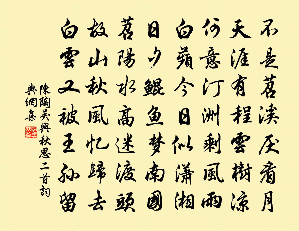 詩詞名句歷史字典書法欣賞書法字典國語詞典說文解字康熙字典古漢語字典標 題 作 者 詩 句 吳興秋思二首作者:陳陶 朝代:唐代吳興秋思二首原文不是苕溪厭看月,天涯有程雲樹涼。何意汀洲剩風雨,白蘋今日似瀟湘。日夕鯤魚夢南國,苕陽水高迷渡頭。故山秋風憶歸去,白雲又被王孫留。詩詞問答問:吳興秋思二首的作者是誰?答:陳陶問:吳興秋思二首寫於哪個朝代?答:唐代陳陶吳興秋思二首書法欣賞吳興秋思二首書法作品注釋全唐詩:卷746-44詩詞推薦送分司吳太博還鄉李覯〔宋代〕休官眾夫許,分政且歸閩。名係金閨彥,身為惠帳人。林泉新得主,冠履漸無塵。知足應常足,安能更問津。失鶴白居易〔唐代〕失為庭前雪,飛因海上風。九霄應得侶,三夜不歸籠。聲斷碧雲外,影沉明月中。郡齋從此後,誰伴白頭翁。擬李義山柳枝詞五首陳師道〔宋代〕伏雌將阿鶩,水陸不相直。鴨鴨橫波去,嗝嗝呼不得。趙再可以通一所作梅雀求題章甫〔宋代〕老去詩情在,逢春只欲狂。飛來枝上雀,似亦愛幽香。鏡屏詩二首李廌〔宋代〕凝澄不動水淵盤,風拂泉生或細瀾。月影透簾朝日薄,龍輝繞匣夜光寒。玄冥借魄知神物,男子無聞已弱冠。照我郡齋戲句晁說之〔宋代〕烏髭四皓應無術,沉醉三閭豈有方。將此衰殘齋戒里,郡人應笑使君狂。因學者問生死到來如何抵當答以四偈釋梵琮〔宋代〕生死到來何抵當,乞兒相見便傾囊。寥寥四顧渾無有,堪笑一身沒處藏。論語絕句一百首張九成〔宋代〕大都禮義本人情,若論人情莫若親。苟使於親無曲折,不知人視作何人。早發交崖山還太室作崔曙〔唐代〕東林氣微白,寒鳥急高翔。吾亦自茲去,北山歸草堂。仲冬正三五,日月遙相望。蕭蕭過潁上,曨曨辨少陽。川冰懷鐘陵舊遊四首杜牧〔唐代〕一謁征南最少年,虞卿雙璧截肪鮮。歌謠千里春長暖,絲管高台月正圓。玉帳軍籌羅俊彥,絳帷環佩立神仙。陸公修仙詞施肩吾〔唐代〕丹田自種留年藥,玄谷長生續命芝。世上漫忙兼漫走,不知求己更求誰。虎北口王珪〔唐代〕來無方馬去無輪,天險分明限一津。願得玉龍橫十萬,榆關重識故封人。雜歌謠辭雞鳴曲王建〔唐代〕雞初鳴,明星照東屋;雞再鳴,紅霞生海腹。百官待漏雙闕前,聖人亦掛山龍服。寶釵命婦燈下起,環珮玲瓏曉光句白居易〔唐代〕長生不似無生理,休向青山學煉丹。 晚秋西省寄上李韓二舍人司空曙〔唐代〕晝漏傳清唱,天恩禁旅秋。雁親承露掌,砧隔曝衣樓。賜膳中人送,餘香侍女收。仍聞勞上直,晚步鳳池頭。滿江紅元好問〔金代〕雪*霜林,□一夜、報春訊息。看是處、青回柳眼,粉勻梅額。和氣已回傾斗闕,壽星更喜明南極。問四□、節物送杜士瞻楚州覲省李嘉祐〔唐代〕風流與才思,俱似晉時人。淮月歸心促,江花入興新。雲深滄海暮,柳暗白田春。共道官猶小,憐君孝養親。次韻子夷兄弟十首張耒〔宋代〕經時不飲酒,廩薄人口眾。人閒多是非,不敢盜鄰瓮。二公洛陽日,想見飲屢痛。行求放湖海,種秫代官俸。朝陽穿破衲贊釋紹曇〔宋代〕斷線無蹊,折針缺鼻。提得完全,金烏西墜。西江月袁易〔元代〕偏是一春憔悴,被人閒賦陽台。扇遮微雨傍牆回。花信餘寒柳外。繡果未成雙荔,打鴉摘盡新梅。暗占胡蝶卻飛來名句推薦美不美,鄉中水;親不親,故鄉人。佚名《增廣賢文·上集》 春愁凝思結眉心,綠綺懶調紅錦薦。顧敻《玉樓春·拂水雙飛來去燕》 斷無蜂蝶慕幽香,紅衣脫盡芳心苦。賀鑄《芳心苦·楊柳回塘》 夫眾喣漂山,聚蚊成雷班固《漢書·傳·景十三王傳》 無情不似多情苦。一寸還成千萬縷。晏殊《玉樓春·春恨》 四十三年,望中猶記,烽火揚州路。辛棄疾《永遇樂·京口北固亭懷古》 撥雪尋春,燒燈續晝。毛滂《踏莎行·元夕》 恃人不如自恃也,明於人之為己者不如己之自為也。韓非及後人《韓非子·外儲說右下》 城外蕭蕭北風起,城上健兒吹落耳。劉基《北風行》 天時懟兮威靈怒,嚴殺盡兮棄原野。屈原《國殤》