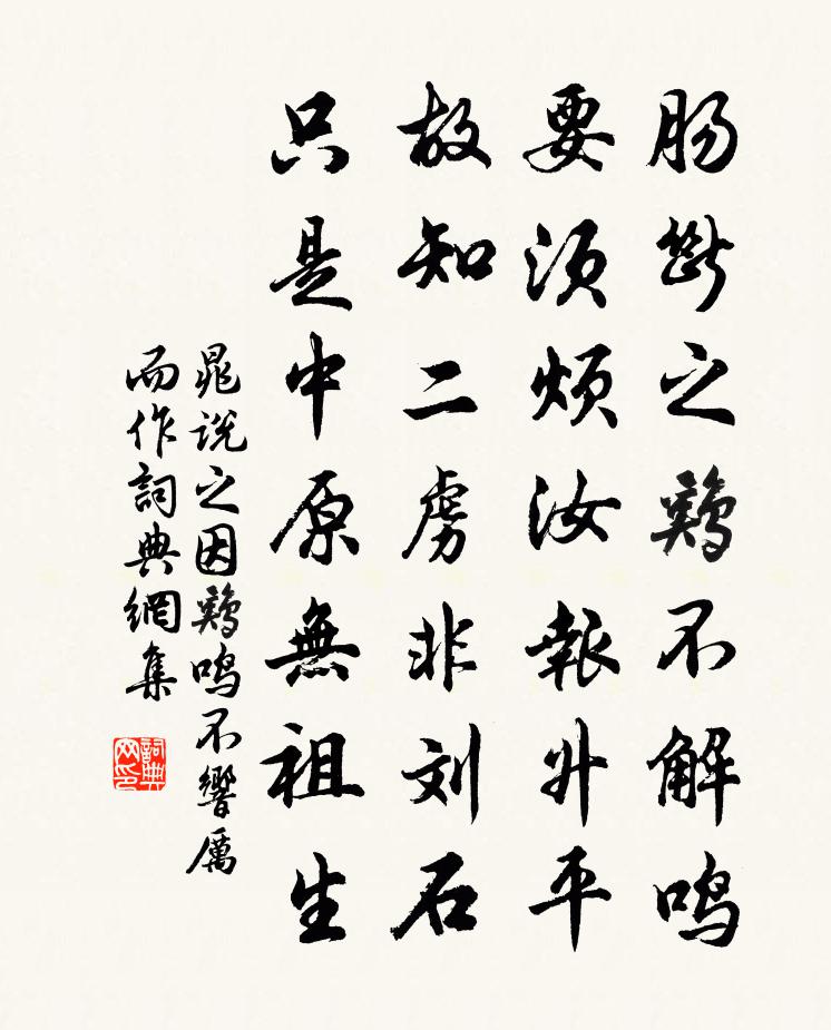 詩詞名句歷史字典書法欣賞書法字典國語詞典說文解字康熙字典古漢語字典標 題 作 者 詩 句 因雞鳴不響厲而作作者:晁說之 朝代:宋代因雞鳴不響厲而作原文腸斷之雞不解鳴,要須煩汝報昇平。故知二虜非劉石,只是中原無祖生。詩詞問答問:因雞鳴不響厲而作的作者是誰?答:晁說之問:因雞鳴不響厲而作寫於哪個朝代?答:宋代晁說之因雞鳴不響厲而作書法欣賞因雞鳴不響厲而作書法作品詩詞推薦明日安厚卿強幾聖復召飲醉次前韻蘇轍〔宋代〕芳樽酌水清無淤,梨園著雪迷根株。鄴官士女喜行樂,坐上醉客誰親疏。倦遊不知歲月過,痛飲漸覺筋骸蘇。風吹句某道士〔宋代〕李郎涉世似虛舟,片帆來渡楚江秋。十月已酉西山訖事悼亡二首徐瑞〔宋代〕我已空諸幻,君今斷後緣。圓明應頓悟,成壞不須憐。玉宇行孤明,冰溪破冥煙。兒曹修非薦,再拜酹寒泉。句釋曉瑩〔宋代〕石壁巉然不可攀。店紿嘆方回〔宋代〕均為橫目民,賢否天壤異。苟懷長者心,必徇君子義。道途分兩岐,書木立標識。行人免顛迷,豈不亦一惠。大澤羅江二絕陳與義〔宋代〕山翁見客亦欣然,好語重重意不傳。行過竹籬逢細雨,眼明雙鷺立青田。雨中長樂水館送趙十五滂不及李商隱〔唐代〕碧雲東去雨雲西,苑路高高驛路低。秋水綠蕪終盡分,夫君太騁錦障泥。禪人並化主寫真求贊釋正覺〔宋代〕老節疏蹤,傲雪之松。真智證理,吟雲之龍。飽叢林而彭亨肚,善知識而隗磊胸。春成萬物兮平等無像,海吞百川偈頌八十七首釋慧開〔宋代〕三教聖人,同歸一理,說理長則。理短則止。虛空無心,牆壁有耳。不涉言詮,單提直指。口縫纏開,不是不是。玉岑董嗣杲〔宋代〕雲掩風林萬竅號,慧因橋畔息方袍。秦郎閒濯溪頭足,許老清揮石上毫。玉出何年迷草莽,教傳異域想波濤。山門登上竺興福寺新閣五首方回〔宋代〕燕蟄蜂{外廣內音}菊始開,秋涼入骨病堆豗。吟僧欲約山中宿,後夜須攜絮被來。留別僧永賀鑄〔宋代〕三處分攜跨兩年,浮雲生計本悠然。江山勝地端相待,大有東南未盡緣。菩薩蠻趙彥端〔宋代〕倚闌閒捻生綃扇。新涼庭戶微風轉。疏雨斷檐聲。淡雲開晚晴。蔗漿寒浸齒。枕簟清如水。相憶不勝愁。月來簾上古井鄭獬〔宋代〕百尺青梧桐,下有寒泉井。分明古鏡中,照見梧桐影。朝汲水花清,暮汲水花冷。願持沆瀣杯,遠寄蓬山頂。憶江南·銜泥燕牛嶠〔唐代〕憶泥燕,飛到畫堂前。占得杏梁安穩處,體輕唯有主人憐,堪羨好因緣。挽李左藏許月卿〔宋代〕少年謂子氣橫秋,壯已邊城汗漫遊。筮仕弗如歸亦好,讀書未了死方休。半生懶意琴三疊,千古詩情土一丘。月落夜會問答十皮日休〔唐代〕寒夜清,簾外迢迢星斗明。況有蕭閒洞中客,吟為紫鳳呼凰聲。癭木杯,杉贅楠瘤刳得來。莫怪家人畔邊笑,渠心冬日遙和盧使君幼平、綦毋居士游法華寺高頂皎然〔唐代〕仁坊花標絕境,花廉守躡高花蹤。天曉花才分剎,風傳欲盡鍾。城中歸路遠,湖上碧山重。水照千花界,雲開七葉次韻張唐卿張鎡〔宋代〕邇來衰鬢漸當箝,杖策投繻感壯年。得失暮三朝必四,才能人百已難千。顧形真是臞仙薄,琢句何堪大手騰。紈袴寄題哀賢亭梅堯臣〔宋代〕蒼蒼墓門樹,亦有黃鳥哀。賢者不在世,常恨埋蒿萊。山根入溪泉,流響出夜台。東方見子胥,助濤高崔嵬。名句推薦怕歌愁舞懶逢迎。妝晚托春酲。陸游《朝中措·代譚德稱作》 焉知後之視今,不如今之視昔也?王通《中說·卷七·述史篇》 小知不可使謀事,小忠不可使主法。韓非及後人《韓非子·飾邪》 玉皇開碧落,銀界失黃昏。毛滂《臨江仙·都城元夕》 願得一心人,白頭不相離。卓文君《白頭吟》 不蹶于山,而蹶於垤,則細微宜防也。王永彬《圍爐夜話·第五二則》 紫塞門孤,金河月冷,恨誰訴?朱彝尊《長亭怨慢·雁》 乍咽涼柯,還移暗葉,重把離愁深訴王沂孫《齊天樂·蟬》 江漢思歸客,乾坤一腐儒。杜甫《江漢》 知者不惑,仁者不憂,勇者不懼。孔子弟子《論語·子罕篇》