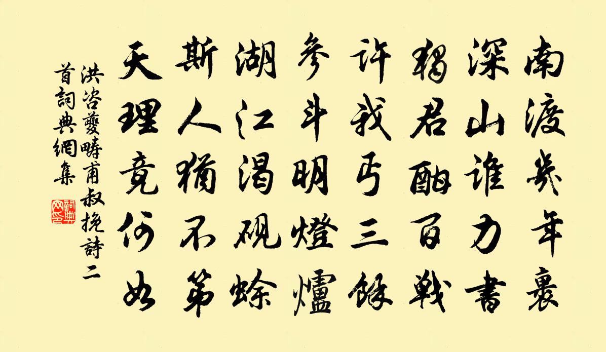 詩詞名句歷史字典書法欣賞書法字典國語詞典說文解字康熙字典古漢語字典標 題 作 者 詩 句 疇甫叔輓詩二首作者:洪咨夔 朝代:宋代疇甫叔輓詩二首原文南渡幾年裹,深山誰力書。獨君酣百戰,許我丐三餘。參斗明燈爐,湖江渴硯蜍。斯人猶不第,天理竟何如。詩詞問答問:疇甫叔輓詩二首的作者是誰?答:洪咨夔問:疇甫叔輓詩二首寫於哪個朝代?答:宋代洪咨夔疇甫叔輓詩二首書法欣賞疇甫叔輓詩二首書法作品詩詞推薦小重山 時有武林之行、值時變,故弗果,因舒頔〔元代〕笑問西風一葉舟。阿誰招我上,武林游。豈知身世兩悠悠。西湖好,孤負桂花秋。應笑樂平侯。無端千百計,一場用數珠韻贈湜長老蘇軾〔宋代〕嗣宗雖不言,叔寶猶理遣。東坡但熟睡,一夕一展轉。南遷昔虞翻,卻掃今馮衍。古佛既手提,諸方皆席捲。當年送修街坊出丐釋正覺〔宋代〕海上鰲峰裹綺霞,梅仙朋舊有生涯。清眠夢落三山月,和氣吹成一縣華。去駕風舟尋長者,來分甑飯入吾家。待君感皇恩 洛西為劉景玄賦秋蓮曲元好問〔金代〕金粉拂霓裳,凌波微步。瘦玉亭亭倚秋渚。澹香高韻,費盡一天清露。惱人容易被、西風誤。微雨岸花,斜陽汀樹點絳唇·紅杏飄香蘇軾〔宋代〕紅杏飄香,柳含煙翠拖輕縷。水邊朱戶。盡卷黃昏雨。燭影搖風,一枕傷春緒。歸不去。鳳樓何處。芳草迷歸路。滿江紅 關希顏之官徐州元好問〔金代〕元鼎詩仙,知音少、喜君留跡。還有恨、故山飛去,石城瓊壁。萬里征西天有意,四方問舍今何日。便金虬、飛馭樹陰孫岩〔宋代〕春去空山啼乳鶯,鶯邊老樹{上冖下幕}新青。一瓢掛此坐終日,即是蘇家擇勝亭。早過淇縣查慎行〔清代〕高登橋下水湯湯,朝涉河邊露氣涼。行過淇園天未曉,一痕殘月杏花香。送張王叔孝曾二首趙蕃〔宋代〕接壤渠陽郡,鹹歌別駕賢。薦書曾列上,除日聽爭傳。水疾山危處,風高木落邊。棲棲憐倦客,渺渺送歸船。寄題黃州德厚庵韓維〔宋代〕達命期順受,務德其勉修。誠已有要道,茲外非所求。使君名是庵,可謂善自謀。端居若無營,志業日以休。心端蠶婦張俞〔宋代〕昨日到城廓,歸來淚滿巾,遍身羅綺者,不是養蠶人。和韓蕺山見贈絕句杜范〔宋代〕世綱纏身未得歸,但勞清夢到林扉。高人誤作班行看,只是山中一布衣。伯兄新樓十首王柏〔宋代〕野色晴暉展畫屏,綠槐古樾兩娉婷。卻嫌一帶無情竹,只放金華半段青。傷前翰林楊左丞(一本有贊圖二字)徐夤〔唐代〕飛上鰲頭侍玉皇,三台遺耀換餘光。人間搦管窮蒼頡,地上修文待卜商。真魄肯隨金石化,真風留伴蕙蘭香。皇天菩薩蠻(次韻)舒亶〔宋代〕香波綠暖浮鸚鵡。黃金捍撥么弦語。小雨落梧桐。簾櫳殘燭紅。人生閒亦好。雙鬢催人老。莫惜醉中歸。醒來思醉靈岩禪寺王大寶〔宋代〕雁盪聞名久,靈岩舍道邊。諸峰皆列岫,一柱獨擎天。卓筆豈容有,展旗非偶然。眼前無障礙,自是洞中仙。竹庵珪和尚贊釋宗杲〔宋代〕讚嘆竹庵也是妙喜,罵詈竹庵也是妙喜,贊之罵之各有所以。贊之者為渠內衲僧正眼,罵之者為渠浸在醋瓮。或曰清泉館李新〔宋代〕曉踏高坡日始懸,清泉未見口生煙。飛鳧欲到二千里,挾策徒勞三十年。繡帶長川初背眼,雲根雙劍遠磨天。驌驦正月十五日夜,東林寺學禪,偶懷藍田楊主簿白居易〔唐代〕新年三五東林夕,星漢迢迢鍾梵遲。花縣當君行樂夜,松房是我坐禪時。忽看月滿還相憶,始嘆春來自不知。不覺秋雨嘆杜甫〔唐代〕長安布衣誰比數,反鎖衡門守環堵。老夫不出長蓬蒿,稚子無憂走風雨。雨聲颼颼催早寒,胡雁翅濕高飛難。秋來名句推薦山中無甲子,寒盡不知年。吳承恩《西遊記·第一回》 教子弟於幼時,便當有正大光明氣象;檢身心於平日,不可無憂勤惕厲工夫。王永彬《圍爐夜話·第一則》 愛人利人者,天必福之;惡人賊人者,天必禍之。墨子《墨子·04章 法儀》 吠犬雜鳴雞,燈火熒熒歸路迷。納蘭性德《南鄉子·秋暮村居》 微吟不道驚溪鳥,飛入亂雲深處啼。沈周《題畫》 小酌酒巡銷永夜,大開口笑送殘年。白居易《雪夜小飲贈夢得》 家住層城臨漢苑,心隨明月到胡天。皇甫冉《春思》 弔影分為千里雁,辭根散作九秋蓬。白居易《望月有感》 芳草無情,更在斜陽外范仲淹《蘇幕遮·懷舊》 彭蠡湖天晚,桃花水氣春。白居易《彭蠡湖晚歸》