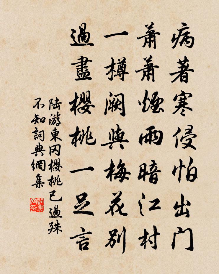 病著寒侵怕出門,蕭蕭煙雨暗江村。一樽闕與梅花別,過盡櫻桃一足言。