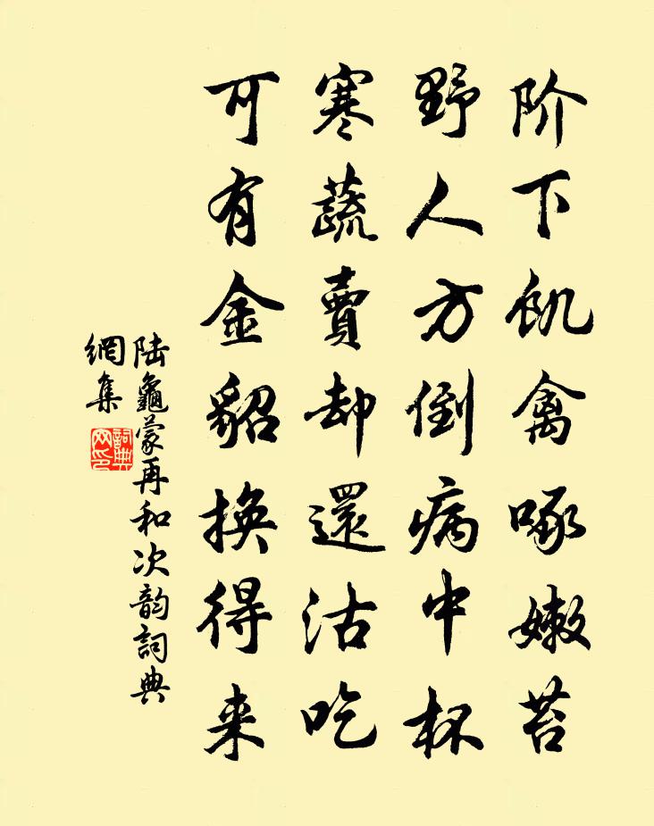 階下飢禽啄嫩苔,野人方倒病中杯。寒蔬賣卻還沽吃,可有金貂換得來。