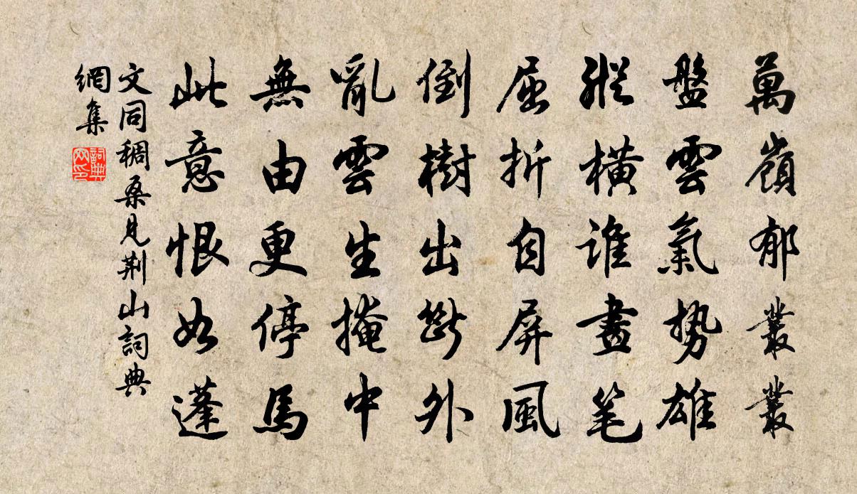 詩詞名句歷史字典書法欣賞書法字典國語詞典說文解字康熙字典古漢語字典標 題 作 者 詩 句 稠桑見荊山作者:文同 朝代:宋代稠桑見荊山原文萬嶺郁叢叢,盤雲氣勢雄。縱橫誰畫筆,屈折自屏風。倒樹出斷外,亂雲生掩中。無由更停馬,此意恨如蓬。詩詞問答問:稠桑見荊山的作者是誰?答:文同問:稠桑見荊山寫於哪個朝代?答:宋代文同稠桑見荊山書法欣賞稠桑見荊山書法作品詩詞推薦觀賈元放書跡寄其弟季承趙蕃〔宋代〕古寺荒涼客寓居,閉門百事付乘除。學知定力貧非病,詩見新功樂有餘。化鶴已空今已矣,騎鯨何處問何如。追懷小苑春望宮池柳色楊凌〔唐代〕上苑閒遊早,東風柳色輕。儲胥遙掩映,池水隔微明。春至條偏弱,寒餘葉未成。和煙變濃淡,轉日異陰晴。不獨登西樓范成大〔宋代〕少年豪氣合摧鋒,青鬢朱顏萬事慵。疇昔四愁無夢到,及時一笑有誰供。詩情飲興如雲薄,草色花光似酒醲。千里挽姚景春牟巘五〔宋代〕昔在仙都世,人稱善士門。丘山嘆華屋,風雨長孤根。鶴瘦空餘影,鴻冥更斷魂。植齋書萬卷,喜有外孫存。簡南劍倅趙用甫以夫同年二首王邁〔宋代〕岜亭邂逅又輕離,時事更翻幾局棋。遊宦明知同旦過。出山聊復救朝飢。屠龍笑我真可用,躍馬追君已落遲。木蘭溪書堂鄭耕老〔宋代〕鄭子藏書處,柴門碧樹灣。開懷溪一曲,養拙屋三間。月色斜侵竹,鳥聲迥隔山。輞川多勝趣,何似此潺湲。奉和御製九天司命降臨夏竦〔宋代〕緝熙綿宇肅邊疆,蕃祉紛綸顯阜昌。真馭告期通夢寐,嚴宸精意潔壇場。青煙漏上盈中禁,碧輦宵分下彼蒼。照地題趙少隱青白堂三首陳與義〔宋代〕使君堂上無俗客,白白青青兩勝流。添得吟詩老居士,千年一笑澤南州。丈人山詩李真〔唐代〕春凍曉韉露重,夜寒幽枕雲生。豈是與山無素,丈人著帽相迎。新晴劉攽〔宋代〕青苔滿地初晴後,綠樹無人晝夢余。惟有南風舊相識,偷開門戶又翻書。徐容齋庭下竹顧逢〔宋代〕碧玉黃金竹,求來此種難。數竿真可愛,幾度共相看。月影畫半幅,風聲雨一般。歲寒心不改,日日報平安。河南掃松訪古勝寺不遇主僧李昴英〔宋代〕主僧走城磨驢兒,廊僧閉門縮頭龜。長發行者披鶉衣,淪我苦茗行相隨。禪床破簟客自展,急呼蒼頭揮大扇。臥到春光好·花滴露歐陽炯〔五代〕花滴露,柳搖煙,艷陽天。雨霽山櫻紅欲爛,谷鶯遷。飲處交飛玉斝,游時倒把金鞭。風颭九衢榆葉動,簇青錢。初夏趙葵〔宋代〕梅子留酸濺齒牙,芭蕉分綠映窗紗。日高睡起無情思,閒香兒童捉柳花。蝶戀花 送春何可視〔元代〕金井啼鴉深院曉。*盡東風,柳絮吹難了。燕子多情相識早。杏梁依舊雙雙到。一縷沉煙簾幕悄。滿眼飛花,只覺省事陸游〔宋代〕老去終年臥草廬,事皆省盡略無餘。麈留鼠跡猶嗔拂,風作瓢聲固不除。興發舊醅何害醉,詩成拙筆亦堪書。投床重漩孩子相院丘葵〔宋代〕三年掛搭此叢林,今日重來思轉深。雨過殘陽如月色,風來老樹作潮音。青山歷歷留人住,白鷺悠悠契我心。日暮碧泉書院偶書花木所有七首胡宏〔宋代〕白沙波底石苔青,水草搖搖自在生。紅日半竿人世鬧,倚闌亭上曉風輕。十一月八日渾家避難周姓家終夜以榾柮火為御陳著〔宋代〕獸炭銀山醉夢鄉,何如榾柮地爐裝。微煙暖火權春燠,錯節盤根傲夜長。夙許孤寒陪暖席,不將光焰買烘堂。風饕趙廣安輓詩魏了翁〔宋代〕珪組曾分寄,經綸未究才。冥心求己事,真氣養玄胎。月遽中河落,蘭先白露摧。若人嗟不淑,天意謂何哉。名句推薦乘興南遊不戒嚴,九重誰省諫書函。李商隱《隋宮》 野童扶醉舞,山鳥助酣歌。孟浩然《夏日浮舟過陳大水亭 / 浮舟過滕逸人別業》 子規啼徹四更時,起視蠶稠怕葉稀。謝枋得《蠶婦吟》 相逢處,自有暗塵隨馬。周邦彥《解語花·上元》 忽見陌頭楊柳色,悔教夫婿覓封侯。王昌齡《閨怨》 春思亂,芳心碎。惠洪《千秋歲·半身屏外》 知音如不賞,歸臥故山秋。賈島《題詩後》 馬嘶人散後,秋風換、故園夢裡。吳文英《丁香結·夷則商秋日海棠》 銀箭金壺漏水多,起看秋月墜江波。李白《烏棲曲》 野徑雲俱黑,江船火獨明。杜甫《春夜喜雨》