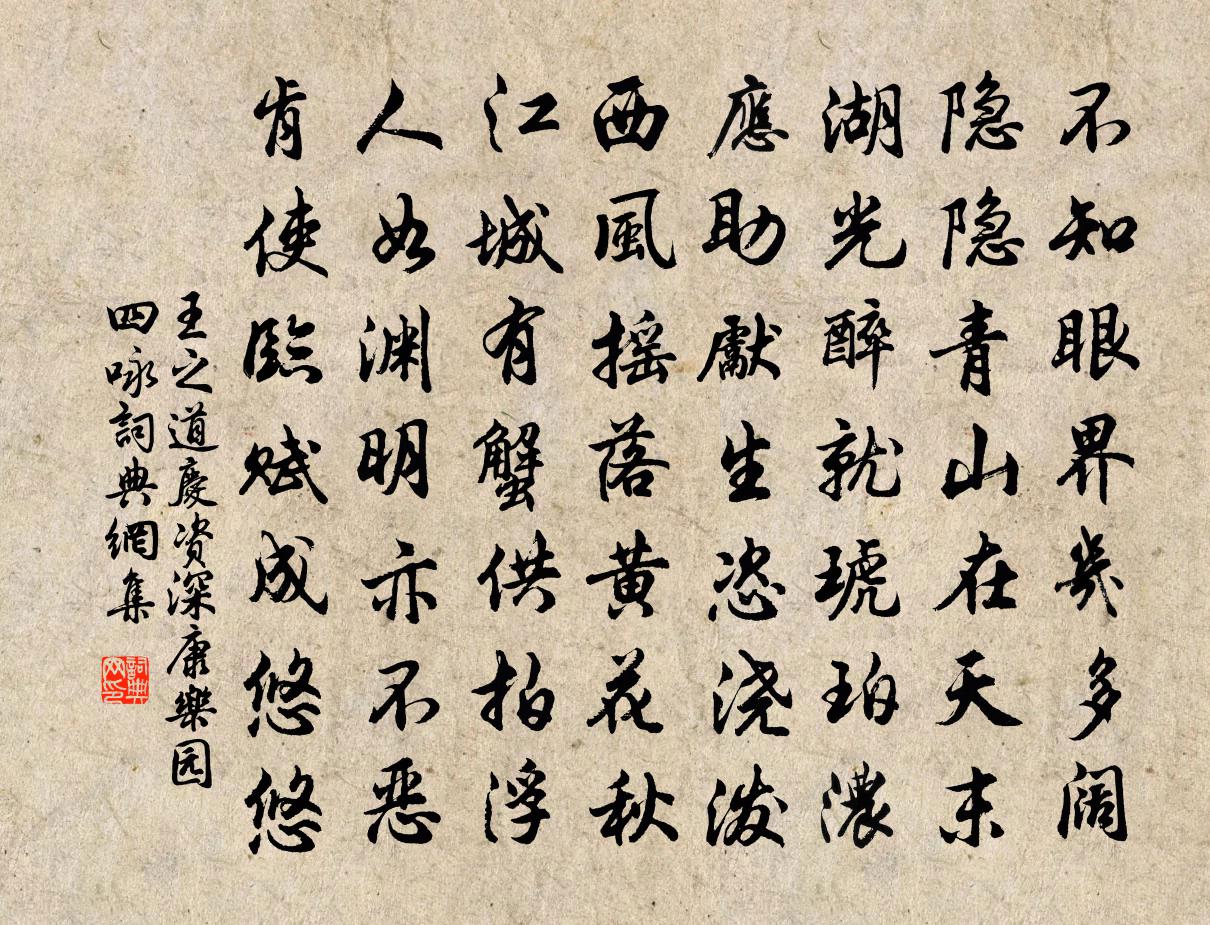 詩詞名句歷史字典書法欣賞書法字典國語詞典說文解字康熙字典古漢語字典標 題 作 者 詩 句 慶資深康樂園四詠作者:王之道 朝代:宋代慶資深康樂園四詠原文不知眼界幾多闊,隱隱青山在天末。湖光醉就琥珀濃,應助先生恣澆潑。西風搖落黃花秋,江城有蟹供拍浮。人如淵明亦不惡,肯使臨賦成悠悠。詩詞問答問:慶資深康樂園四詠的作者是誰?答:王之道問:慶資深康樂園四詠寫於哪個朝代?答:宋代王之道慶資深康樂園四詠書法欣賞慶資深康樂園四詠書法作品詩詞推薦宣妙墳院古柏衛宗武〔宋代〕古來喬木產墓宅,新甫之儔匪凡質。風梳雨沐三百年,聳壑昂霄過千尺。孤標屹立獨擎天,繁柯偏重常傾日。蒼皮和范監簿釋重顯〔宋代〕吏散簾垂思莫窮,山光溪影恣相容。誰夸靖節偏栽柳,自笑隱居高聽松。丹闕尚遙芝檢密,訟庭閒列蘚花重。岩間中秋無月項安世〔宋代〕青天碧海路悠悠,兔老蟾飢亦倦遊。鎖定玉樓雲不捲,兩街燈火作中秋。聞平湖僧紹義自嶺歸又入浙周暕〔宋代〕曾寫當年送別詩,小窗幾度夢魂飛。句從檐葡林中得,人在梅花嶺外歸。禮罷祖師無有相,遍參老宿悟來機。歸舟阮郎歸洪适〔宋代〕澄清閣下藕如船。扁舟曾採蓮。向來辛苦疊青錢。而今知幾年。人去也,客悽然。酒泉添淚泉。一杯今夜且留連。亂後書事寄同志杜荀鶴〔唐代〕九土如今盡用兵,短戈長戟困書生。思量在世頭堪白,畫度歸山計未成。皇澤正沾新將士,侯門不是舊公卿。到頭舟中感懷張嵲〔宋代〕故園此去渾如客,異縣而今卻是家。還日檐楹應著燕,來時楊柳未藏鴉。孤舟泛泛春江闊,去鳥飛飛岸橫斜。卻憶贈傳神水監陸游〔宋代〕寫照今誰下筆親,喜君分得臥雲身。口中無齒難藏老,頰上加毛自有神。誤遺汗青成國史,未妨著白號山人。它時贈太子太傅康靖李公輓歌詞二首司馬光〔宋代〕黃髮今彫喪,蒼生欲奈何。散金纏極樂,曳杖已成歌。十郡余恩在,三台故吏多。位崇仍有後,五福更為多。飲酒擬柳子厚張耒〔宋代〕澤國多水氣,日西春尚寒。窮居無樂事,且復開清樽。一酌召和氣,三觴失愁顏。百憂如崩雲,天地為我寬。采采與酒家沈生汪應辰〔宋代〕有客堂堂空兩手,無人為借太阿來。與君上抉浮雲破,放出陽光萬丈開。梅二首張嵲〔宋代〕兩京當日見初開,尚想凌雲繞故台。倚竹姱姿應小駐,高樓急管未須催。傷春遠目空千里,急景愁腸自九回。為說季百般已亥大雨文同〔宋代〕黑雲堆空天地昏,風勢猛惡山嶽撳。怪電燒爇嗔霆喧,鯨海起立星漢翻。玉竿銀索傾瓶盆,誼威怒力凌乾坤。川陸憶舊遊寄譙郡元參軍李白〔唐代〕憶昔洛陽董糟丘,為余天津橋南造酒樓。黃金白璧買歌笑,一醉累月輕王侯。海內賢豪青雲客,就中與君心莫逆。和秦壽之題靖安棲霞觀王之道〔宋代〕飛觀臨無地,江天在目中。晚霞工射日,秋水欲浮空。蓼岸深迷綠,楓林遠映紅。歸歟還可喜,千里一帆風。寄還程道益道大昆季詩卷方回〔宋代〕山水吾州稱絕奇,間生傑出當如之。不行天上五嶺路,焉識人間二程詩。無逸幼槃金華似,才翁子美歐陽知。怒流眼病二首白居易〔唐代〕散亂空中千片雪,蒙籠物上一重紗。縱逢晴景如看霧,不是春天亦見花。[以上四句,皆病眼中所見者。]僧說客重陽司空圖〔唐代〕菊開猶阻雨,蝶意切於人。亦應知暮節,不比惜殘春。菩薩蠻蔡伸〔宋代〕朝來一陣狂風雨。春光已作堂堂去。茂綠滿繁枝。青梅結子時。攀枝驚晼晚。樂事孤心眼。正是惜春歸。那堪怨別荷花鄭清之〔宋代〕一樣娉婷絕代無,水宮魚貫出瓊鋪。緣何買得凌波女,為有荷盤萬斛珠。名句推薦天子之怒,伏屍百萬,流血千里。劉向《戰國策·魏四·秦王使人謂安陵君》 秋風蕭瑟天氣涼,草木搖落露為霜,群燕辭歸鵠南翔。曹丕《燕歌行二首·其一》 淡盪春光寒食天。玉爐瀋水裊殘煙。李清照《浣溪沙·淡盪春光寒食天》 輕陰池館水平橋,一番弄雨花梢。陳子龍《畫堂春·雨中杏花》 白頭太守真愚甚,滿插茱萸望辟邪。宋祁《九日置酒》 相顧無言,惟有淚千行。蘇軾《江城子·乙卯正月二十日夜記夢》 無為其所不為,無欲其所不欲。孟子《孟子·盡心章句上·第十七節》 扁舟一棹歸何處?家在江南黃葉村。蘇軾《書李世南所畫秋景》 畫樓洗淨鴛鴦瓦,彩繩半濕鞦韆架。王元鼎《醉太平·寒食》 樹挪死,人挪活。佚名《增廣賢文·下集》