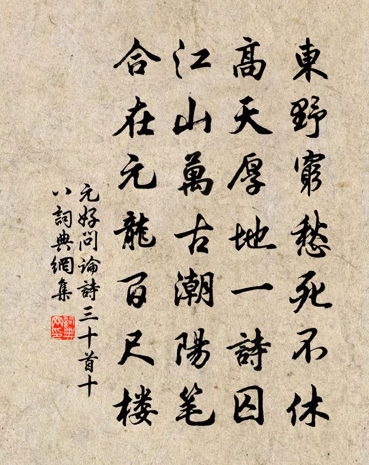 東野窮愁死不休,高天厚地一詩囚。江山萬古潮陽筆,合在元龍百尺樓。