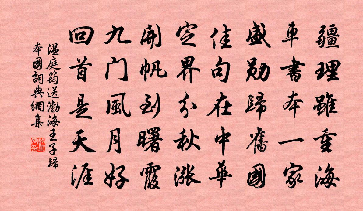 疆理雖重海,車書本一家。盛勛歸舊國,佳句在中華。