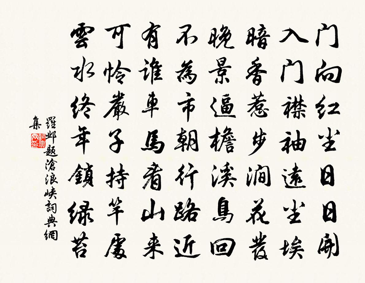 詩詞名句歷史字典書法欣賞書法字典國語詞典說文解字康熙字典古漢語字典標 題 作 者 詩 句 題滄浪峽作者:羅鄴 朝代:唐代題滄浪峽原文門向紅塵日日開,入門襟袖遠塵埃。暗香惹步澗花發,晚景逼檐溪鳥回。不為市朝行路近,有誰車馬看山來。可憐嚴子持竿處,雲水終年鎖綠苔。詩詞問答問:題滄浪峽的作者是誰?答:羅鄴問:題滄浪峽寫於哪個朝代?答:唐代問:題滄浪峽是什麼體裁?答:七律羅鄴題滄浪峽書法欣賞題滄浪峽書法作品注釋全唐詩:卷654-44詩詞推薦潞州張大宅病酒,遇江使寄上十四兄李賀〔唐代〕秋至昭關後,當知趙國寒。系書隨短羽,寫恨破長箋。病客眠清曉,疏桐墜綠鮮。城鴉啼粉堞,軍吹壓蘆煙。岸幘山縣趙希邁〔宋代〕山縣渾如野客家,游蜂數點趁朝衙。簿書押了無公事,小吏呼來掃落花。寄潘歙州伯恭梅堯臣〔宋代〕我貧 * 酒,有酒無錢沽。新安走牙兵,六月至我廬。手中持尺題,肩上擔瓦壺。高山度青天,救此愁腸枯。開之送羅機宜秩滿東歸三首項安世〔宋代〕風髯飛動儼長身,縹緲襟期不受塵。豈是契然忘應物,亦知蕞爾漫勞人。若非事業驚當仁,也合文章作近臣。此外初夏出遊陸游〔宋代〕去去沖朝霧,行行弄夕霏。移秧晴竭作,坐社醉扶歸。細草迷行徑,殘花點釣磯。牸牛將犢過,雄雉挾雌飛。野寺去杭州(送王師範)元稹〔唐代〕房杜王魏之子孫,雖及百代為清門。駿骨鳳毛真可貴,岡頭澤底促足論。去年江上識君面,愛君風貌情已敦。與君中隱堂詩蘇軾〔宋代〕都城更幾姓,到處有殘碑。古隧埋蝌蚪,崩崖露伏龜。安排壯亭榭,收拾費金貲。岣嶁何須到,韓公浪自悲。柳姜特立〔宋代〕長條攀折嘆離披,底事人間管別離。何惟龍津能御氣,建章宮裡斗腰支。紹興淳熙分命館職定撰十七首佚名〔宋代〕[姑洗為羽]霜露既降,孝思奉先。陟降上帝,禮隆九筵。有聲黍稷,有肥牲牲。神來燕娭,想像肅然。落花短吟邵雍〔宋代〕滿園桃李正離披,更被狂風作意吹。長是憂愁初謝處,卻須思念未開時。奈何紅艷易消歇,不似青陰少改移。九十滿江紅佚名〔宋代〕長風送月,近中秋、更無一點塵俗。絳闕真仙來瑞世,昨夜翔鸞飛鵠。奕世登科,諸昆競秀,名蓋天南北。持心恬梅花七律張道洽〔宋代〕花中氣節老逾剛,萬木摧殘獨自芳。天女不生凡意想,月娥偏尚澹梳妝。精神冰玉前生瘦,骨髓栴檀抵死香。說到和方薄山居滕岑〔宋代〕江村宜晚景,老眼見來稀。遠岫屏六出,殘霞錦一機。月華池上好,暑氣竹間微。不羨御風列,旬餘五日歸。順帝末京都童謠佚名〔兩漢〕直如弦,死道邊。曲如鉤,反封侯。偈頌一百零一首釋慧性〔宋代〕毒蛇頭上能揩癢,正是吾家跳灶兒。竊得這些窮伎倆,白拈手裹覓便宜。萬仞崖頭獨足立,頭長三尺知是誰。玉漏遲陳著〔宋代〕故都花冬亦好。風光可是,人間曾有。問雪樓台,花陣不教寒透。妙手攙春弄巧,喚得應、千花如繡。燈市花。笙復入廣第七十文天祥〔宋代〕東浮滄海漘,南為祝融客。漂轉混泥沙,迫此短景急。貽袁常侍詩江淹〔南北朝〕昔我別楚水。秋月麗秋天。今君客吳坂。春色縹春泉。幽冀生碧草。沅湘含翠煙。鑠鑠霞上景。懵懵雲外山。涉江諸葛廬鄭吾民〔宋代〕瑯琊一室雲,獨許老龍臥。英氣宇宙春,君臣重三顧。歲久化為墟,白日聚狐兔。惟有忠臣心,風雨不可破。即事十首劉克莊〔宋代〕香火萬家市,煙花二月時。居人空巷出,去寒海神祠。名句推薦惟有綠荷紅菡萏,卷舒開合任天真。李商隱《贈荷花》 荒村帶返照,落葉亂紛紛。劉長卿《碧澗別墅喜皇甫侍御相訪》 日出入安窮?時世不與人同。佚名《日出入》 別愁深夜雨,孤影小窗燈。陳克《臨江仙·四海十年兵不解》 蓬門未識綺羅香,擬托良媒益自傷。秦韜玉《貧女》 群燕辭歸鵠南翔,念君客游多斷腸。曹丕《燕歌行》 何處合成愁。吳文英《唐多令·惜別》 隱隱飛橋隔野煙,石磯西畔問漁船。張旭《桃花溪》 遠書歸夢兩悠悠,只有空床敵素秋。李商隱《端居》 野店桃花紅粉姿,陌頭楊柳綠菸絲。趙孟頫《東城》