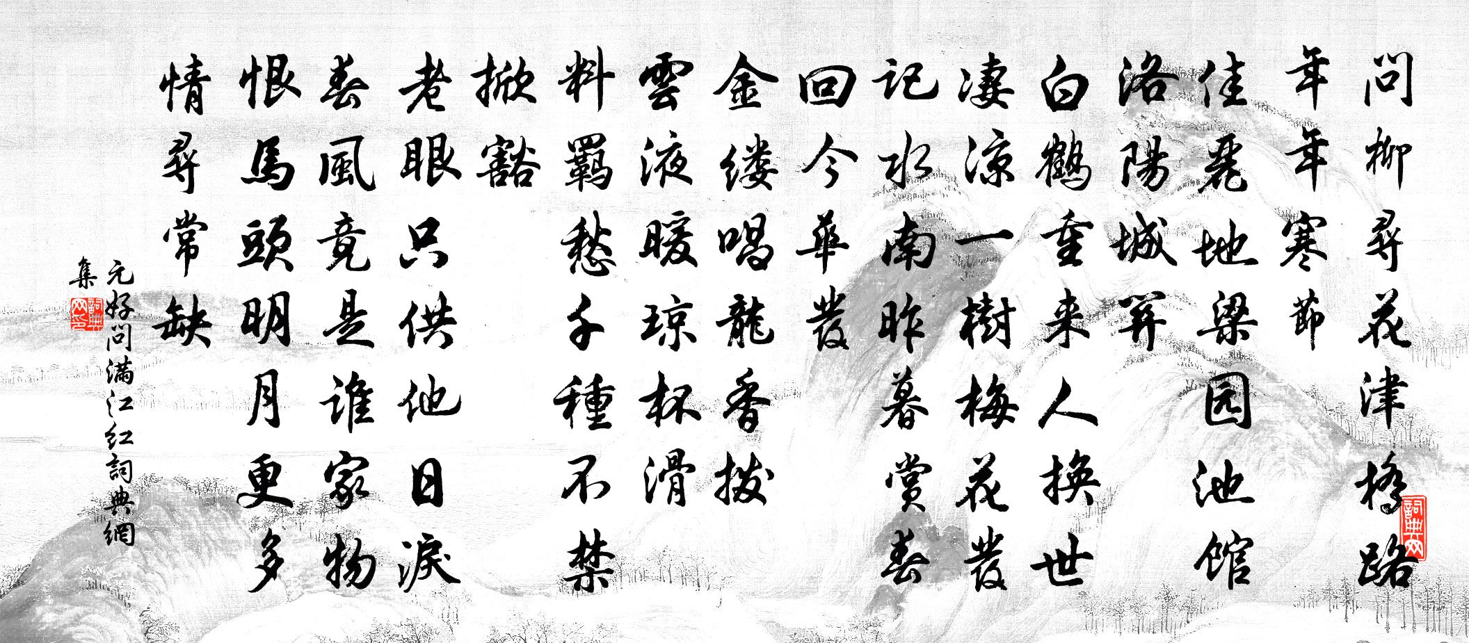 問柳尋花,津橋路、年年寒節。佳麗地、梁園池館,洛陽城關。