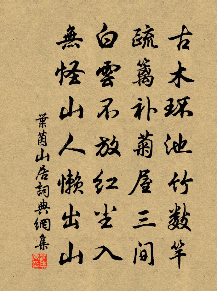 詩詞名句歷史字典書法欣賞書法字典國語詞典說文解字康熙字典古漢語字典標 題 作 者 詩 句 山居作者:葉茵 朝代:宋代山居原文古木環池竹數竿,疏籬補菊屋三間。白雲不放紅塵入,無怪山人懶出山。詩詞問答問:山居的作者是誰?答:葉茵問:山居寫於哪個朝代?答:宋代葉茵山居書法欣賞山居書法作品詩詞推薦題陳宗陽梅花全韻詩集王義山〔宋代〕騷經比興殆無遺,何獨於梅靳一辭。從遜以來方有司,到逋而後愈難詩。形容雖巧跡之淺,吟狀愈多天者漓。獨在李少卿見招代往吟邵雍〔宋代〕洛城春去會仙才,春去還驚夏卻來。微雨過牡丹初謝,輕風動芍藥才開。綠楊陰里擁樽罍,身健時康好放懷。次韻和王希知縣見贈魏野〔宋代〕從前宰字絕文詞,喜遇今來並有詩。封禪榜偏推鳳藻,陶鎔筆肯轉稽遲。訟庭任靜猶忘寐,文會雖忙不後期。莫怪和林叔己詠福壽林塘韻謝楊守舉狀陳淳〔宋代〕漳台最尊第一峰,分支福壽飛雙虹。壽山左蟠氣蔥蔥,福山右峙狀窿窿。中有洞壺出塵蹤,景物簇聚造化功。不減唐侯舉摹刊詩卷牟獻之文趙子昂字方回〔宋代〕金馬文章坡潁氏,玉堂字畫獻羲之。得兼裒施棗此刻,價倍湖州校正詩。送楊皞東歸盧綸〔唐代〕登樓掩泣話歸期,楚樹荊雲發遠思。日裡揚帆聞戍鼓,舟中酹酒見山祠。西江風浪何時盡,北客音書欲寄誰。若說奉和襲美酒中十詠酒鄉陸龜蒙〔唐代〕誰知此中路,暗出虛無際。廣莫是鄰封,華胥為附麗。三杯聞古樂,伯雅逢遺裔。自爾等榮枯,何勞問玄弟。【商調】玉抱肚佚名〔元代〕休來這裡閒嗑,俺奶奶知道罵我,逞甚么婁羅?當初有個鄭元和,早收心休戀我。徙居強至〔宋代〕人生如寄客,況復真客宦。南舟與北車,來往若征雁。殘暑赴西雍,冉冉忽秋晏。三徙乃定居,什物旋營辦。騰移送朱師古少卿歸蜀喻良能〔宋代〕西蜀多賢士,於今見奉常。十年方出守,萬里好還鄉。峽水冬無險,河圖晚有光。臨歧分手處,政爾不能忘。山居十二首淳藏王〔宋代〕自笑疏狂同拾得,誰知凝鈍若南泉。幾回食飽游山倦,只麽和衣到處眠。下第獻座主張謂閻濟美〔唐代〕謇諤王臣直,文明雅量全。望爐金自躍,應物鏡何偏。南國幽沉盡,東堂禮樂宣。轉令遊藝士,更惜至公年。芳樹游城南十六首楸樹韓愈〔唐代〕青幢紫蓋立童童,細雨浮煙作彩籠。不得畫師來貌取,定知難見一生中。浣溪沙(橄欖)吳禮之〔宋代〕南國風流是故鄉。紅監落子不因霜。於中小底最珍藏。薦酒薦茶些子澀,透心透頂十分香。可人回味越思量。對雪懷淮安郡王郊居晁說之〔宋代〕六出花開郊野興,王居不數沈休文。洞房窈窕玉簫遠,綺席徘徊瓊糈醺。大藥定應須火候,佳人可復悞行雲。自憐齊堯佐寄詩許予授代歸谷城日相過次韻王之望〔宋代〕故人千里去,猶記別時歌。衰鬢禁愁得,狂懷可奈何。南枝春意動,西望夕陽多。三徑荒涼外,高軒詎肯過。雜曲歌辭。戰勝樂佚名〔唐代〕百戰得功名,天兵意氣生。三邊永不戰,此是我皇英。次韻誠齋送仆往見石湖長句姜夔〔宋代〕客來讀賦作雌蜺,平生朱聞衡說詩。省中詩人官事了,狎鷗入夢心無機。韻高落落懸甭月,鏗鏘妙語春冰裂。一自詠史龔自珍〔清代〕金粉東南十五州,萬重恩怨屬名流。牢盆狎客操全算,團扇才人踞上游。避席畏聞文字獄,著書都為稻粱謀。田橫晚步真山民〔宋代〕未暝先啼草際蛩,石橋暗度晚花風。歸鴉不帶殘陽老,留得林梢一抹紅。名句推薦食者,國之寶也;兵者,國之爪也墨子《墨子·05章 七患》 迢遞路回清野,人語漸無聞,空帶愁歸周邦彥《夜飛鵲·河橋送人處》 親賢臣,遠小人。諸葛亮《出師表/前出師表》 寂寞柴門村落里,也教插柳記年華。趙元鎮《寒食書事》 山不在高,有仙則名水不在深,有龍則靈劉禹錫《陋室銘》 小立紅橋柳半垂,越羅裙颺縷金衣。納蘭性德《山花子·小立紅橋柳半垂》 魚網之設,鴻則罹其中;螳螂之貪,雀又乘其後。洪應明《菜根譚·概論》 江山易改,稟性難移。馮夢龍《醒世恆言·卷三十五》 孤花片葉,斷送清秋節。納蘭性德《清平樂·孤花片葉》 白露橫江,水光接天。蘇軾《前赤壁賦》