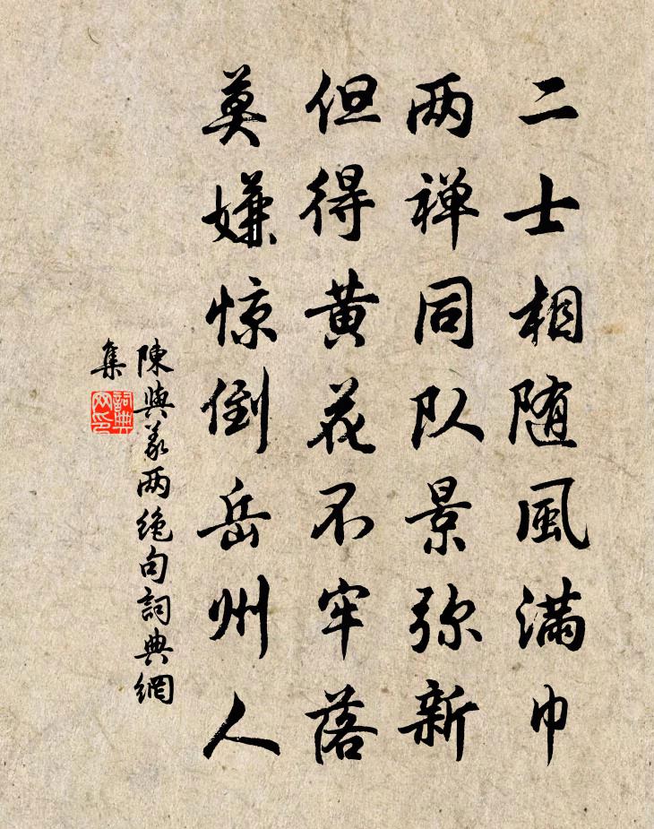 二士相隨風滿巾,兩禪同隊景彌新。但得黃花不牢落,莫嫌驚倒岳州人。