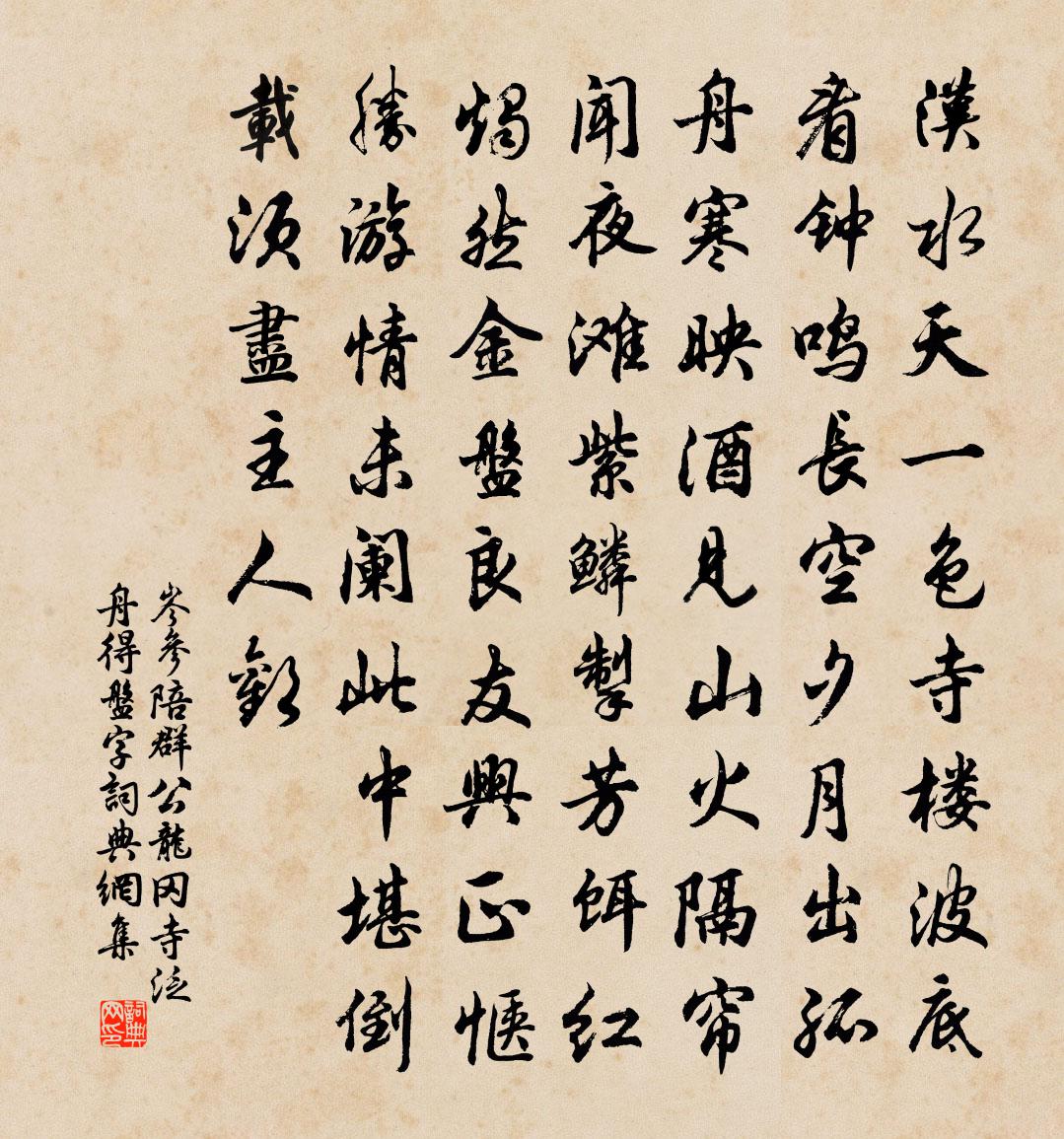漢水天一色,寺樓波底看。鐘鳴長空夕,月出孤舟寒。