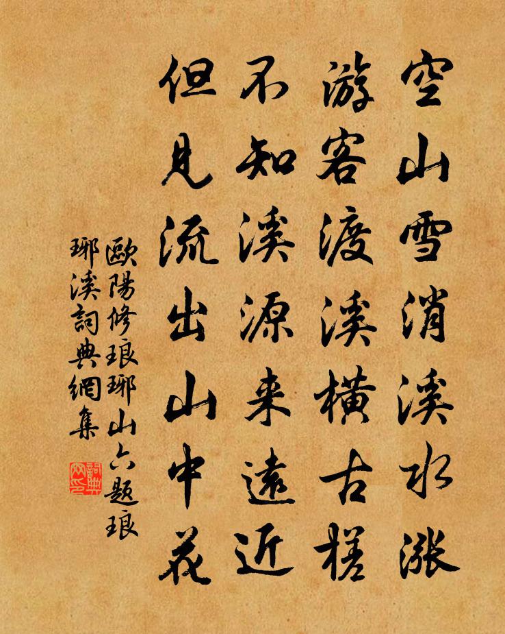 空山雪消溪水漲,遊客渡溪橫古槎。不知溪源來遠近,但見流出山中花。