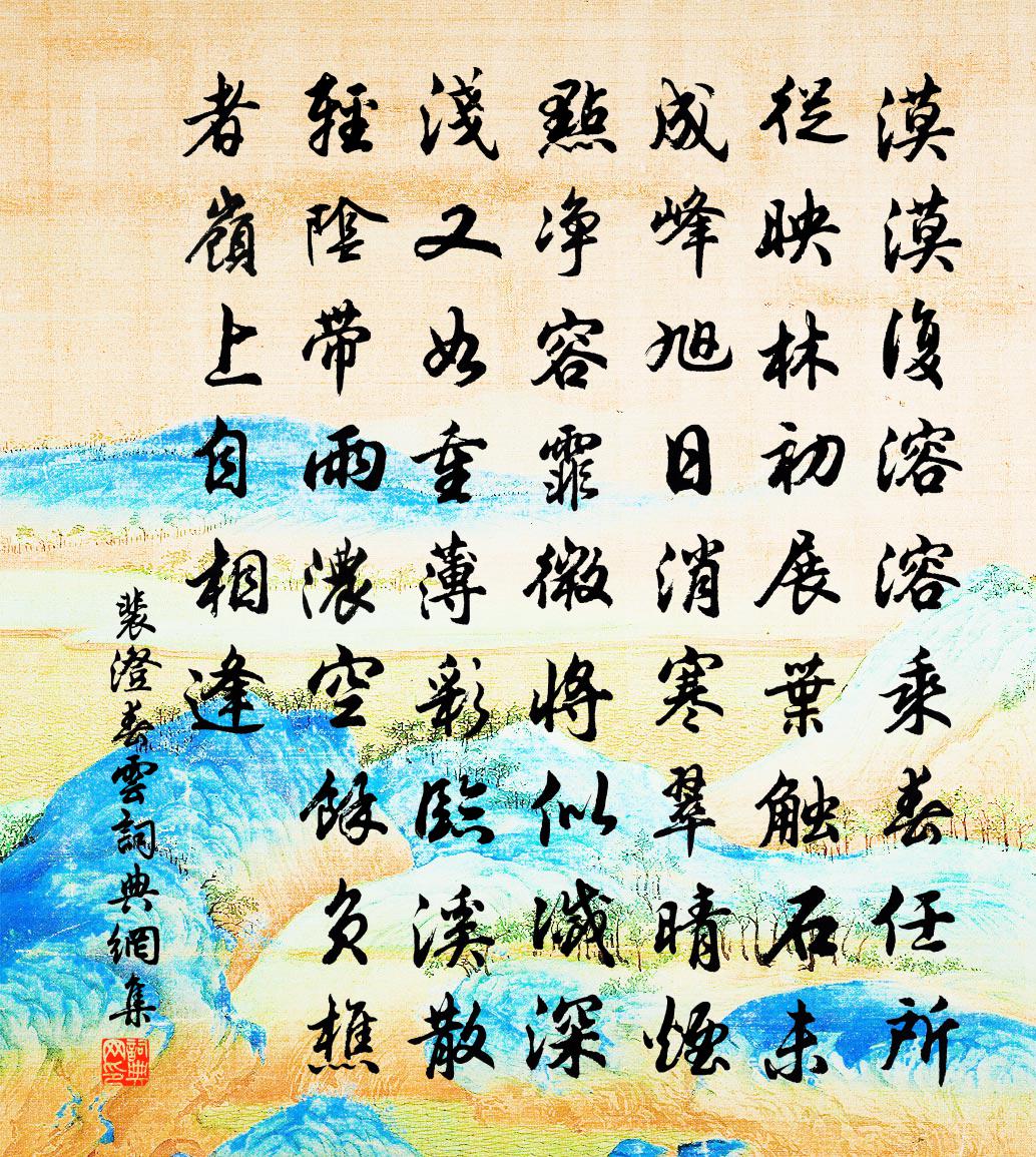 詩詞名句歷史字典書法欣賞書法字典國語詞典說文解字康熙字典古漢語字典標 題 作 者 詩 句 春雲作者:裴澄 朝代:唐代春雲原文漠漠復溶溶,乘春任所從。映林初展葉,觸石未成峰。旭日消寒翠,晴煙點淨容。霏微將似滅,深淺又如重。薄彩臨溪散,輕陰帶雨濃。空餘負樵者,嶺上自相逢。詩詞問答問:春雲的作者是誰?答:裴澄問:春雲寫於哪個朝代?答:唐代問:春雲是什麼體裁?答:五排裴澄春雲書法欣賞春雲書法作品注釋全唐詩:卷466-58詩詞推薦祝遊子泉劉叔通二家孤寡趙蕃〔宋代〕貧賤可余置,死生無彼拋。遺書曾不博,斗粟與枝巢。涼風仇遠〔宋代〕涼風撼庭竹,起舞如翠蛟。乳葉打窗來,卷盡破屋茅。飛雲行太空,萬竅爭怒號。煩暑一掃淨,解我心鬱陶。浣溪沙(壬寅五月西湖)蔡伸〔宋代〕雙佩雷文拂手香。青紗衫子淡梳妝。冰姿綽約自生涼。虛掉玉釵驚翡翠,緩移蘭棹趁鴛鴦。鬢鬟風亂綠雲長。以人生五馬貴莫受侵為韻送胡獻叔守邵陽方岳〔宋代〕吾道一而已,惟誠一之至。毋或參以三,亦勿貳以二。寄古上人若之用東坡徑山韻王之道〔宋代〕寄語山中好看客,待與諸郎醉秋色。諸郎作詩學東坡,筆力駸駸清到骨。由來習氣相薰蒸,千古勾吳張季鷹。鱸魚松丁謂〔宋代〕君子憐無改,詩人賦有喬。輕舟隨檜楫,深澗映山苗。偃蓋秦官遠,凌霜夏社遙。鶴棲知得地,柏悅見乾霄。過耶溪朱慶餘〔唐代〕春溪繚繞出無窮,兩岸桃花正好風。恰是扁舟堪入處,鴛鴦飛起碧流中。謝湖山居士示和陶詩樓鑰〔宋代〕淵明千載人,同節仰孤峭。豈惟辭督郵,蓮社不得召。書不求甚解,眼高得玄要。詩亦本無意,但寫胸中妙。齊梁和張周玉峨眉山行吳泳〔宋代〕搘筇更上最高峰,浮出修眉翠掃空。雪汗半消岩路口,苔衣倒掛樹林中。異禽語已非人世,香草名應系國風。晚色宮怨任翻〔唐代〕淚乾紅落臉,心盡白垂頭。自此方知怨,從來豈信愁。和顏長官百詠山居朱繼芳〔宋代〕擁樹溪雲迷近遠,低檐山果亂紅青。莫言身外都無事,早晚焚香看道經。檉桐二首張明中〔宋代〕石榴安敢擬檉桐,借問司花也不中。鶴頂丹砂猩血服,試評卻有此來紅。題君山雍陶〔唐代〕風波不動影沈沈,翠色全微碧色深。應是水仙梳洗處,一螺青黛鏡中心。風折松聯句蘇軾〔宋代〕龍枝已逐風雷變,減卻虛窗半日涼。天愛禪心圓且潔,故添明月伴清光。襲美以紫石硯見贈以詩迎之陸龜蒙〔唐代〕霞骨堅來玉自愁,琢成飛燕古釵頭。澄沙脆弱聞應伏,青鐵沈埋見亦羞。最稱風亭批碧簡,好將雲竇漬寒流。君能和孫端叟蠶首十五首其六桑鉤梅堯臣〔宋代〕長鉤扳桑枝,短鉤掛桑籠。南陌露氣寒,東方日光動。少婦首且笄, * 角已{上髟下總}。競以采葉歸,曾非事子產告范宣子輕幣左丘明〔先秦〕范宣子為政,諸侯之幣重,鄭人病之。 二月,鄭伯如晉。子產寓書於子西,以告宣子,曰:“子為晉國,四鄰彗星戴埴〔宋代〕紹定壬辰閏九月,已酉之夜彗星出。清台奏御,正衙避席。太官減膳羞,瞽宗徹音樂。雞竿肆眚出囚系,龍扆責躬代答楊億〔宋代〕徵車苦迢遞,節物感愁辛。已入授衣月,那經落帽辰。金樽難獨酌,寶瑟任生塵。把菊流雙淚,誰知憶遠人。題明遠軒李新〔宋代〕聊能半日止游韁,拂拂塵裾未滌黃。山掩豀光龍脊斷,谷傳天籟虎風涼。亂雲過眼不妨好,細逕入村何限長。獨酌名句推薦樓角初銷一縷霞,淡黃楊柳暗棲鴉賀鑄《減字浣溪沙·樓角初銷一縷霞》 今日漢宮人,明朝胡地妾。李白《王昭君二首》 想見廣寒宮殿,正雲梳風掠。辛棄疾《好事近·中秋席上和王路鈐》 流水便隨春遠,行雲終與誰同。晏幾道《臨江仙·鬥草階前初見》 孤客傷逝湍,徒旅苦奔峭。謝靈運《七里瀨》 落月滿屋樑,猶疑照顏色。杜甫《夢李白二首·其一》 曲岸持觴,垂楊系馬,此地曾經別。辛棄疾《念奴嬌·書東流村壁》 黑雲壓城城欲摧,甲光向日金鱗開。李賀《雁門太守行》 雨過橫塘水滿堤,亂山高下路東西。曾鞏《城南·雨過橫塘水滿堤》 當君懷歸日,是妾斷腸時。李白《春思》