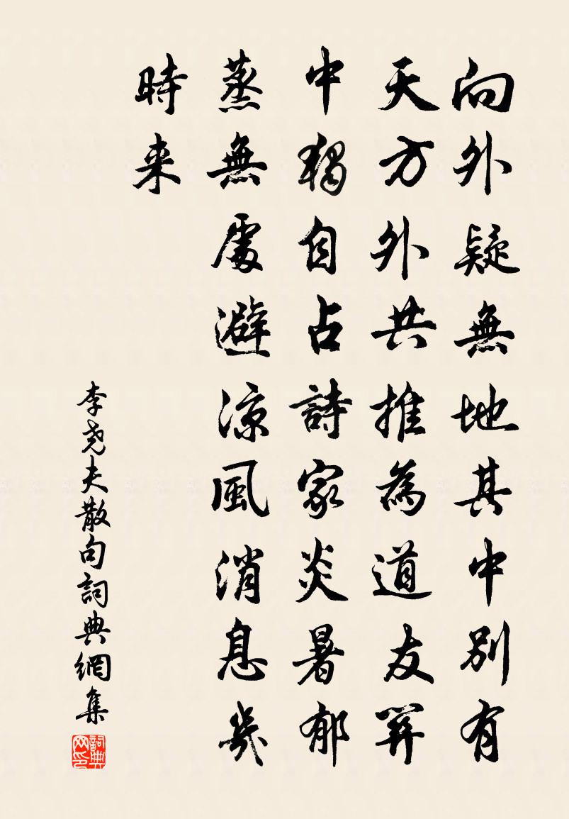 詩詞名句歷史字典書法欣賞書法字典國語詞典說文解字康熙字典古漢語字典標 題 作 者 詩 句 句作者:李堯夫 朝代:唐代句原文向外疑無地,其中別有天。方外共推為道友,關中獨自占詩家。炎暑鬱蒸無處避,涼風訊息幾時來。詩詞問答問:句的作者是誰?答:李堯夫問:句寫於哪個朝代?答:唐代李堯夫句書法欣賞句書法作品注釋第一句、見《大內盆池》;第二句見《贈滕郎中》;第三句見《古今詩話》詩詞推薦巫山高二首(一作宋之問詩)沈佺期〔唐代〕巫山峰十二,合沓隱昭回。俯眺琵琶峽,平看雲雨台。古槎天外倚,瀑水日邊來。何忍猿啼夜,荊王枕席開。神女寄江州趙倅季茂二首時過溧陽舟中正遇順風張岳珂〔宋代〕庾公樓上憑欄時,一片歸雲費夢思。鄉國情懷應念我,江山風月定分誰。青衫休為墓陵濕,紫氣先尋牛渚期。好是曉別白居易〔唐代〕曉鼓聲已半,離筵坐難久。請君斷腸歌,送我和淚酒。月落欲明前,馬嘶初別後。浩浩暗塵中,何由見回首?石佛清長老請贊釋普濟〔宋代〕東山毛之源,東毛磵之淵毛。截流毛之機,驗人之眼。揚清激濁,地覆天翻。六代祖師,豎毛呵手。三生大像,頓青梅引佚名〔宋代〕我笑迷人,不信乖劣。痴心戀,貪名利縈系。落魄狂游,每將術藝養道,用安身己。道知和息。藜杖藥瓢,蓑衣蠻偈傾一百六十九首釋智朋〔宋代〕海底蓬塵起,千江水逆流。維摩丈室,有三萬二千獅子座,收。正樂府十篇賤貢士皮日休〔唐代〕南越貢珠璣,西蜀進羅綺。到京未晨旦,一一見天子。如何賢與俊,為貢賤如此。所知不可求,敢望前席事。吾聞曹廷輔輓詞二首林亦之〔宋代〕綠水白鷗三月天,哀簫長短使人憐。草鞋踏雨同歸去,此事如今十五年。江西第六十九文天祥〔宋代〕旄頭初俶擾,義士皆痛憤。乾坤空崢嶸,向者留遺恨。和洪秀才八首胡寅〔宋代〕聞說頻頻黨,深遵秩秩猷。題評歸月旦,裁鑒比陽秋。賦謝雕蟲手,詩通美盼眸。看君多直諒,端似漢朱游。裴庶子除太僕卿因賀羅隱〔唐代〕楚珪班序未為輕,莫惜良途副聖明。宮省舊推皇甫謐,寺曹今得夏侯嬰。秩隨科第臨時貴,官逐簪裾到處清。應笑滿江紅 贈魏二梁啓超〔清代〕如此江山,送多少英雄去了。又爾我蹋塵獨漉,睨天長嘯。炯炯一空餘子目,便便不合時宜肚。向人間一笑醉相逢木蘭花李涉〔唐代〕碧落真人著紫衣,始堪相併木蘭枝。今朝繞郭花看遍,儘是深村田舍兒。集賢張相國誕辰頌德十韻宋庠〔宋代〕顥印傳侯刻,圯編翊帝圖。還生王國佐,來煥泰階符。瑞紱雙嬰觡,祥蓬四射弧。從龍參震邸,附鳳入星樞。嗣正南園花竹邵雍〔宋代〕花行竹逕緊想挨,每日須行四五回。因把花行侵竹種,且園竹逕對花開。花香遠遠隨衣袂,竹影重重上酒杯。誰道嘆世之二唐寅〔明代〕萬事由天莫強求,何須苦苦用機謀?飽三餐飯常知足,得一帆風便可收。生事事生何日了,害人人害幾時休。冤家文公講堂岑參〔唐代〕文公不可見,空使蜀人傳。講席何時散,高台豈復全。豐碑文字滅,冥漠不知年。逍遙詠宋太宗〔宋代〕虛無知大道,極意思悠然。摩日雲中雁,瀟湘水似天。孤峰高遠近,寶月瑩團圓。信解明開悟,青霄在目前。秋曉五首章甫〔宋代〕曉色殊未分,江風飄然起。開窗看芭蕉,露重葉如洗。春來頻與李二賓客郭外同游因贈長句白居易〔唐代〕風光引步酒開顏,送老消春嵩洛間。朝踏落花相伴出,暮隨飛鳥一時還。我為病叟誠宜退,君是才臣豈合閒。可惜名句推薦萬馬不嘶,一聲寒角,令行柳營。劉過《沁園春·張路分秋閱》 無可奈何花落去,似曾相識燕歸來。晏殊《浣溪沙·一曲新詞酒一杯》 朝聞道,夕死可矣。孔子弟子《論語·里仁篇》 不戚戚於貧賤,不汲汲於富貴。陶淵明《五柳先生傳》 築室兮水中,葺之兮荷蓋;屈原《九歌·湘夫人》 人逢喜事精神爽,月到中秋分外明。馮夢龍《醒世恆言·卷十八》 清明上巳西湖好,滿目繁華。歐陽修《採桑子·清明上巳西湖好》 鄉心新歲切,天畔獨潸然。劉長卿《新年作》 行出於己,名生於人。佚名《逸周書·卷六·諡法解》 花過雨。又是一番紅素。燕子歸來愁不語。李好古《謁金門·花過雨》