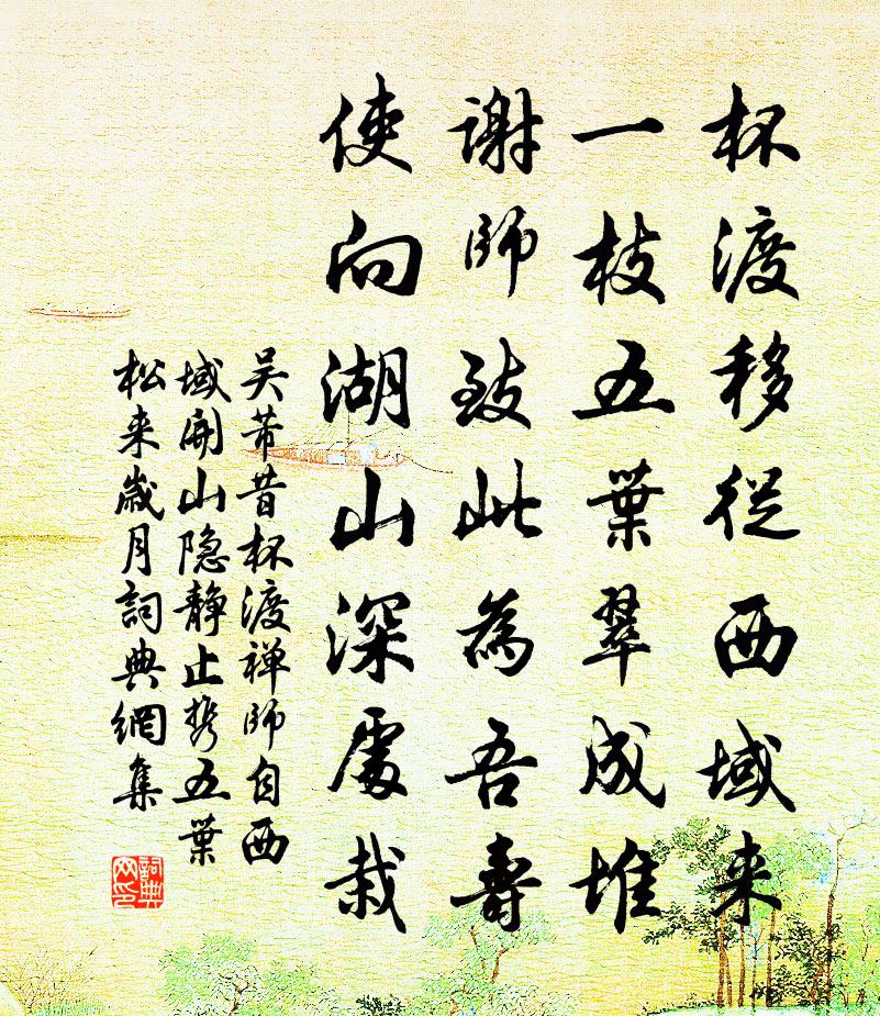 - 日落君山雲氣,春到沅湘草木,遠思渺難收。