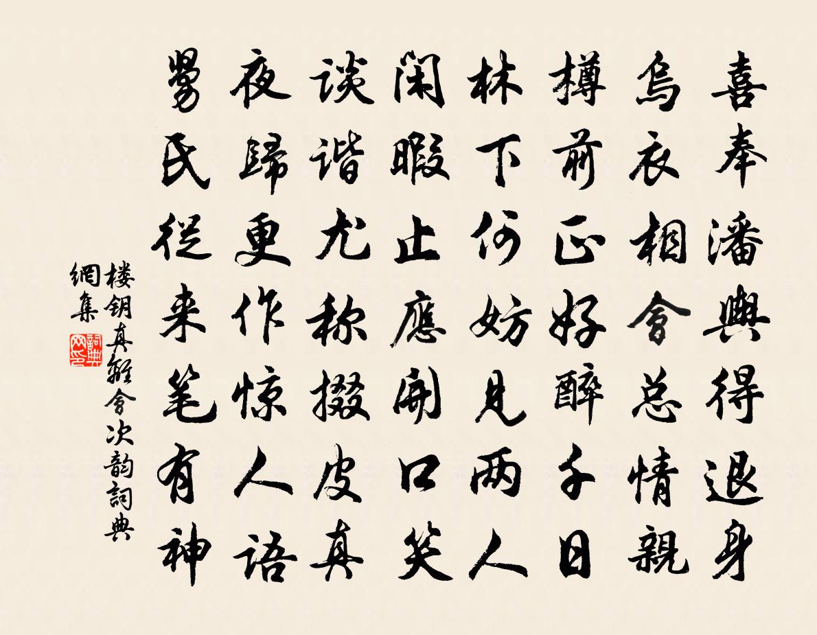 詩詞名句歷史字典書法欣賞書法字典國語詞典說文解字康熙字典古漢語字典標 題 作 者 詩 句 真離會次韻作者:樓鑰 朝代:宋代真離會次韻原文喜奉潘輿得退身,烏衣相會總情親。樽前正好醉千日,林下何妨見兩人。閒暇止應開口笑,談諧尤稱掇皮真。夜歸更作驚人語,舅氏從來筆有神。詩詞問答問:真離會次韻的作者是誰?答:樓鑰問:真離會次韻寫於哪個朝代?答:宋代樓鑰真離會次韻書法欣賞真離會次韻書法作品詩詞推薦高士詠韓康吳筠〔唐代〕伯休抱遐心,隱括自為美。賣藥不二價,有名反深恥。安能受玄纁,秉願終素履。逃遁從所尚,蕭蕭絕塵軌。失調名佚名〔宋代〕燈球兒小,鬧蛾兒顫。又何須頭面。桂花五律譚嗣同〔清代〕湘上野煙輕,芙蓉落晚晴。桂花秋一苑,涼露夜三更。香滿隨雲散,人歸趁月明。誰知小山意,惆悵遍江城!小重山·花院深疑無路通賀鑄〔宋代〕花院深疑無路通。碧紗窗影下,玉芙蓉。當時偏恨五更鐘。分攜處,斜月小簾櫳。楚夢冷沈蹤。一雙金縷枕,半床江上阻風宋祁〔宋代〕百尺危檣倚曙空,古祠簫鼓隔丹楓。誰將一隻仙人箭,換作樵溪旦暮風。就野人買兔梅堯臣〔宋代〕霜濃草白兔初肥,蒼鶻調拳獵犬攜。剩付錢刀買庖餗,不須緣徑更求蹄。北窗陸游〔宋代〕北窗無俗物,三伏有餘涼。玉麈消長日,風漪可一床。盞分新作茗,爐撥欲殘香。卻岸紗巾去,翛然野水傍。喜得當塗葉學士手筆宋祁〔宋代〕隨岸秋風慘別袪,崢嶸歲晏得雙魚。定因南浦傳能賦,卻到西河問索居。夜月連江金液動,曉山圍國鈿螺疏。端倪送妻兄任以道赴房州竹山尉四首項安世〔宋代〕淒涼怕折腰,彼蓋村夫子。誰能九層以,不用累士起。旌旗野色中,鉦鼓霜風裡。古來丈夫事,勿嘆百僚底。賀齊都官宋祁〔宋代〕十行泥檢潤瓊芝,序轉仙曹漢省圍。月隱偃波三署筆,光添侍史五時衣。星躔入夜哀烏動,軍蓋迎晨雊雉飛。幾日西園韓維〔宋代〕西園日修整,竹樹相綴屬。春華猶未敷,氣象郁函蓄。密雨錯遠林,輕寒傍脩竹。於此隱几坐,物我同一目。弟妹山舍小軒有石竹二叢鬨然秀髮因成二章林逋〔宋代〕青簾有酒不妨賒,素壁無詩未足夸。所重晚芳猶在日,可關秋色易為花。深枝苒苒妝溪翠,碎片英英剪海霞。莫管方廣聖燈次敬夫韻林用中〔宋代〕燈長三世火長明,千里遺蹤子細尋。自是神光能永夜,不妨金偈更降心。壺中天慢張掄〔宋代〕洞天深處賞嬌紅,輕玉高張雲幕。國艷天香相競秀,瓊苑風光如昨。露洗妖妍,風傳馥郁,雲雨巫山約。春濃如酒首夏吳沆〔宋代〕積雨有餘潤,游雲無定陰。燕飛華屋靜,鶯囀碧窗深。王秘監令人輓詩葉適〔宋代〕頗憶朝除禫,俄驚夜徹帷。自堪從子住,何用與夫歸。起隧新藤茁,重轝宿菵排。通家只今盡,老淚逐風揮。山中文天祥〔宋代〕滄洲棹影荻花涼,欸乃一聲江水長。賴有蓴風堪斫膾,便無花月亦飛觴。山中世已驚東晉,席上人多賦晚唐。何處句李師中〔宋代〕門掩蒼苔柳半遮,春深庭院日初斜。挽周伯弜朱繼芳〔宋代〕今日忽不樂,散行湖水濱。有懷天下士,遽作夢中人。醉語驚天地,狂歌哭鬼神。九原如可贖,那不百其身。畫中眾仙歌白玉蟾〔宋代〕不與飲盡孫權酒,正欲畫屏筆脫手。一點凝墨狀生蠅,剔之不飛心始驚。獻之興來拈起筆,筆如解飛自鉤掣。戲染名句推薦何時一樽酒,重與細論文。杜甫《春日憶李白》 莫愁前路無知己,天下誰人不識君。高適《別董大二首》 認得醉翁語,山色有無中蘇軾《水調歌頭·黃州快哉亭贈張偓佺》 不入虎穴,焉得虎子。程登吉《幼學瓊林·卷四·鳥獸》 天下雖安,忘戰必危。姜子牙《司馬法·仁本》 製法而自犯之,何以帥下?陳壽《三國志·魏書·武帝紀》 使君宏放,談笑洗盡古今愁。陸游《水調歌頭·多景樓》 記得綠羅裙,處處憐芳草。賀鑄《綠羅裙·東風柳陌長》 塞上秋風鼓角,城頭落日旌旗。元好問《江月晃重山·初到嵩山時作》 紛紛世事無窮盡,天數茫茫不可逃。羅貫中《三國演義·第一百二十回》
