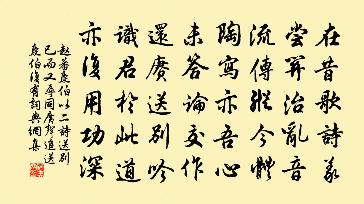 詩詞名句歷史字典書法欣賞書法字典國語詞典說文解字康熙字典古漢語字典標 題 作 者 詩 句 慶伯以二詩送別已而又辱同廣聲追送慶伯復有作者:趙蕃 朝代:宋代原文在昔歌詩義,嘗關治亂音。流傳縱今體,陶寫亦吾心。未答論交作,還賡送別吟。識君於此道,亦復用功深。詩詞問答問:《慶伯以二詩送別已而又辱同廣聲追送慶伯復有》的作者是誰?答:趙蕃問:該詩寫於哪個朝代?答:宋代書法欣賞慶伯以二詩送別已而又辱同廣聲追送慶伯復有書法作品詩文賞析【原題】:慶伯以二詩送別已而又辱同廣聲追送慶伯復有所賦並次韻為答三首詩詞推薦寒食雨三首仇遠〔宋代〕山色空濛寒食雨,楊花零亂溧陽樓。老人豈有傷春事,酒後情懷似感秋。借虛谷太博狂吟十詩韻書懷並呈太博楊公遠〔宋代〕竹馬才拋又是翁,年來自覺轉疎慵。欲開竹下三三逕,還借毫端六六峰。處世竟無非理事,對人那有可慚容。浮沈與客送仲白葬回登石室劉克莊〔宋代〕絕頂荒寒斷客過,偶攜之子共捫蘿。縱觀天外皆鯨浸,下視城中等蟻窠。悼友孤懷方濩落,逢僧逆境暫銷磨。夜歸正月十四日大雪上信國公冢趙文〔宋代〕氣概堂堂壓九州,誰知零落此荒丘。卻煩野老編松葉,怕有牛羊上冢頭。雙溪種花王炎〔宋代〕雙溪漸有雜花開,每日扶筇到一回。勝似名園空鎖閉,主人至老不歸來。寄程給事王安石〔宋代〕憶昔都門手一攜,春禽初向薴蘿啼。夢回金殿風光別,吟到銀河月影低。舞急錦腰迎十八,酒酣金盞照東西。何時昨晚又捧五章盡含六義意轉新而韻皆緊才益贍李至〔宋代〕老去襟懷強坦如,故園迢遞戰爭余。休思已往曾經事,但訪從來未見書。止水寸心常淡靜,亂蓬雙鬢任蕭疏。會當雨飲無餚董嗣杲〔宋代〕昉見歲律更,不覺春醉厭。都來九十日,多被風雨占。鳴鳩肯停喚,誰測陰晴驗。欲問陌上花,花枝無絕艷。東風擬意李商隱〔唐代〕悵望逢張女,遲回送阿侯。空看小垂手,忍問大刀頭。妙選茱萸帳,平居翡翠樓。雲屏不取暖,月扇未遮羞。上掌書和靖故居張煒〔宋代〕童鶴飢癯古屋低,孤山猶憶數聯詩。先生更有清高處,未必梅花盡得知。奉送遊子正監簿解嘉定郡紱赴利漕詩度正〔宋代〕君王神武念京都,關洛規恢入廟謨。渭水新屯觀定勢,木牛成算付真儒。馳驅莫惜銷人髀,矍鑠還堪發壯圖。會看百字令/念奴嬌劉辰翁〔宋代〕少微星小。撫劍氣橫空,隱見林杪。夜來宋都如雨,更長得奇哉懰皎。與汝三齡,覽余初度,一語占先兆。暮年喜寓齋史堯弼〔宋代〕莊生十九言,妙處如筏喻。我欲問公居,公心無所住。垂絲釣(戊戌迓客。自入淮南,多所感愴作)丘崈〔宋代〕夕烽戍鼓。悲涼江岸淮浦。霧隱孤城,水荒沙聚。人共語。盡向來勝處。謾懷古。問柳津花渡。露橋夜月, * 人酬羅季康二首廖行之〔宋代〕自憐疎拙百奚宜,不省胡顏可媚時。馳騖功名非我事,歡娛菽水只心知。風姿故陋難施粉,面目堪憎正類倛。惟有滿江紅佚名〔宋代〕蓓蕾江梅,正好是、小春時候。螺浦下、乾坤間氣,山川鍾秀。作起風流今幾代,誠齋心印親傳授。更修名、大節公子重耳對秦客佚名〔先秦〕晉獻公之喪,秦穆公使人吊公子重耳,且曰:“寡人聞之,亡國恆於斯,得國恆於斯。雖吾子儼然在憂服之中,喪郡樓龔璛〔元代〕久客有遠思,肩輿登郡樓。聊為避暑飲,更學御風游。疊翠城南面,雙虹水北流。流將五湖去,葉葉采蘋舟。正宮柳永〔宋代〕●爪茉莉秋夜每到秋來,轉添甚況味。金風動、冷清清地。殘蟬噪晚,其聒得、人心欲碎,更休道、宋玉多悲,石又和晦翁棹歌方岳〔宋代〕燒藥爐存草亦靈,煮茶灶冷水猶清。老仙一去無訊息,只有飛泉落佩聲。名句推薦汗血每隨邊地苦,蹄傷不憚隴陰寒。萬楚《驄馬》 話須通俗方傳遠,語必關風始動人。馮夢龍《警世通言·卷十二》 龜靈未免刳腸患,馬失應無折足憂。白居易《放言五首·其二》 曉月墜,宿雲微,無語枕頻欹。李煜《喜遷鶯·曉月墜》 山亭水榭秋方半。鳳幃寂寞無人伴。朱淑真《菩薩蠻·山亭水榭秋方半》 苦雨思白日,浮云何由卷。李白《玉真公主別館苦雨贈衛尉張卿二首》 君子不器。孔子弟子《論語·為政篇》 衙齋臥聽蕭蕭竹,疑是民間疾苦聲。鄭燮《濰縣署中畫竹呈年伯包大中丞括 / 墨竹圖題詩》 摩頂放踵利天下,為之。孟子《孟子·盡心章句上·第二十六節》 別浦今朝暗,羅帷午夜愁李賀《七夕》