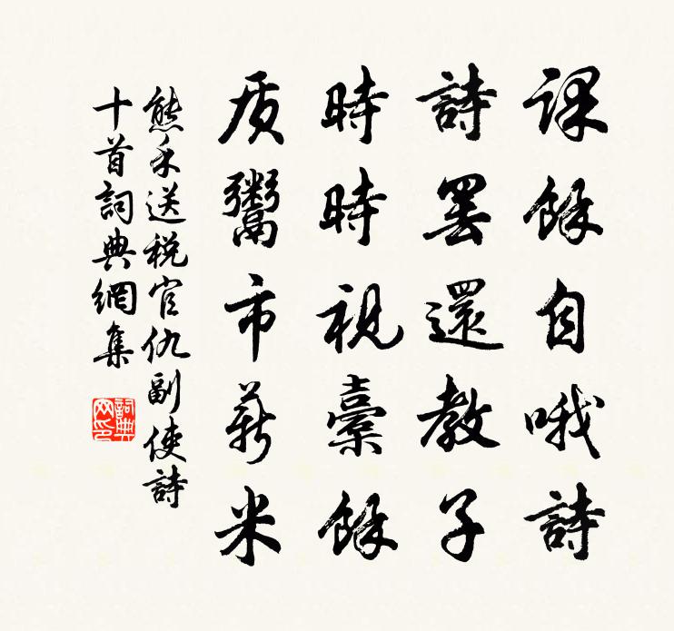 詩詞名句歷史字典書法欣賞書法字典國語詞典說文解字康熙字典古漢語字典標 題 作 者 詩 句 送稅官仇副使詩十首作者:熊禾 朝代:宋代送稅官仇副使詩十首原文課餘自喔詩,詩罷還教子。時時視橐余,質鬻市薪米。詩詞問答問:送稅官仇副使詩十首的作者是誰?答:熊禾問:送稅官仇副使詩十首寫於哪個朝代?答:宋代熊禾送稅官仇副使詩十首書法欣賞送稅官仇副使詩十首書法作品詩詞推薦頌古十首釋行鞏〔宋代〕恰好被人借去了,莫言鄰舍不通容。團圞無縫難安筆,只抹煙雲一兩重。幽居樂施肩吾〔唐代〕萬籟不在耳,寂寥心境清。無妨數莖竹,時有蕭蕭聲。為人妾怨詩何遜〔南北朝〕燕戲還檐際。花飛落枕前。寸心君不見。拭淚坐調弦。游西山鄭剛中〔宋代〕我來西江邊,兀坐閱寒暑。水外有佳處,欲往興輒阻。昨朝主人閒,聯轡臨洲渚。開船入江雲,絕渡不須櫓。杖策偶得巾樣問老匠雲正古漉酒巾也戴表元〔宋代〕漉酒陶元亮,名傳尚有巾。方成執鞭志,更著捧心人。待菊須簪發,臨流擬祓塵。乃翁真處士,吾黨祗間民。露成彥雄〔唐代〕銀河昨夜降醍醐,灑遍坤維萬象蘇。疑是鮫人曾泣處,滿池荷葉捧真珠。奉送賀若郎中賊退後之杭州劉長卿〔唐代〕江上初收戰馬塵,鶯聲柳色待行春。雙旌誰道來何暮,萬井如今有幾人。送人釋文珦〔宋代〕暫時相見還相別,別恨多於未見時。明日新安江上去,春風波浪不相知。和黃作霖董伯玉東山嶺上及崇相沙頭會飲二首吳芾〔宋代〕寒日傳佳節,聯鑣出近坰。預憂賓騎散,欲駐日車停。坐上人頹玉,燈前酒盡瓶。但知修故事,三日不能醒。魯中送從事歸滎陽韓翃〔唐代〕故園衰草帶滎波,歲晚知如君思何。輕橐歸時魯縞薄,寒衣縫處鄭綿多。萬人都督鳴騮送,百里邦君枉騎過。累路秋霽遣懷陸游〔宋代〕陸生少日心膽壯,萬里憑陵寄疏放;玉關曾誓馬革裹,滄海豈憂魚腹葬。人生富貴本細事,釣築逢時俱將相。正令平原郡齋二首黃庭堅〔宋代〕成巢不處避歲鵲,得巢不安呼婦鳩。金錢滿地無人費,一斛明珠薏苡秋。秋至懷歸詩江淹〔南北朝〕帳然集漢北,還望岨山田。沄沄百重壑,參差萬里山。楚關帶秦隴,荊雲冠吳煙。草色斂窮水,木葉變長川。秋至水調歌頭王質〔宋代〕草蔓已多露,松竹總含風。群山左顧右盼,如虎更如龍。時見漁燈三兩,知在誰家浦漵,星斗爛垂空。萬有付一掃徐報使來止一相見詩庾信〔南北朝〕一面還千里。相思那得論。更尋終不見。無異桃花源。送友人游蜀李頻〔唐代〕東堂雖不捷,西去復何愁。蜀馬知歸路,巴山似舊遊。星臨劍閣動,花落錦江流。鼓吹青林下,時聞祭武侯。聞顏尚書陷賊中戎昱〔唐代〕聞說征南沒,那堪故吏聞。能持蘇武節,不受馬超勛。國破無家信,天秋有雁群。同榮不同辱,今日負將軍。雜興陸游〔宋代〕一春妍暖無多日,八十康強有幾人?學不名家空自苦,路邊醉倒卻關身。刑部尚書致仕白居易〔唐代〕十五年來洛下居,道緣俗累兩何如?迷路心回因向佛,宦途事了是懸車。全家遁世曾無悶,半俸資身亦有餘。唯是畫堂春盧祖皋〔宋代〕柳黃移上袂羅單。酒醒嬌嚲風鬟。茗甌才試鷓鴣斑。沈炷熏殘。夜雨可無歸夢,曉風何處征鞍。海棠開了尚憑闌。名句推薦金陵津渡小山樓,一宿行人自可愁。張祜《題金陵渡》 支離東北風塵際,漂泊西南天地間。杜甫《詠懷古蹟五首·其一》 桃李不言,下自成蹊;道旁苦李,為人所棄。程登吉《幼學瓊林·卷四·花木》 丹陽郭里送行舟,一別心知兩地秋。嚴維《丹陽送韋參軍》 小雨空簾,無人深巷,已早杏花先賣。史達祖《夜行船·正月十八日聞賣杏花有感》 微暈嬌花濕欲流,簟紋燈影一生愁。納蘭性德《浣溪沙·詠五更和湘真韻》 江天一色無纖塵,皎皎空中孤月輪。張若虛《春江花月夜》 柔條紛冉冉,葉落何翩翩。曹植《美女篇》 回頭流水小橋東,煙掃畫樓出。雷應春《好事近·梅片作團飛》 燕支長寒雪作花,蛾眉憔悴沒胡沙。李白《王昭君二首》