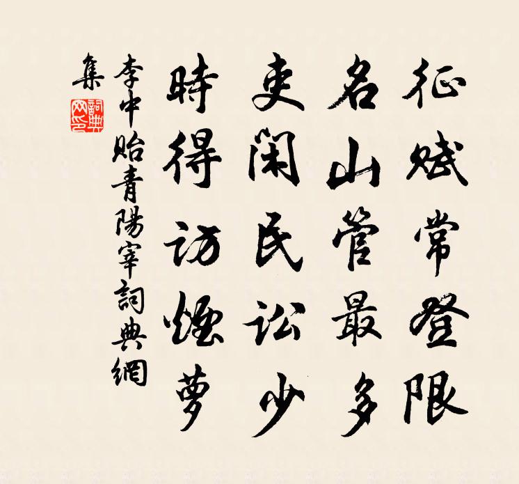 詩詞名句歷史字典書法欣賞書法字典國語詞典說文解字康熙字典古漢語字典標 題 作 者 詩 句 貽青陽宰作者:李中 朝代:唐代貽青陽宰原文征賦常登限,名山管最多。吏閒民訟少,時得訪煙蘿。詩詞問答問:貽青陽宰的作者是誰?答:李中問:貽青陽宰寫於哪個朝代?答:唐代問:貽青陽宰是什麼體裁?答:五絕李中貽青陽宰書法欣賞貽青陽宰書法作品注釋全唐詩:卷749-68詩詞推薦八月八日發潭州後得絕句四十首趙蕃〔宋代〕老去真成病不禁,炎蒸三日瘧如侵。江山舊識思新面,佳處真成略枕衾。徽宗皇帝秋賦御書贊岳珂〔宋代〕帝宣和之太平兮,忻朝野之多娛。偉楚臣之託辭兮,侈肆筆之特書。猗百工之精能兮,璨玳軸而金朱。宛百年其如對雪裴說〔唐代〕大片向空舞,出門肌骨寒。路岐平即易,溝壑滿應難。兔穴歸時失,禽枝宿處乾。豪家寧肯厭,五月畫圖看。游西岩蒲壽宬〔宋代〕誰扇洪爐欲煮鐵,一寸如冰不曾熱。歲寒心事梅花知,炭事如何與冰說。西岩結屋煙作罩,斑斑不露如隱豹。人生元夕再用韻韓元吉〔宋代〕瑤山直上玉梯橫,不用銀花散火城。著柳共看飛絮動,打窗渾作亂蚊聲。路尋鸞鶴天疑近,石壅鯨鯢觀易京。便擬偈頌二百零五首釋正覺〔宋代〕仲秋漸涼, * 放穩長連床。身心澄徹見淵底,河漢淡淡秋磨光。二祖不短,少林不長,相傳笑殺威音王。你無所歸朝歡王之道〔宋代〕透隙敲窗風摵摵。坐見廣庭飛縞白。長安道上正騎驢,蔡州城裡誰堅壁。表表風塵物。瑤林瓊宇三豪客。對分毫、代書寄廣信李遵度承制邵雍〔宋代〕薊北更千里,漢唐為極邊。奈何今境土,不復舊山川。虎帳兵家重,雕弓嗣子傳。佗年勒功處,無使後燕然。代白頭吟鮑照〔南北朝〕直如朱絲繩。清如玉壺冰。何慚宿昔意。猜恨坐相仍。人情賤恩舊。世議逐衰興。毫髮一為瑕。丘山不可勝。食苗玉樓春李朝卿〔宋代〕謫仙暫下金鑾殿。開宴瑤池春未晚。飛瓊獻舞錦靴寒,弄玉 * 銀字暖。奉觴阿母年年勸,猶道碧桃香尚淺。花開雲間懷古林景熙〔宋代〕薰風短棹水粼粼,老鶴疏林寂不聞。內史祠荒殘碣雨,黃門書冷半堆雲。獵腸斜日分桑塢,馳道秋深走鹿群。寥落王昭君其一李白〔唐代〕漢家秦地月,流影照明妃。一上玉關道,天涯去不歸。漢月還從東海出,明妃西嫁無來日。燕支長寒雪作花,蛾眉山行羅與之〔宋代〕烏藤落手野煙開,水秀山明入望來。舊日經行曾著語,試看石壁已莓苔。七夕對雨艾性夫〔宋代〕門無轍跡草偏青,屋帶秋山意轉清。打夢易驚棋雹響,載愁不去酒船輕。幸無簾幕妨雲影,尚欠芭蕉贈雨聲。欲送重過瑞金江吳浚〔宋代〕水瘦灘聲健,天寒霜意新。犬牙舟過石,魚貫路行人。到眼心應識,回頭跡易陳。時平刀劍息,失喜問遺民。風入松王吉昌〔元代〕乾坤鼎沸煉神丹。聚虎肺龍肝。合和蟾鳳凝嘉瑞,變盈空、甘露**。斂掠烹成金液,噴真味,靄椒蘭。崢嶸酌飲山居詩釋延壽〔宋代〕得喪從來事甚均,任緣徒用苦勞神。野蔬隨分堪充口,石室依稀中庇身。碧海幾時無去棹,舉世渾成無事人。若教雜詠陸游〔宋代〕得過一日且一日,安知今吾非故吾。袖手明窗讀周易,不辜香飯一齋盂。遊仙游山白居易〔唐代〕暗將心地出人間,五六年來人怪閒。自嫌戀著未全盡,猶愛雲泉多在山。阮郎歸王哲〔元代〕驀然撞著阮郎公。無何兩目紅。盈盈翳膜礙非通。如何見寶瞳。真妙藥,便修崇。良醫顯行功。金篦一刮真緣空。名句推薦安詳是處事第一法,謙退是保身第一法,涵容是處人第一法,灑脫是養心第一法。陳繼儒《小窗幽記·集醒篇》 富貴必從勤苦得,男兒須讀五車書。杜甫《柏學士茅屋》 水調數聲持酒聽。午醉醒來愁未醒。張先《天仙子·水調數聲持酒聽》 何計長來此,閒眠過一生。姚合《秋夜月中登天壇》 絲長魚誤恐,枝弱禽驚踐。崔護《五月水邊柳》 釣罷歸來不繫船,江村月落正堪眠。司空曙《江村即事》 天地無全功,聖人無全能,萬物無全用。列子及其弟子《列子·天瑞》 凌晨過驪山,御榻在嵽嵲杜甫《自京赴奉先縣詠懷五百字》 銀鞍照白馬,颯沓如流星。李白《俠客行》 愁絕行人天易暮,行向鷓鴣聲里住納蘭性德《菊花新·用韻送張見陽令江華》
