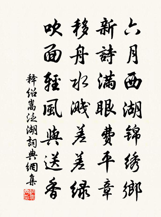 詩詞名句歷史字典書法欣賞書法字典國語詞典說文解字康熙字典古漢語字典標 題 作 者 詩 句 泛湖作者:釋紹嵩 朝代:宋代泛湖原文六月西湖錦繡鄉,新詩滿眼費平章。移舟水濺差差綠,吹面輕風與送香。詩詞問答問:泛湖的作者是誰?答:釋紹嵩問:泛湖寫於哪個朝代?答:宋代釋紹嵩泛湖書法欣賞泛湖書法作品詩詞推薦書嘆陸游〔宋代〕人生如春蠶,作繭自纏裹,一朝眉羽成,鑽破亦在我。少年不自珍,妄念然烈火,眼亂舞腰輕,心醉笑齒瑳。余齡秋晚即事高翥〔宋代〕江頭風葉舞低回,催得濃雲頃刻開。萬里碧天紅日晚,數聲新雁送寒來。林貴父投老謁銓有贈戴表元〔宋代〕天寒道路長,行子難為容。況復迫衰暮,視近步憧憧。乾世悔古學,費時慚惰農。誰知凍雪巷,忽視戟髯翁。袖有昭德堂晚步陸游〔宋代〕笑喚枯筇蹋夕陽,探春聊作靜中忙。高枝鵲語如相命,幽徑梅開秪自香。苔蝕斷碑驚世換,鍾來廢寺覺城荒。謫仙金明池游梅堯臣〔宋代〕三月花天池上,花都人袨服花多。水明花搖碧玉,岸響集靈鼉。畫舸龍延尾,長橋霓飲波。苑光花粲粲,女齒笑瑳玉簟涼史達祖〔宋代〕秋是愁鄉。自錦瑟斷弦,有淚如江。平生花里活,奈舊夢難忘。藍橋雲樹正綠,料抱月、幾夜眠香。河漢阻,但鳳三天竺還五首方回〔宋代〕澗晴石出水穿沙,萬樹松杉隱數家。一鳥不鳴風不動,忽聞林下響繅車。送趙燮晁補之〔宋代〕趙侯慷慨諸公客,少日論兵今發白。自言頗似鞴上鷹,老得一州聊鍛翮。送行誰復雙眼青,斷腸紅頰傾淥醽。停歌偶成三首鄧肅〔宋代〕萬里歸來臥白雲,蚍蜉撼樹政紛紛。大兒文舉知何在,巨擘於陵亦謾雲。空洞能容數百輩,朦朧如見二三分。小槽賀尤禮侍兼修史侍講直學士院四首張鎡〔宋代〕斯文未搖落,右序啟哲人。胸中悟復悟,筆底新又新。幻為九色絲,鑾坡演明綸。兵民總疲羸,夜直煩前陳。酬曾景建李壁〔宋代〕新有千絲明曉鏡,舊無一畫贊宵衣。閒吟此外惟須飲,老覺人間萬事非。病馬杜甫〔唐代〕乘爾亦已久,天寒關塞深。塵中老盡力,歲晚病傷心。毛骨豈殊眾,馴良猶至今。物微意不淺,感動一沉吟。楚宮行司馬光〔宋代〕楚王宮中夜未央,清歌秘舞會華堂。木蘭為柱桂為梁,隋珠和璧爛同光。橫吹乍鳴秋竹裂,繁弦初度春雨歇。九微念奴嬌(詠柳)秦觀〔宋代〕纖腰裊裊,東風裡、逞盡娉婷態度。應是青皇偏著意,盡把韶華付與。月榭花台,珠簾畫檻,幾處堆金縷。不勝風感事四首歐陽修〔宋代〕空山一道士,辛苦學延齡。一旦隨物化,反言仙已成。開墳見空棺,謂已超青冥。屍解如蛇蟬,換骨蛻其形。既雲題趙主簿省試議並以將行劉克莊〔宋代〕世儒通易少,公子信人豪。幾載韋編絕,三篇紙價高。素心鄙溫飽,餘事及風騷。台閫招徠廣,勾朱不足勞。相里使君宅聽澄上人吹小管嚴維〔唐代〕秦僧吹竹閉秋城,早在梨園稱主情。今夕襄陽山太守,座中流淚聽商聲。憶秦娥陸游〔宋代〕玉花驄。晚街金轡聲璁瓏。聲璁瓏。閒敧烏帽,又過城東。富春巷陌花重重。千金沽酒酬春風。酬春風。笙歌圍里句張順之〔宋代〕憑誰為寫無聲詩,清標不減淵明輩。奉和守歲應制許敬宗〔唐代〕玉琯移玄序,金奏賞彤闈。祥鸞歌里轉,春燕舞前歸。壽爵傳三禮,燈枝麗九微。運廣薰風積,恩深湛露晞。送寒名句推薦食之以時,用之以禮。孟子《孟子·盡心章句上·第二十三節》 安上在於悅下,為己存乎利人。房玄齡《晉書·列傳·第二十四章》 喪雖有禮,而哀為本焉。墨子《墨子·02章 修身》 砌下落花風起,羅衣特地春寒。馮延巳《清平樂·雨晴煙晚》 此時卻羨閒人醉,五馬無由入酒家。白居易《早冬》 遺廟丹青落,空山草木長。杜甫《武侯廟》 水是眼波橫,山是眉峰聚王觀《卜運算元·送鮑浩然之浙東》 少年心事當拿雲,誰念幽寒坐嗚呃。李賀《致酒行》 相思只在,丁香枝上,豆蔻梢頭。王雱《眼兒媚·楊柳絲絲弄輕柔》 曉月過殘壘,繁星宿故關。司空曙《賊平後送人北歸》