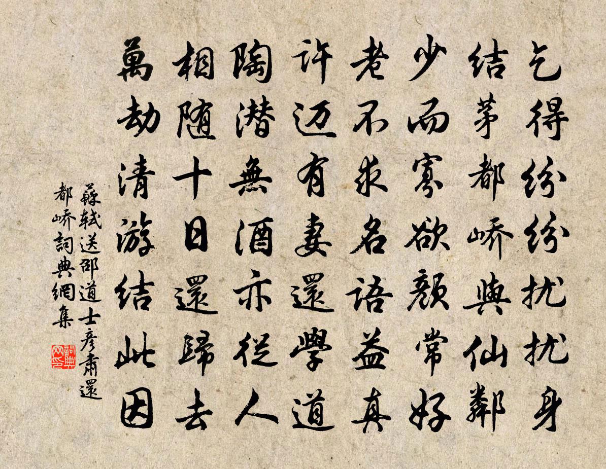 乞得紛紛擾擾身,結茅都嶠與仙鄰。少而寡慾顏常好,老不求名語益真。