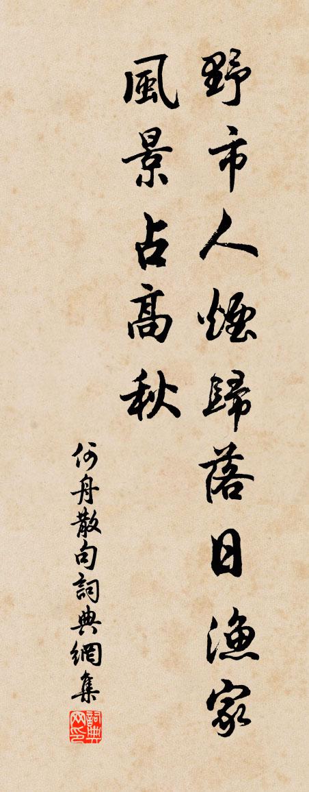 詩詞名句歷史字典書法欣賞書法字典國語詞典說文解字康熙字典古漢語字典標 題 作 者 詩 句 句作者:何舟 朝代:宋代句原文野市人煙歸落日,漁家風景占高秋。詩詞問答問:句的作者是誰?答:何舟問:句寫於哪個朝代?答:宋代何舟句書法欣賞句書法作品詩詞推薦仙翁詞施肩吾〔唐代〕世間無遠可為游,六合朝行夕已周。壇上夜深風雨靜,小仙乘月擊蒼虬。五月二十七日夜大雨前三日熱甚虞儔〔宋代〕雷車誰喚阿時推,釀雨雲頭簇不開。猛熱急欣江漢立,先聲偏上竹梧來。高唐賦就何曾夢,杜曲詩成不費催。頗欲和邵堯夫年老逢春司馬光〔宋代〕年老逢春春莫咍,朱顏不肯似春回。酒因多病無心醉,花不解愁隨意開。荒徑倦遊從碧草,空庭庸掃自蒼苔。相逢送喬執中秀才歸高郵王安石〔宋代〕薄飯午不羹,空爐夜無炭。寥寥日避席,烈烈風欺幔。謂予勿惡此,何為向子嘆。長年客塵沙,無婦助親爨。寒暄王漕小燕玻璃分韻得路字陳造〔宋代〕去年客京華,酷暑不可度。時為冷泉登,稅駕脫巾屨。風外雜佩鳴,松根一竇注。可聞不可挹,已足盪袢暑。朅來山居詩釋延壽〔宋代〕危嶺如登百尺樓,千般異景望中收。浮生但向忙時過,萬事須從靜處休。道直豈教容鬼怪,理平唯只使魔愁。空門江上戴復古〔宋代〕扁舟泊江渚,喜近酒家門。出網魚蝦活,投林鳥雀喧。無橋通竹處,有路到桃源。一見南塘字,悽然憶故園。次韻九日寄史推牟巘五〔宋代〕弁有山兮水有湄,登臨舍此復何之。發疏帽脫狂嘲後,雁過江涵感慨時。盛府主賓具好事,滿城風雨苦吟詩。人生北窗偶題陸游〔宋代〕曉晴林鵲喜,晝暖蜜蜂喧。我老詩情盡,逢春亦一言。送葛謙問蔡戡〔宋代〕有酒盈尊客滿門,陳卿百謫不須聞。痴我管事何時了,我本無心出岫雲。啁少年李賀〔唐代〕青驄馬肥金鞍光,龍腦入縷羅衫香。美人狹坐飛瓊觴,貧人喚雲天上郎。別起高樓臨碧筱,絲曳紅鱗出深沼。有時寄題新居羅長卿觀瀾閣蘭堂二首周必大〔宋代〕大江來章貢,小江出香城。快哉一閣上,揖此二水清。江落波瀾靜,江漲波瀾驚。四時五變化,兩目常兼併。登臨化城閣王安石〔宋代〕曾宮憑風回,兩岸聞鍾聲。百里見秋毫,構雲有高營。化城若化出,仰攀日月行。像視大江奔,眾山遙相迎。大江美人沈雲卿〔宋代〕十三學繡傍金窗,十六梳頭壓大拜。色比昭陽人第一,才同江夏士無雙。題意香壁董嗣杲〔宋代〕養生肯羨葛洪砂,醒困還評陸羽茶。溪上攬雲歸酒屋,雨中看瀑憶樵家。時時禽鳥鳴心曲,歲歲風霜趲鬢華。窗戶蘭亭高翥〔宋代〕老來渾不愛春遊,來對蘭亭爛熳秋。亭下水非當日曲,山前竹似舊時修。二三客子因懷古,八百餘年續勝流。試與齋宮偶題張蘊〔宋代〕眾綠扶疏雨氣清,柳花吹作小池萍。文窗晝寂齋房邃,三漱華池誦玉經。如夢令(春晚)劉南翁〔宋代〕沒計斷春歸路。借問春歸何處。鶯燕也含愁,總對落花無語。春去。春去。門掩一庭疏雨。舟中讀元九詩白居易〔唐代〕把君詩卷燈前讀,詩盡燈殘天未明。眼痛滅燈猶暗坐,逆風吹浪打船聲。酬在伯再用書事之韻趙蕃〔宋代〕西行險絕類中巴,東望悲涼底是家。渺渺春風限啼鴃,悠悠落日送歸鴉。室盈幼稚為腰折,腹有詩書宜氣華。兩日名句推薦鑒於水者見面之容,鑒於人者知吉與凶司馬遷《史記·七十列傳·范睢蔡澤列傳》 遨歡任落風前帽,促飲爭吹酒上花。宋祁《九日置酒》 採桑秦氏女,織錦竇家妻。薛道衡《昔昔鹽》 半夜銜枚,滿城深雪,忽已亡懸瓠。李綱《念奴嬌·憲宗平淮西》 隱約遙峰,和淚謝娘眉嫵。史達祖《綺羅香·詠春雨》 陶潛酷似臥龍豪,萬古潯陽松菊高龔自珍《己亥雜詩·其一百三十》 暗塵隨馬去,明月逐人來。蘇味道《正月十五夜》 他人有心,予忖度之。佚名《巧言》 榮所眾羨,亦引眾怨。來俊臣《羅織經·固榮卷第六》 艷妝臨水最相宜。風來吹繡漪。吳文英《醉桃源·芙蓉》