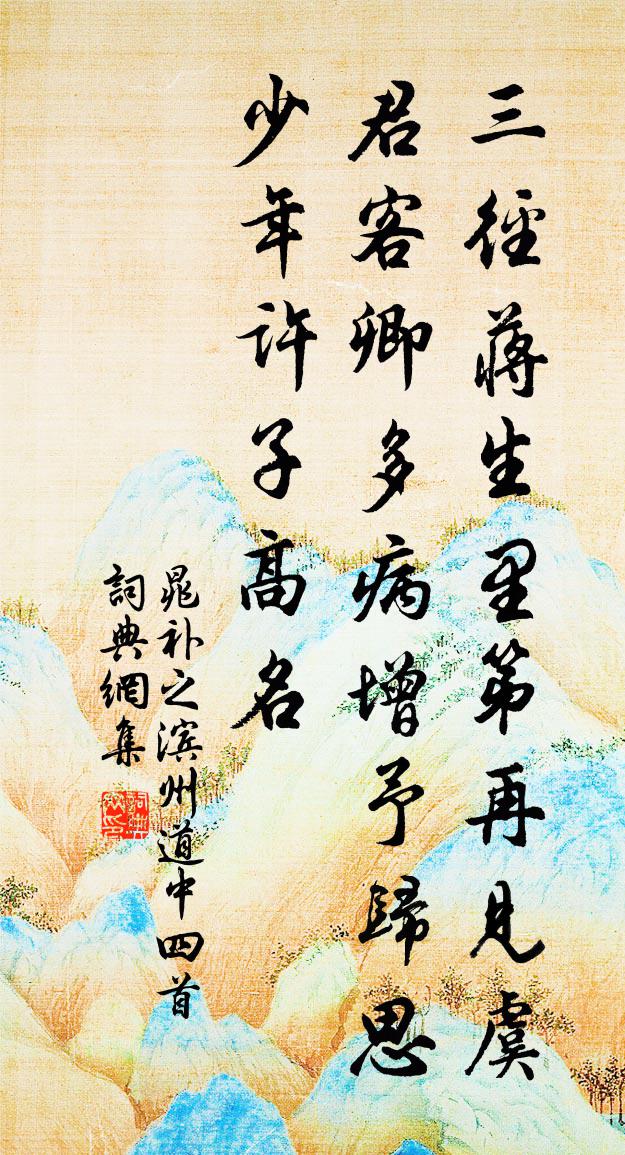 三徑蔣生里第,再見虞君客卿。多病增予歸思,少年許子高名。