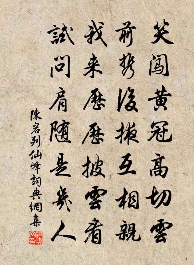 詩詞名句歷史字典書法欣賞書法字典國語詞典說文解字康熙字典古漢語字典標 題 作 者 詩 句 列仙峰作者:陳岩 朝代:宋代列仙峰原文笑闖黃冠高切雲,前攜後掖互相親。我來歷歷披雲看,試問肩隨是幾人。詩詞問答問:列仙峰的作者是誰?答:陳岩問:列仙峰寫於哪個朝代?答:宋代陳岩列仙峰書法欣賞列仙峰書法作品詩詞推薦祭酒芮公既歿四年門人呂某始以十詩哭之呂祖謙〔宋代〕胸懷北海與南溟,卻要涓涓一勺清。相對蹴然如重客,無人信道是門生。題周南甫草窗吟卷後徐瑞〔宋代〕山水監味誰能識,鐸裹宮聲未勿聽。正惜無人繼風雅,忽傅佳句到林擊。雲開江岳撐千仞,春入雷江漲四溟。遙相掃花游(李仁山別墅)趙文〔宋代〕結廬勝境,似舊日曾游,玉連佳處。萬花織組。愛迴廊宛轉,楚腰束素。度密穿青,上有燕支萬樹。探梅去。正竹鷓鴣天(賞芍藥)侯置〔宋代〕夢想當年姚魏家。尊前重見舊時花。雙檠分焰交紅影,四座春回粲晚霞。杯瀲灩,帽敧斜。夜深絕艷愈清佳。天明寄同年宗兄桐江府判去言五首方回〔宋代〕好山多處說嚴陵,官事閒時定一登。野寺豈無僧十百,愛僧須是愛詩僧。再次韻酬正仲舒岳祥〔宋代〕好翁須好客,相映柳和花。自是曹劉匹,非分唐宋家。書空因學草,品水為知茶。愛酒欣逢伴,臨風醉墨斜。卜運算元·我住長江頭李之儀〔宋代〕我住長江頭,君住長江尾。日日思君不見君,共飲長江水。此水幾時休,此恨何時已。只願君心似我心,定不負思秋夕書懷李中〔唐代〕功名未立誠非晚,骨肉分飛又入秋。枕上不堪殘夢斷,壁蛩窗月夜悠悠。祭酒芮公既歿四年門人呂某始以十詩哭之呂祖謙〔宋代〕小醉初醒日半昏,森森赤棒繞籬門。慨然投袂無難色,不識從來獄吏尊。晚步項安世〔宋代〕晚飯下前墀,徐行出短籬。輕風吹面處,斜日倚門時。靜見雲舒捲,閒知草盛衰。放懷無一事,隨意得新詩。九月一日有作張耒〔宋代〕怳怳日光薄,蕭蕭風葉吟。今辰九月朔,秋物半侵尋。賴有堂下菊,芬芳散浮金。感茲搖落際,採擷慰孤斟。木落好事近洪适〔宋代〕春意漸盈盈,窗外小桃堪折。若問得人憐處,是輕顰時節。主人特地出紅妝,不要雲心月。三徑雖然冷淡,有採蓮句潘慎修〔宋代〕如今縱得仙翁術,也怯君王四路饒。送璉兄之雲門釋慧空〔宋代〕人言學禪如學射,誤得同流走天下。夢中射落蟭螟窠,開眼看來無縫罅。無縫罅兮不為差,萬煅爐中尋尾靶。翻身送真舍人帥江西八首劉克莊〔宋代〕少小聞人說復讎,至今禾黍遍宗周。自憐謝病離軍去,始聽王師下海州。題劉翔卿蔚然樓二首楊萬里〔宋代〕誠叟顛狂與醉題,艮翁珍重灑環詞。山稜莫學詩肩瘦,月寫雲描總是詩。菩薩蠻·詠梅朱淑真〔宋代〕濕雲不渡溪橋冷。娥寒初破東風影。溪下水聲長。一枝和月香。人憐花似舊,花不知人瘦。獨自倚闌乾,夜深花正詠懷二首宋祁〔宋代〕盡信書奚信,難言命敢言。竟誰成簡冊,無客問乾坤。值狩麟猶泣,遭君鶴乃軒。滔滔千古事,惟有付芳樽。自勉劉克莊〔宋代〕海濱荒淺幼無師,前哲藩籬尚未窺。玄詠易流西晉學,苦吟不脫晚唐詩。遠僧庵就勤求記,亡友墳成累索碑。天若【雙調】壽陽曲 梅影徐再思〔元代〕枝橫水,花未雪,鏡中春玉痕明滅。梨雲夢殘人瘦也,弄黃昏半窗明月。 手帕 香多處,情萬縷,織春愁一方名句推薦畫圖恰似歸家夢,千里河山寸許長。辛棄疾《鷓鴣天·送元濟之歸豫章》 學者不患才之不贍,而患志之不立。徐幹《中論·上卷·治學》 恨鐵不成鋼曹雪芹《紅樓夢·第九十六回》 洞庭之東江水西,簾旌不動夕陽遲。陳與義《登岳陽樓》 西風來勸涼雲去,天東放開金鏡。史達祖《齊天樂·中秋宿真定驛》 一日不作,百日不食。司馬遷《史記·三十世家·趙世家》 我心匪石,不可轉也。佚名《柏舟》 臣敢竭股肱之力,效忠貞之節,繼之以死!陳壽《三國志·蜀書·諸葛亮傳》 黃師塔前江水東,春光懶困倚微風。杜甫《江畔獨步尋花·其五》 溪深難受雪,山凍不流雲。洪升《雪望》