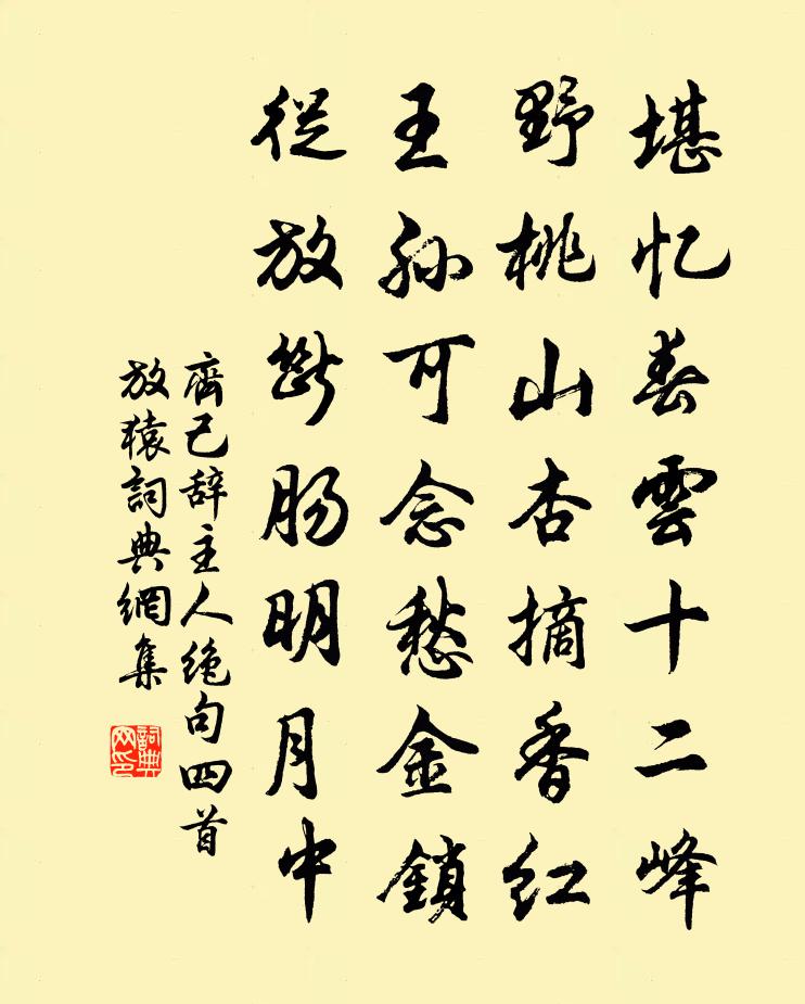 堪憶春雲十二峰,野桃山杏摘香紅。王孫可念愁金鎖,從放斷腸明月中。