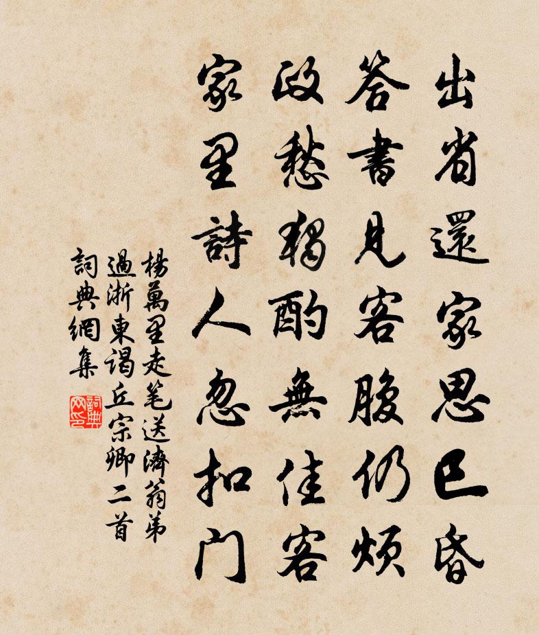 出省還家思巳昏,答書見客腹仍煩。政愁獨酌無佳客,家裡詩人忽扣門。