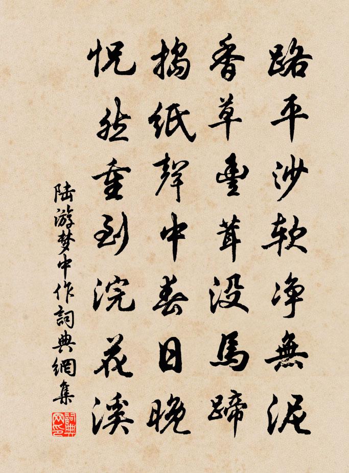 路平沙軟淨無泥,香草丰茸沒馬蹄。搗紙聲中春日晚,怳然重到浣花溪。