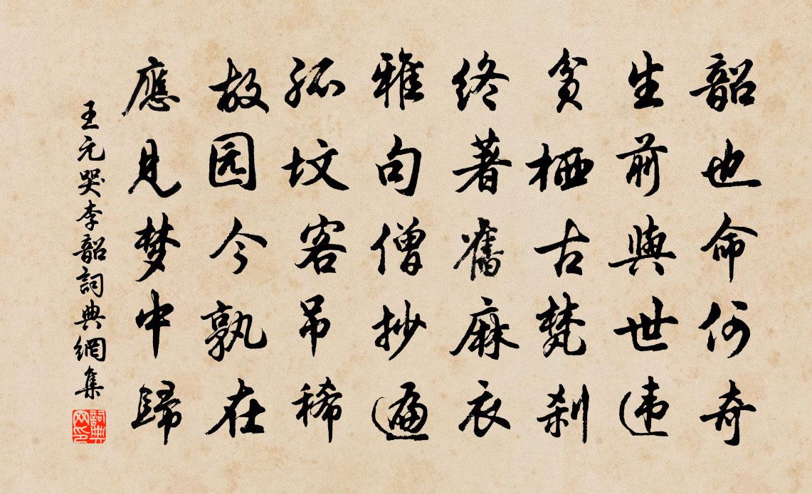 詩詞名句歷史字典書法欣賞書法字典國語詞典說文解字康熙字典古漢語字典標 題 作 者 詩 句 哭李韶作者:王元 朝代:唐代哭李韶原文韶也命何奇,生前與世違。貧棲古梵剎,終著舊麻1/1衣。雅句僧抄遍,孤墳客吊稀。故園今孰在,應見夢中歸。詩詞問答問:哭李韶的作者是誰?答:王元問:哭李韶寫於哪個朝代?答:唐代問:哭李韶是什麼體裁?答:五律王元哭李韶書法欣賞哭李韶書法作品注釋全唐詩:卷762-29詩詞推薦楊梅蘇泂〔宋代〕孫梅過盡官梅在,下番楊梅獨擅場。喚作荔枝元不是,是渠猶著小紅裳。山園戲書三物汪炎昶〔宋代〕雨餘露雙角,戴角緣欹危。吾疑甚為累,失此將何依。荒涼一畝宮,晨出暮來歸。雖不著我體,為累豈異茲。應有憶秦娥程垓〔宋代〕情脈脈。半黃橙子和香擘。和香擘。分明記得,袖香熏窄。別來人遠關山隔。見梅不忍和花摘。和花摘。有書無雁修覺寺晁公溯〔宋代〕山繞象耳北,堰橫龍爪西。遙瞻蜀玉壘,不減漢金堤。未合三江水,仍通百社溪。春流已可愛,散亂浴鳧鷖。溪居寓言齊己〔唐代〕秋蔬數壟傍潺湲,頗覺生涯異俗緣。詩興難窮花草外,野情何限水雲邊。蟲聲繞屋無人語,月影當松有鶴眠。寄向菩薩蠻韋莊〔唐代〕勸君今夜須沉醉,樽前莫話明朝事。珍重主人心,酒深情亦深。須愁春漏短,莫訴金杯滿。遇酒且呵呵,人生能幾病中作楊時〔宋代〕通衢隔轍斷經過,門巷空無雀可羅。驅去兒童臥虛室,蕭然惟一病維摩。上谹父郎中二首王洋〔宋代〕湘江又見承明客,青嶂誰刊嶽麓詩。雙旆到時鴻雁少,洞庭春水照旌旗。晚宿小羅田四首楊萬里〔宋代〕蕭灑低低屋,虛明小小窗。客間那得許,窗外更寒江。和高路分見贈二首曹勛〔宋代〕行年以禮古猶今,況已華顛雪滿簪。五子政須俱治產,兩疏寧復較揮金。稍攄雲水安閒計,得展江湖漫浪心。一笑風雨宿江上高士談〔元代〕風雨蕭蕭作暮寒,半晴煙靄有無間。殘紅一抹沉天日,濕翠千重隔岸山。短髮不羞黃葉亂,寸心長羨白鷗閒。濤聲過楊二渡三首楊萬里〔宋代〕兩日山尋盡野花,今晨水眺如桑麻。春風嬌得千垂柳,恰限身才個個斜。醉書永固方丈示東隱陳著〔宋代〕西麓與東峰,前緣得二翁。雅心千古上,慈汗一尊同。猛省塵埃夢,飽參松竹風。黃綺在何處,我欲問冥鴻。十二月二日臘祭前一日致齋惠照清叟察言觀色鄭剛中〔宋代〕峨冠執法公家整,端冕臨祠我亦嚴。深米爐香通問訊,小寒清坐隔疏簾。九月望徙坐冬窩錢時〔宋代〕黃花弄影日婆娑,一夜秋風百感多。門外紅塵深幾許,老夫今日坐冬窩。晚涼閒步邵雍〔宋代〕得處亦多矣,風前任鬢班。年過半百外,天與一生閒。瑩淨雲間月,分明雨後山。中心無所愧,對此敢開顏。送翁靈舒游邊徐照〔宋代〕孤劍色磨青,深謀秘鬼靈。離山春值雪,憂國夜觀星。奏凱邊人悅,翻營戰地腥。期君歸幕下,何石可書名。雞冠花張埴〔宋代〕眾卉在籬下,惆悵秋光同。老農面寸垢,滿口封培功。吾亦事吾事,買菊澆寒筒。舟中記夢陸游〔宋代〕石帆山下一漁翁,風雨蕭蕭臥短篷。幽夢覺時還自笑,閬州城北看蠶叢。閒居王禹偁〔宋代〕何必問生涯,幽閒度歲華。有琴方是樂,無竹不成家。吟里銷春色,眠中見曙霞。今年如未去,更擬種胡麻。名句推薦在上不驕,高而不危;制節謹度,滿而不溢。孔子及其弟子《孝經·諸侯》 翻被梨花冷看,人生苦戀天涯。張炎《朝中措·清明時節》 東武望餘杭,雲海天涯兩渺茫。蘇軾《南鄉子·和楊元素時移守密州》 舊時王謝堂前燕,飛入尋常百姓家。劉禹錫《烏衣巷》 含弘光大,品物鹹亨。佚名《易傳·彖傳上·坤》 數人世相逢,百年歡笑,能得幾回又。何夢桂《摸魚兒·記年時人人何處》 終日望君君不至,舉頭聞鵲喜。馮延巳《謁金門·風乍起》 知恩不報,非為人也。施耐庵《水滸傳·第二十回》 神龜雖壽,猶有竟時。曹操《龜雖壽》 一聲何滿子,雙淚落君前。張祜《宮詞·故國三千里》