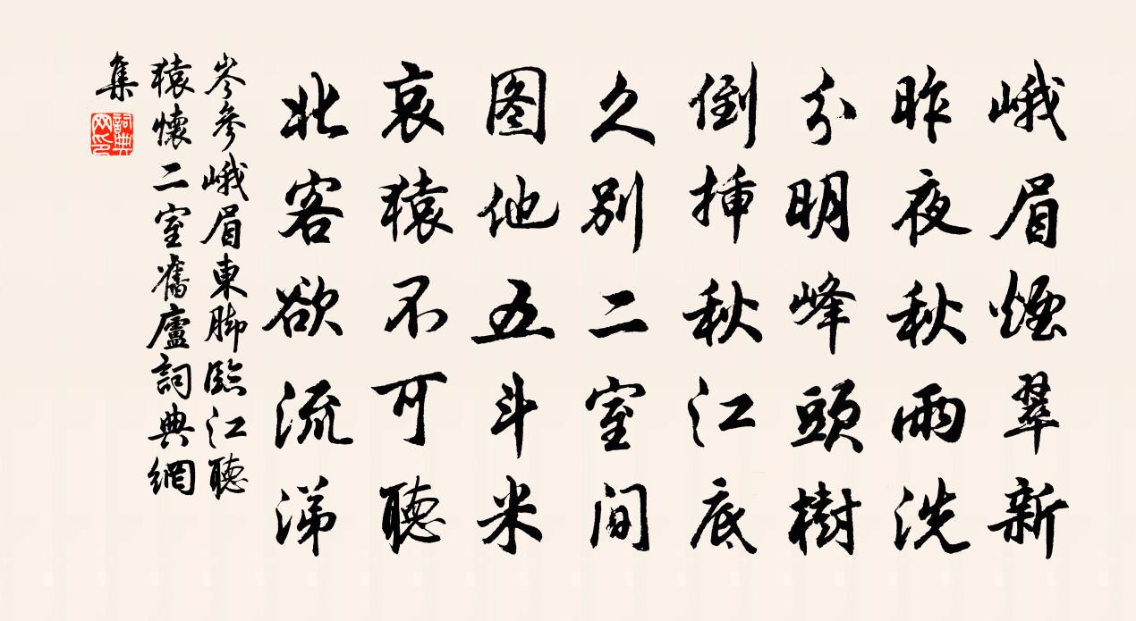 峨眉煙翠新,昨夜秋雨洗。分明峰頭樹,倒插秋江底。