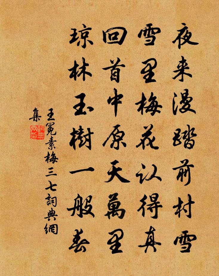 夜來漫踏前村雪,雪裡梅花認得真。回首中原天萬里,瓊林玉樹一般春。