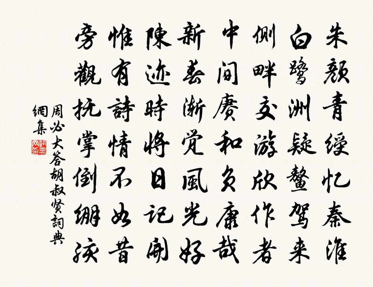 詩詞名句歷史字典書法欣賞書法字典國語詞典說文解字康熙字典古漢語字典標 題 作 者 詩 句 答胡叔賢作者:周必大 朝代:宋代答胡叔賢原文朱顏青綬憶秦淮,白鷺洲疑鰲駕來。側畔交遊欣作者,中間賡和負康哉。新春漸覺風光好,陳跡時將日記開。惟有詩情不如昔,旁觀撫掌倒繃孩。詩詞問答問:答胡叔賢的作者是誰?答:周必大問:答胡叔賢寫於哪個朝代?答:宋代周必大答胡叔賢書法欣賞答胡叔賢書法作品詩詞推薦閨怨胡仲弓〔宋代〕別後妝檯鏡懶開,倚門日日望書來。西風吹過衡陽雁,雁已歸回郎未回。陳士淳主簿舉似與嚴慶曾主簿鄧伯允仙尉同到李長庚〔宋代〕雲水光中語更清,從他山寺晚鐘鳴。滿船載月歸來好,一笛穿雲裂石聲。大熱五首 其一戴復古〔宋代〕天地一大窯,陽炭烹六月。萬物此陶鎔,人何怨炎熱。君看百穀秋,亦自暑中結。田水沸如湯,背葉濕如潑。農夫慶充自黃山歸,索其道中詩,書一絕問之范成大〔宋代〕鳴騶如電馬如雷,知是婆娑醉尉回。常日錦囊猶有句,況從三十六峰來。送本如上人歸四明釋尚能〔宋代〕隨緣離舊隱,秋後卻思歸。古寺山光滿,重城海氣圍。道孤愁作客,年長重忘機。此去何人見,雲根掩竹扉。黎明府見示令叔顯謨開國墓誌求詩為賦三首戴復古〔宋代〕巴蜀何多事,賢能見一時。才為花縣宰,早受菊坡知。關外科民急,興元易帥遲。預曾陳利病,人不信著龜。頌古四十五首釋如珙〔宋代〕千載靈龜庵下出,團團骨上卦重重。草鞋蓋卻無頭尾,且聽傍人定吉凶。洪扇贈別芮通父陳起〔宋代〕春冰幕千絲,我箑美無度。習習南浦秋,受藏憶襲護。之子思吳鱗,觸熱遙問津。舉箑寄薄劣,卻暑兼障塵。荊榛六代祖師贊釋文禮〔宋代〕黃梅再來,青松依舊。前身後身,一場逗漏。七百高僧總作家,唯有南能不唧{左口右留}。隆興天子七月十三日親享太廟先期風雨彌日及曹勛〔宋代〕雨腳如麻入夜深,飄風從雨拔山林。守燈危坐不敢息,惟有皇天知此心。赬桐花方岳〔宋代〕厥草惟夭簇絳繒,猩紅初滴尚火蒸。西風坐閱芙蓉老,合是藥中耐久朋。宮詞十首張樞〔宋代〕月籠梅影夜深時,白玉排簫索獨吹。傳得官家暗宣賜,黃金約臂翠花枝。答童晁說之〔宋代〕何敢愛筋力,無勞戒勵重。但當知諱字,聞說是邪中。王導宅馬之純〔宋代〕當時一馬渡江來,幕府山頭刈草萊。四海紛披都似此,一時締創亦艱哉。朝綱治具提還挈,國本人心壅更培。輔佐送水部張郎中彥回宰洛陽鄭谷〔唐代〕何遜蘭休握,陶潛柳正垂。官清真塞詔,事簡好吟詩。春漏懷丹闕,涼船泛碧伊。已虛西閣位,朝夕鳳書追。以雙井茶送孔常父黃庭堅〔宋代〕校經同省並門居,無日不聞公讀書。故持茗椀澆舌本,要聽六經如貫珠。心知韻勝舌知腴,何似寶雲與真如。湯餅行役有嘆二首楊萬里〔宋代〕去年丐西歸,謂可休餘生。今年復東下,駕言入神京。臥治方小安,趨召豈不榮。何如還家樂,醉吟聽溪聲。擬古張九成〔宋代〕夜月冷如冰,朝霞燦成綺。借問孰為之,大化自然爾。斲月為酒壺,裁霞為寐被。酣眠九天上,此意誰能解。要與大衍易吟四十首方回〔宋代〕德盛時逢險,乾剛坎在前。諺雲姑少待,樂飲豈徒然。春詞毛滂〔宋代〕玉甃蘭封麝,瑤池柳養金。宸章先造化,摛藻自春林。名句推薦獨王之國,勞而多禍管仲《管子·形勢》 是以聖人不期修古,不法常可,論世之事,因為之備。韓非及後人《韓非子·五蠹》 一曲高歌一樽酒,一人獨釣一江秋。王士禎《題秋江獨釣圖》 過雨西風,數葉井梧愁舞。吳文英《荔枝香近·七夕》 誰教歲歲紅蓮夜,兩處沉吟各自知。姜夔《鷓鴣天·元夕有所夢》 最愛湖東行不足,綠楊陰裏白沙堤。白居易《錢塘湖春行》 欲尋芳草去,惜與故人違。孟浩然《留別王侍御維 / 留別王維》 望千門如晝,嬉笑遊冶。周邦彥《解語花·上元》 如來說世界非世界。是名世界。鳩摩羅什譯《金剛經·如法受持》 心既托聲於言,言亦寄形於字劉勰《文心雕龍·練字》