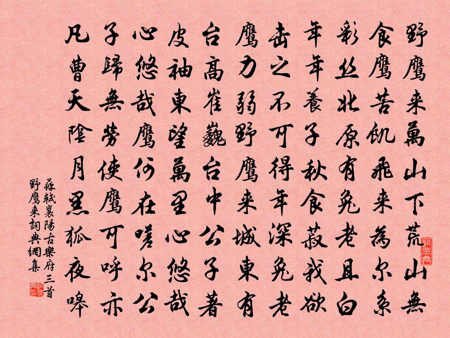 蘇軾襄陽古樂府三首野鷹來書法欣賞