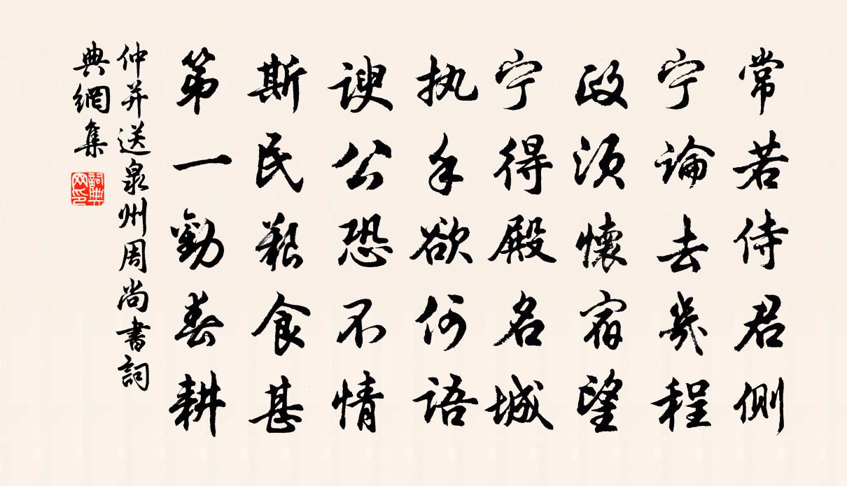 詩詞名句歷史字典書法欣賞書法字典國語詞典說文解字康熙字典古漢語字典標 題 作 者 詩 句 送泉州周尚書作者:仲並 朝代:宋代送泉州周尚書原文常若侍君側,寧論去幾程。政須懷宿望,寧得殿名城。執手欲何語,諛公恐不情。斯民艱食甚,第一勸春耕。詩詞問答問:送泉州周尚書的作者是誰?答:仲並問:送泉州周尚書寫於哪個朝代?答:宋代仲並送泉州周尚書書法欣賞送泉州周尚書書法作品詩詞推薦題趙松雲迷禽竹石圖仇遠〔宋代〕錦石傾欹玉樹荒,雪兒無語戀斜陽。百年花鳥春風夢,不是錢塘是汴梁。李侍御歸炭谷山居同宿華嚴寺趙嘏〔唐代〕家在青山近玉京,白雲紅樹滿歸程。相逢一宿最高寺,半夜翠微泉落聲。秋旱繼以大風即事十首劉克莊〔宋代〕曾立龍墀忝近臣,深知玉座最憂民。近傳奎畫蠲租賦,稽首觚稜祝聖人。對鱠項斯〔唐代〕行到鱸魚鄉里時,鱠盤如雪怕風吹。猶憐醉里江南路,馬上垂鞭學釣時。頌釋清〔宋代〕諸佛出身處,東山水上行。石壓筍斜出,岸懸花倒生。詠懷寄秘閣舊僚二十六韻李商隱〔唐代〕年鬢日堪悲,衡茅益自嗤。攻文枯若木,處世鈍如錘。敢忘垂堂戒,寧將暗室欺。懸頭曾苦學,折臂反成醫。仆御宿曾江口示侄孫湘二首(湘,字北渚,老成之子)韓愈〔唐代〕雲昏水奔流,天水漭相圍。三江滅無口,其誰識涯圻。暮宿投民村,高處水半扉。犬雞俱上屋,不復走與飛。篙舟偈頌一百一十七首釋紹曇〔宋代〕你面黃,我面黑。是馬是驢,各隨業力。驀劄相牽入草窠,鼻頭香臭不爭多。頌一百則釋重顯〔宋代〕眼裡塵沙耳里土,千峰萬峰不肯住。落花流水太茫茫,剔起眉毛何處去。第一百七十九文天祥〔宋代〕威鳳高其翔,老鶴萬里心。脫略誰能馴,兀兀遂至今。睦州呂郎中郡中環溪亭方乾〔唐代〕為是仙才登望處,風光便似武陵春。閒花半落猶迷蝶,白鳥雙飛不避人。樹影興余侵枕簟,荷香坐久著衣巾。暫來西征賦潘安〔魏晉〕歲次玄枵,月旅蕤賓,丙丁統日,乙未御辰。潘子憑軾西征,自京徂秦。乃喟然嘆曰:古往今來,邈矣悠哉!寥廓紹興以後祀五方帝六十首佚名〔宋代〕靈不肯留,沛兮將歸。王節猋逝,翠旗羔馳。顧瞻儜立,悵然佳期。蹇千萬年,無故人斯。送王元均貶衡州兼寄元龍二首陳師道〔宋代〕先生英氣蓋區中,命與仇謀得老窮。又見長身有家法,可辭短簿怒吾公。石頭路滑行能速,宣室歸來語未終。宛洛湖上秋夜陸游〔宋代〕湖上山銜落月明,釣筒收罷葉舟橫。不知身世在何許,一夜蕭蕭蘆荻聲。木蘭花(四之一·林鐘商)柳永〔宋代〕心娘自小能歌舞。舉意動容皆濟楚。解教天上念奴羞,不怕掌中飛燕妒。玲瓏繡扇花藏語。宛轉香茵雲衫步。王孫讀東坡玉糝詩因成一絕續去年芋莖羹後寄丘林陳藻〔宋代〕味有酥陀出自天,芋成玉糝卻同然。此羹若使東坡見,尤怪枯莖化得偏。天聖間入參大政復寄題二章陳堯佐〔宋代〕山好曾留句,城高復創亭。登臨千萬境,誰與畫為屏。三字詩六首寒山〔唐代〕寒山道,無人到。若能行,稱十號。有蟬鳴,無鴉噪。黃葉落,白雲掃。石磊磊,山隩隩。我獨居,名善導。子細和閩漕傅安道郎中送毛平仲詩韻,寄謝惠書及楊萬里〔宋代〕宣城訊後忽年余,閩水風來又歲除。人品只今推正始,詩聲何止過黃初。豈無天上同朝友,不寄山中半紙書。珍重名句推薦繁華事散逐香塵,流水無情草自春。杜牧《金谷園》 治亂之藥石,刑罰為重;興平之梁肉,德教為先。程登吉《幼學瓊林·卷四·訟獄》 芳草已雲暮,故人殊未來。韋莊《章台夜思》 忙日苦多閒日少,新愁常續舊愁生。陸游《浣溪沙·和無咎韻》 若是前生未有緣,待重結、來生願。樂婉《卜運算元·答施》 國君好仁,天下無敵焉。孟子《孟子·盡心章句下·第四節》 臨水一長嘯,忽思十年初。白居易《垂釣》 詩言志,歌永言佚名《尚書·虞書·舜典》 眾人皆有以,而我獨頑似鄙。老子《老子·道經·第二十章》 夫尚賢者,政之本也。墨子《墨子·08章 尚賢(上)》