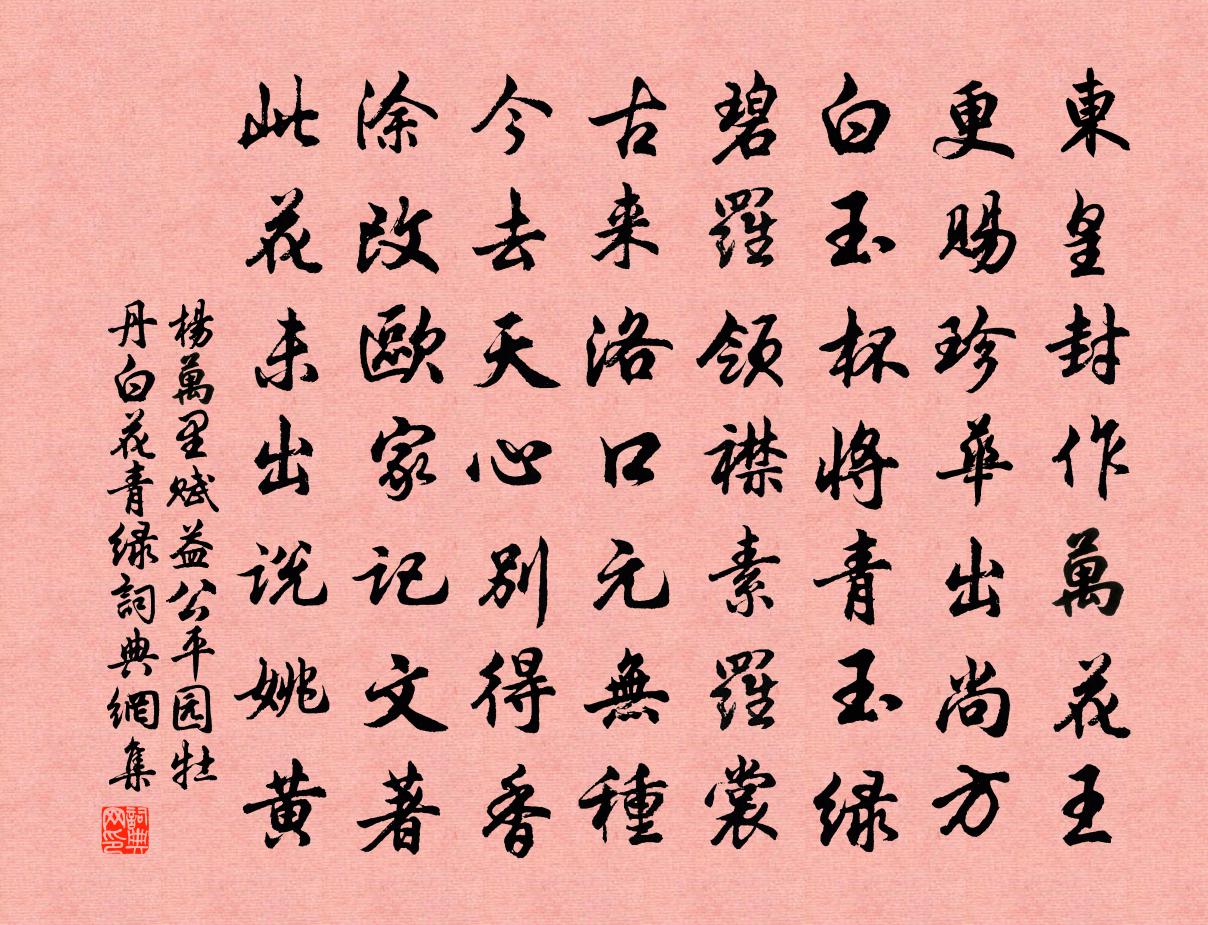 楊萬里賦益公平園牡丹白花青綠書法欣賞